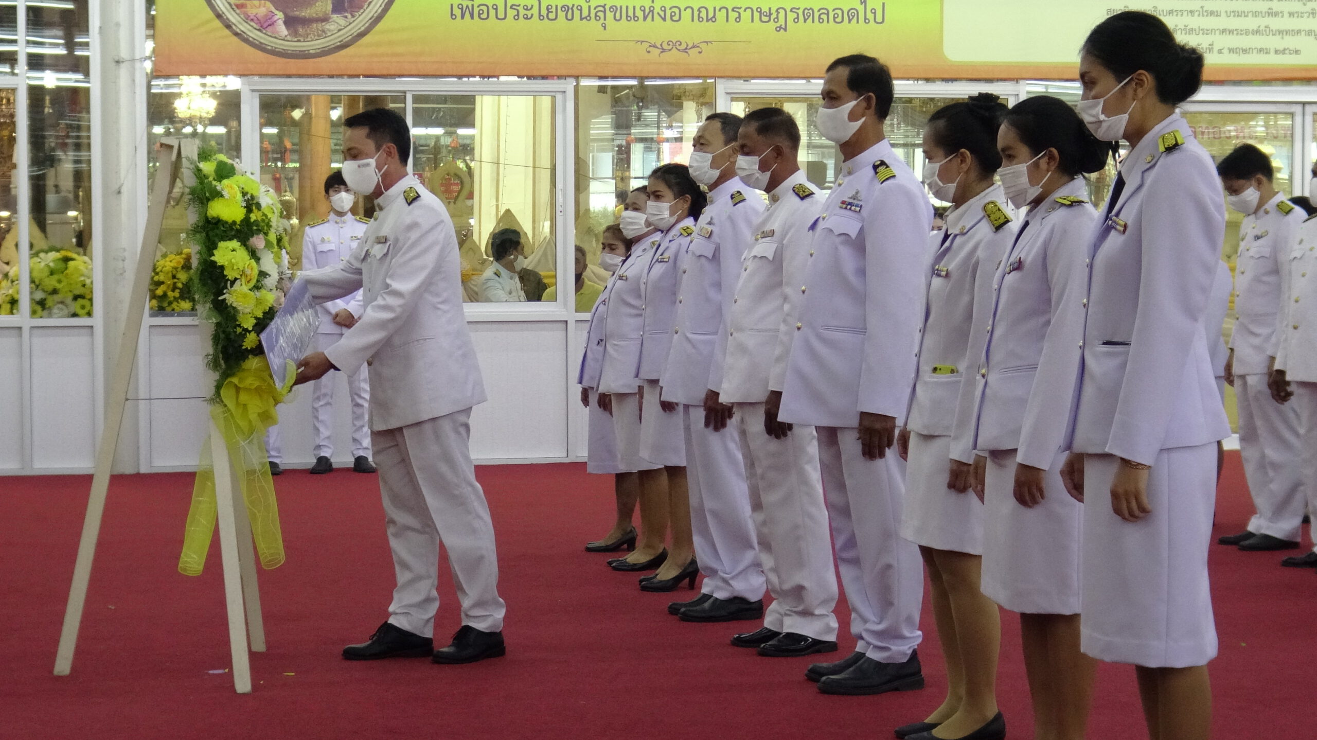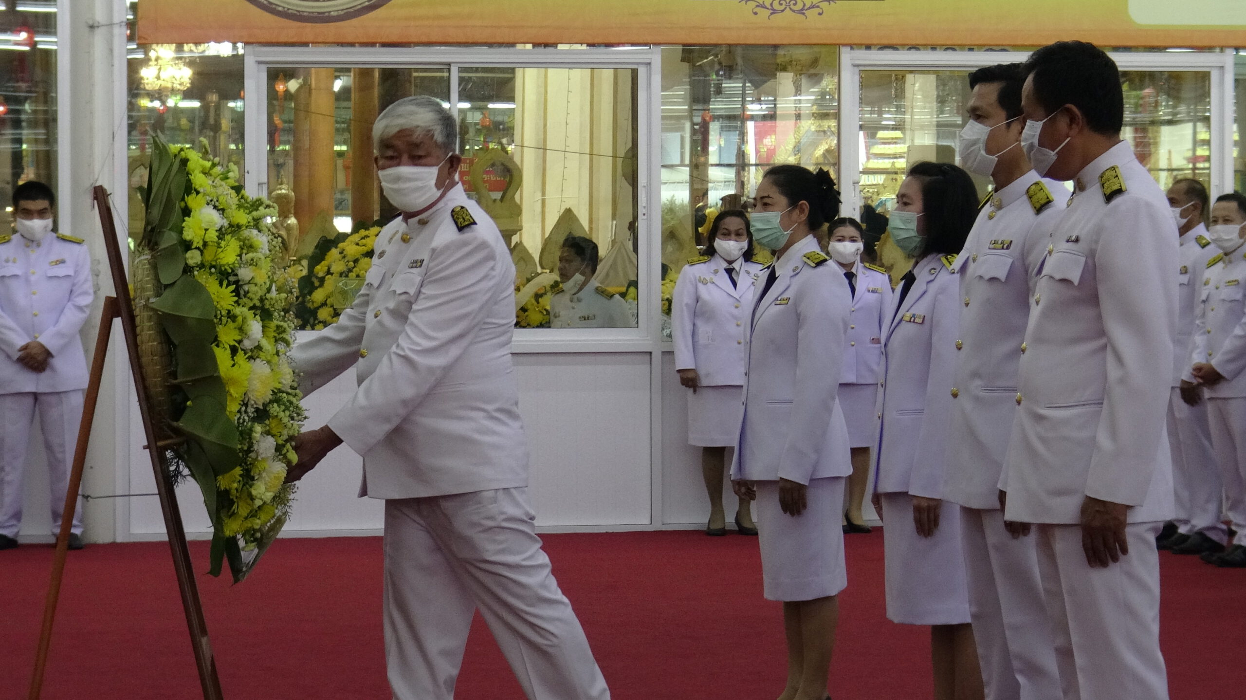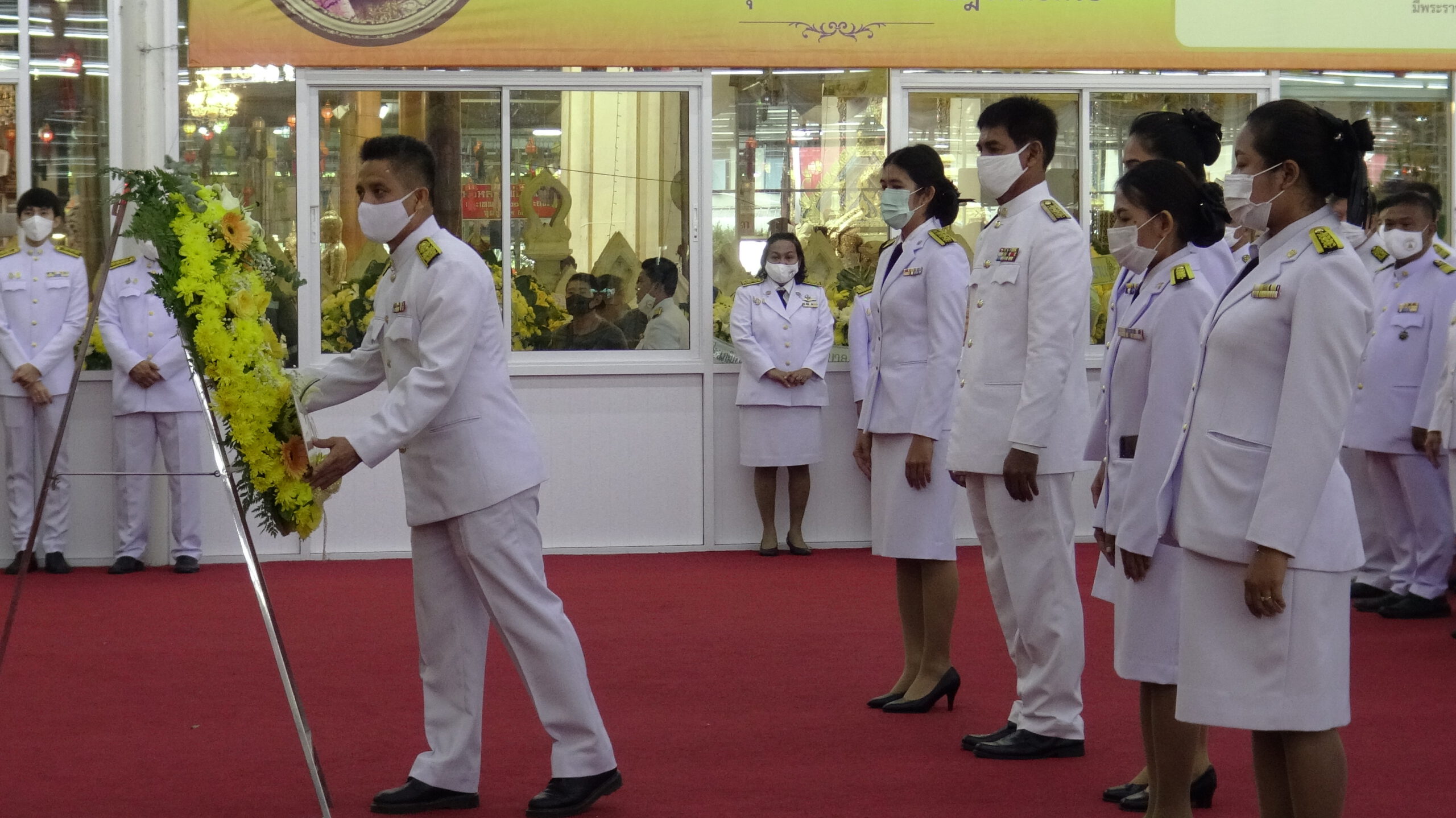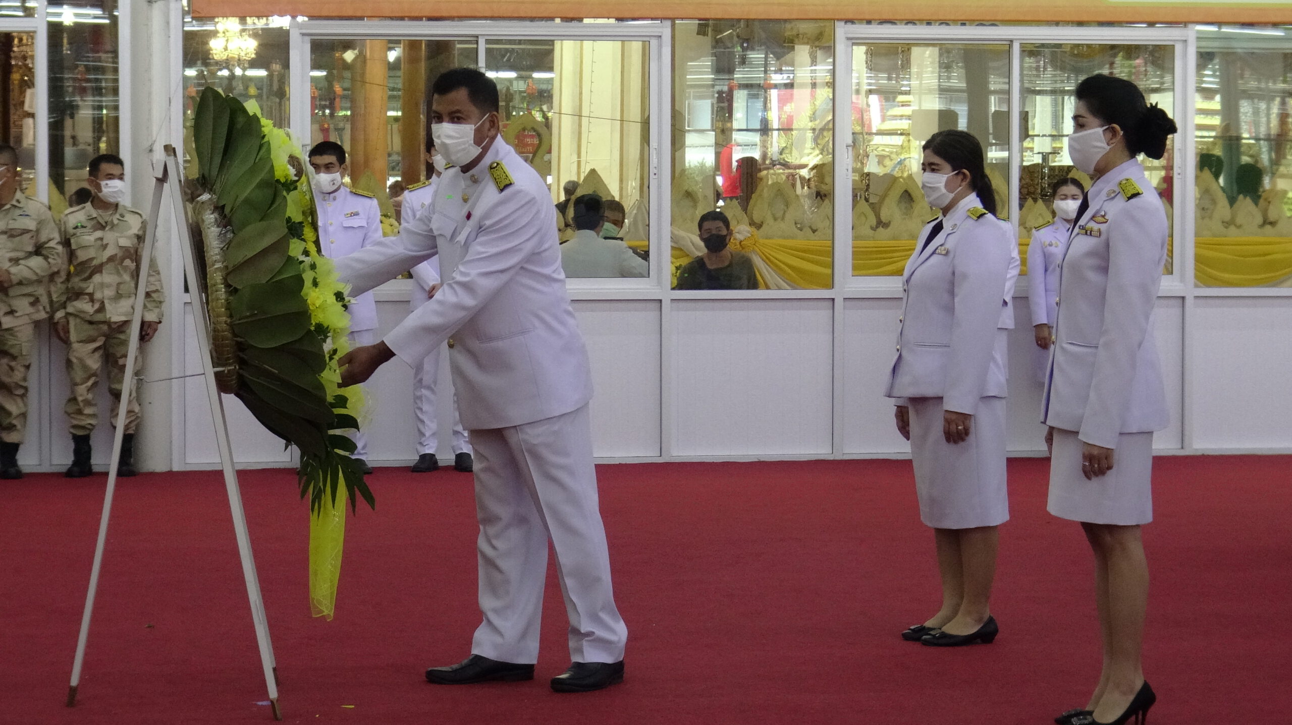 พสกนิกรชาวอำเภอสามพรานร่วมพิธีวางพวงมาลาและถวายบังคมน้อมรำลึกเนื่องในวันคล้ายวันสวรรคตรัชกาลที่9