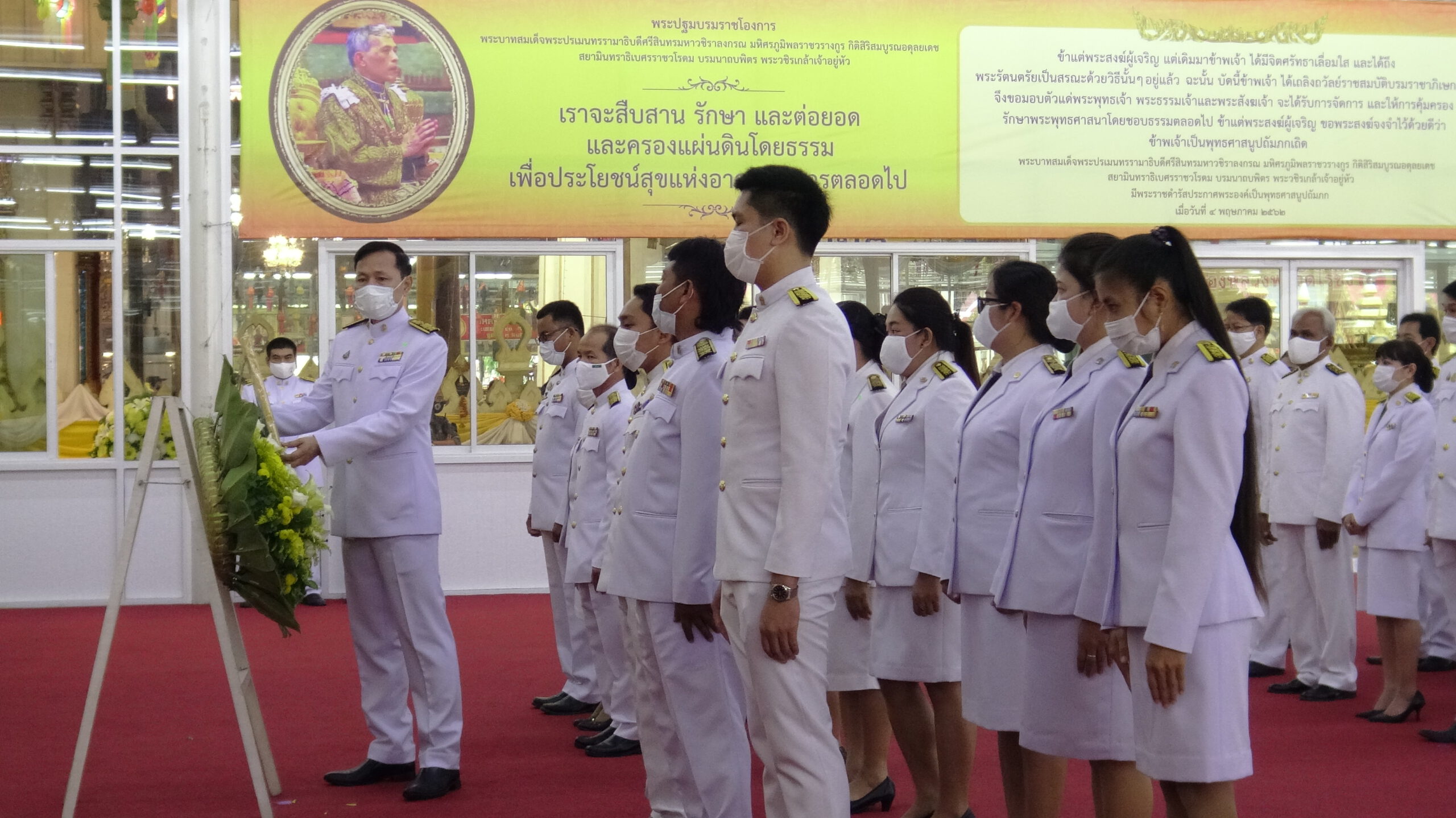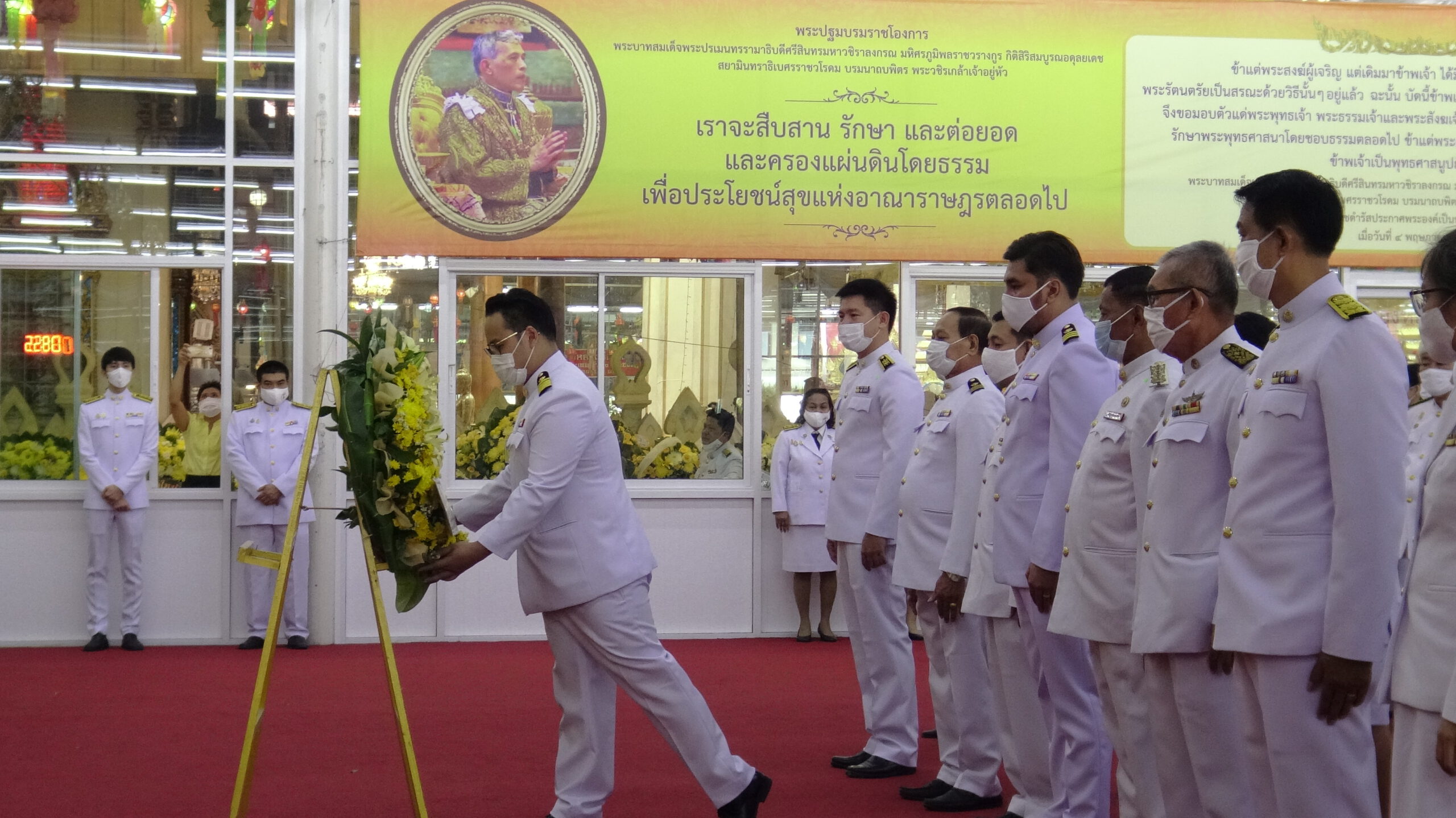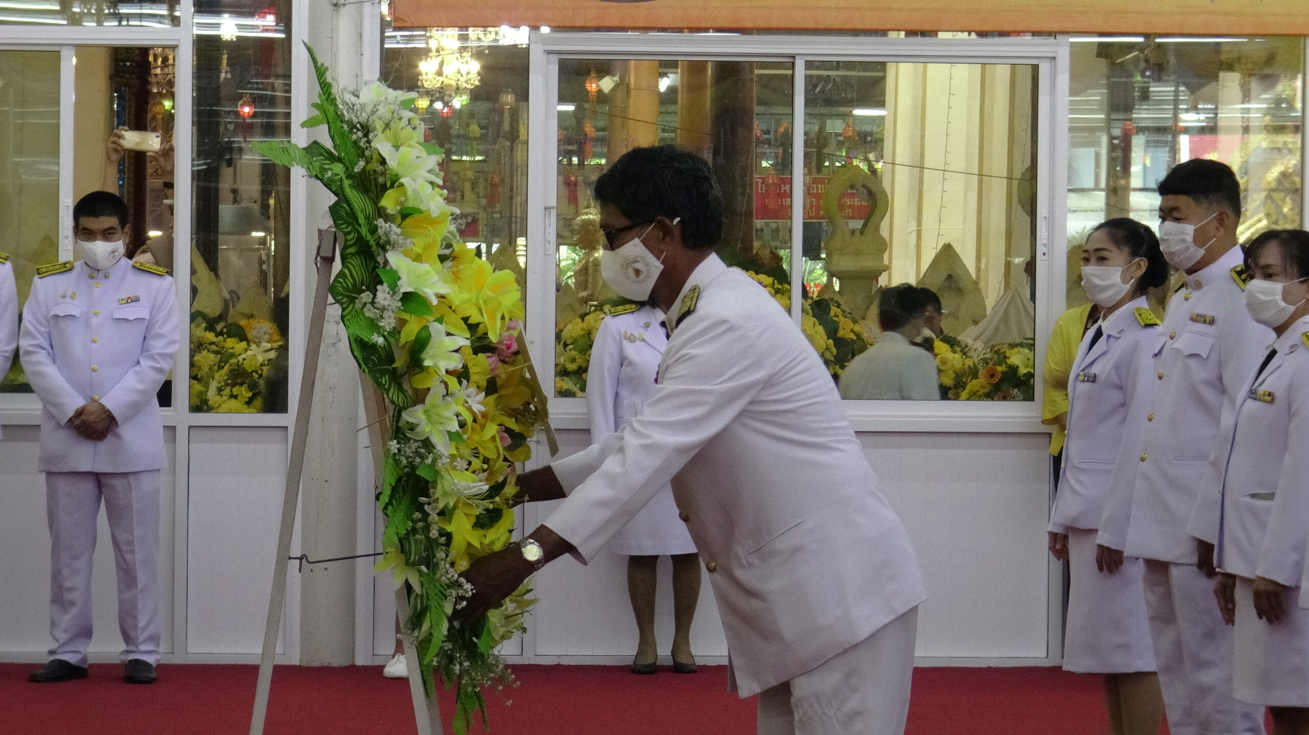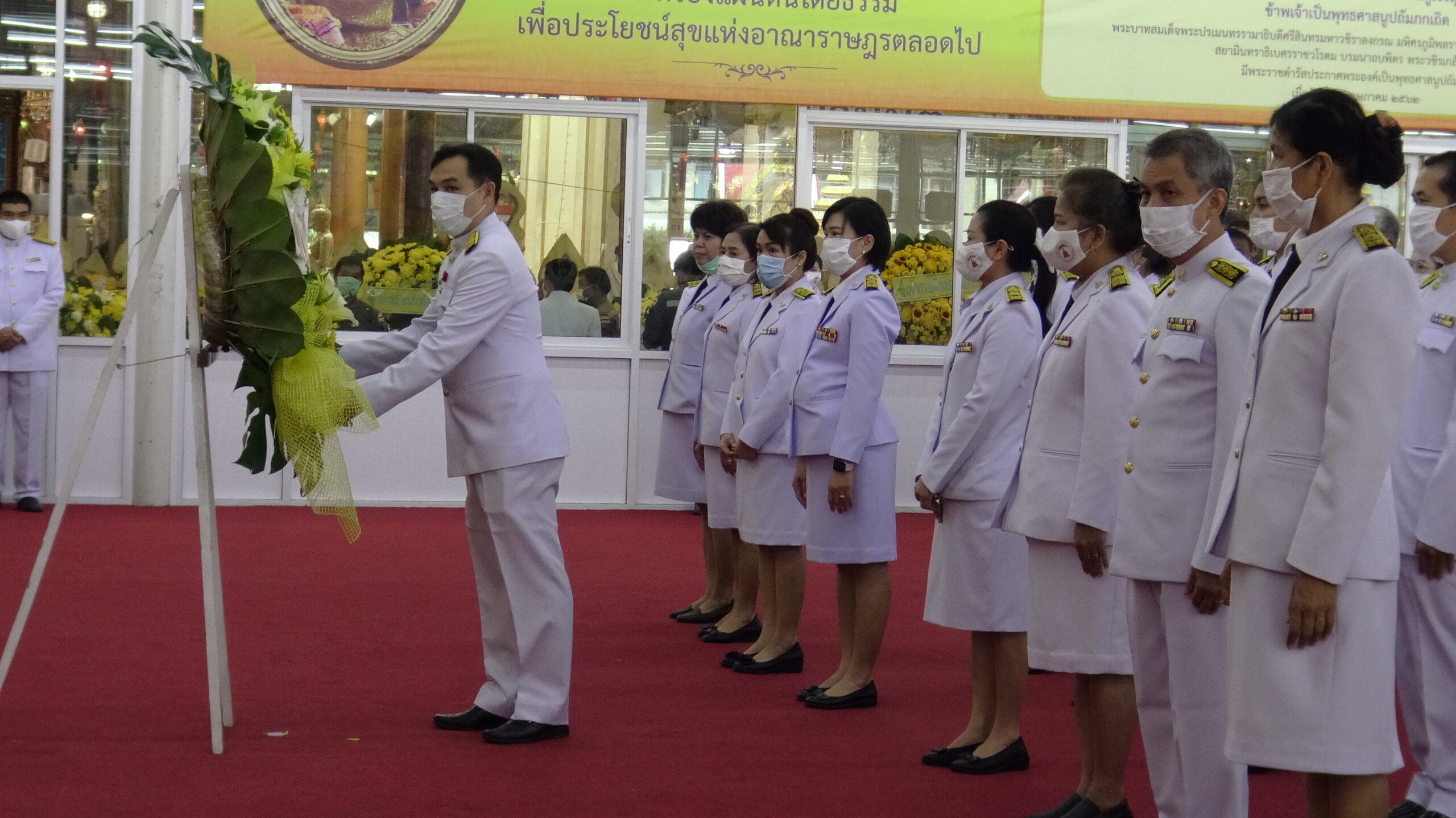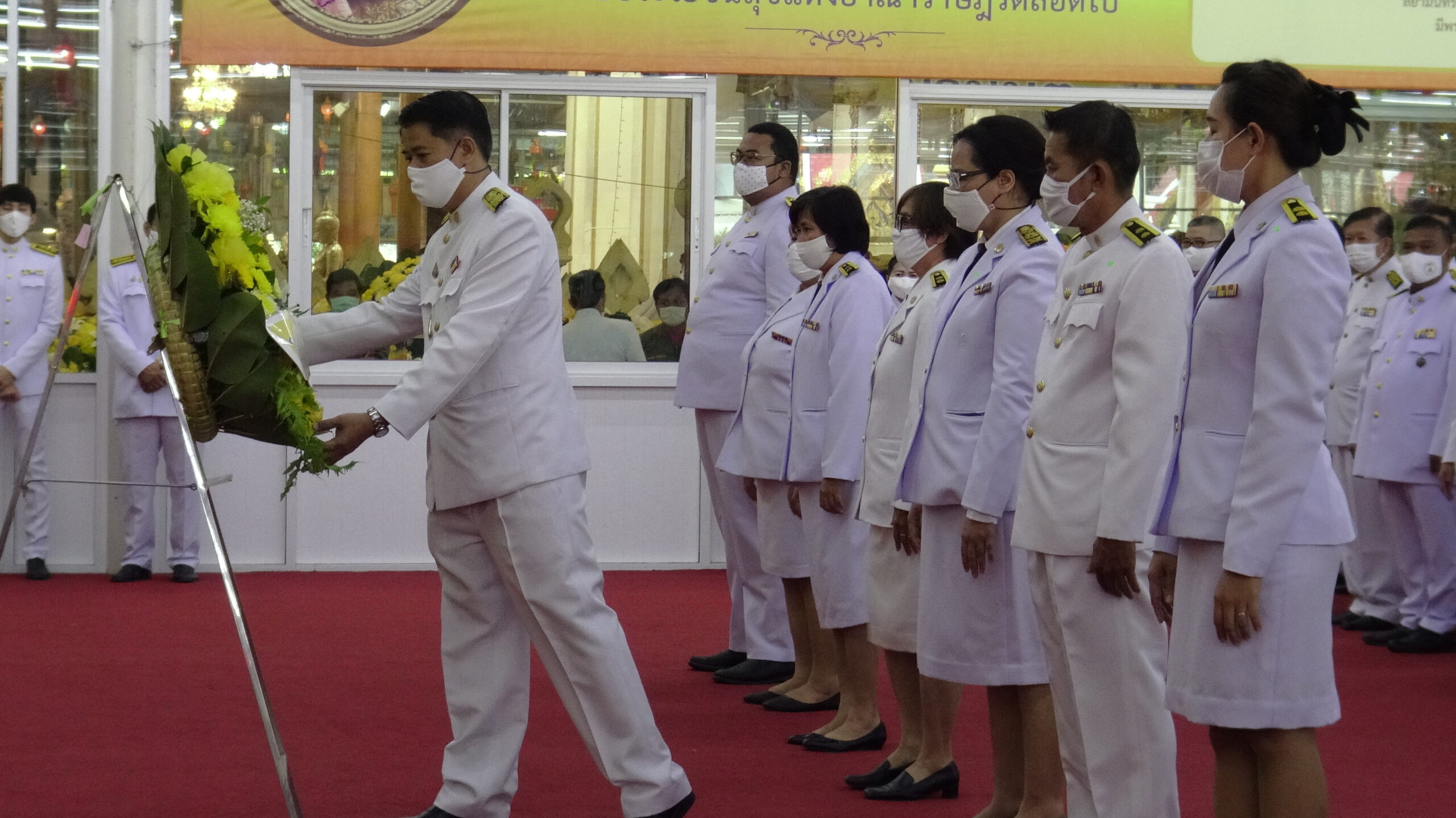 พสกนิกรชาวอำเภอสามพรานร่วมพิธีวางพวงมาลาและถวายบังคมน้อมรำลึกเนื่องในวันคล้ายวันสวรรคตรัชกาลที่9