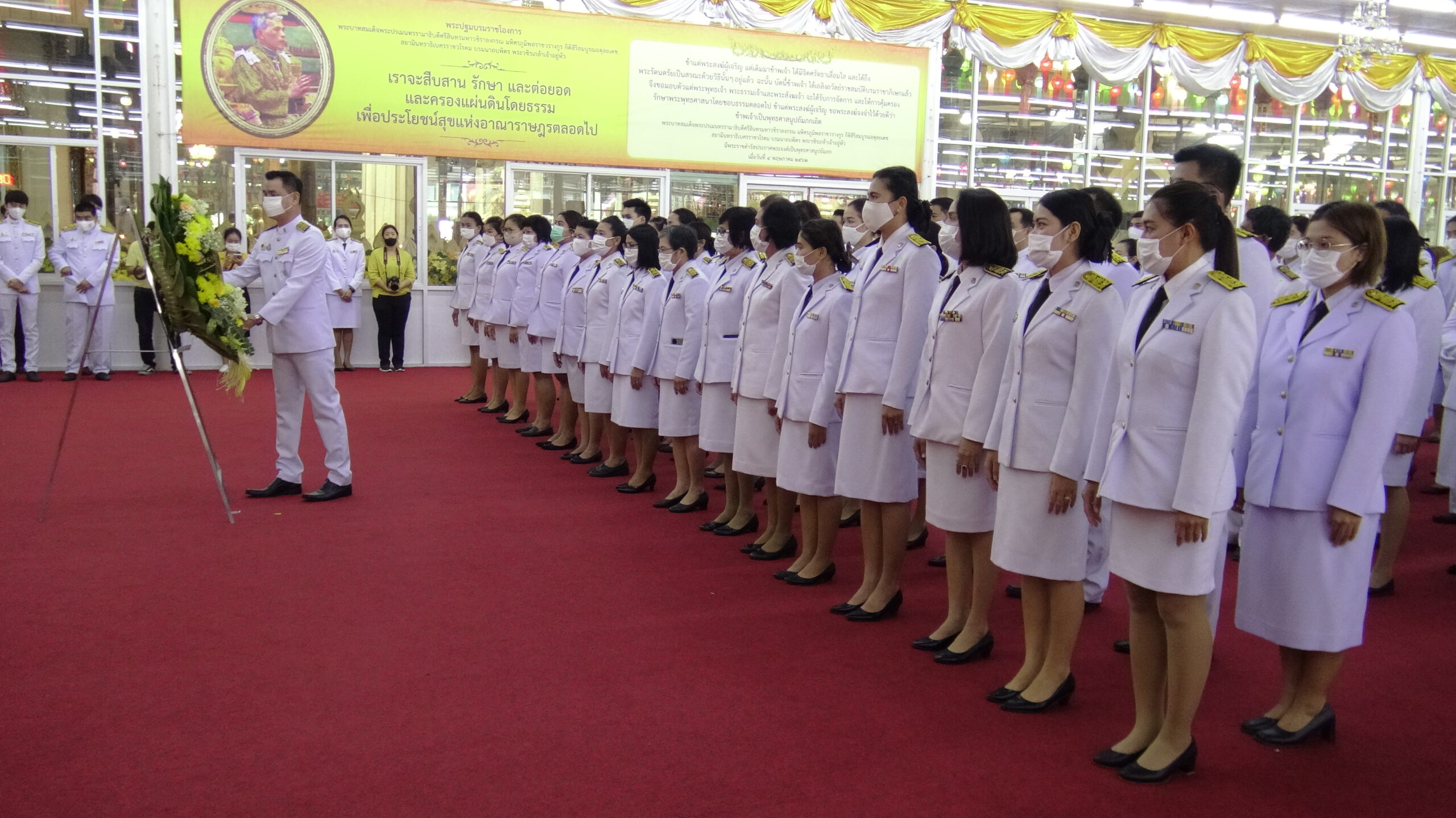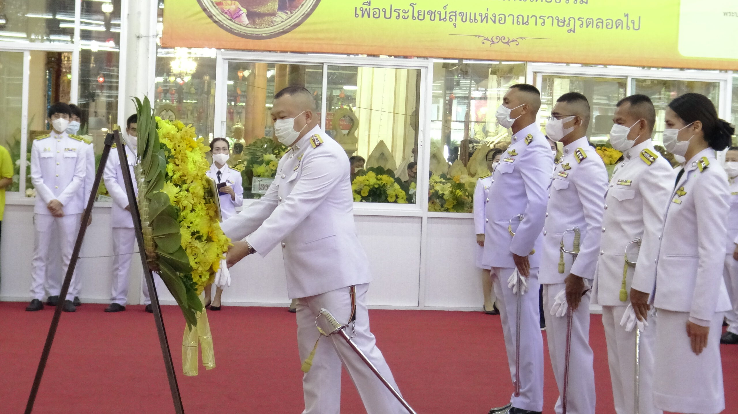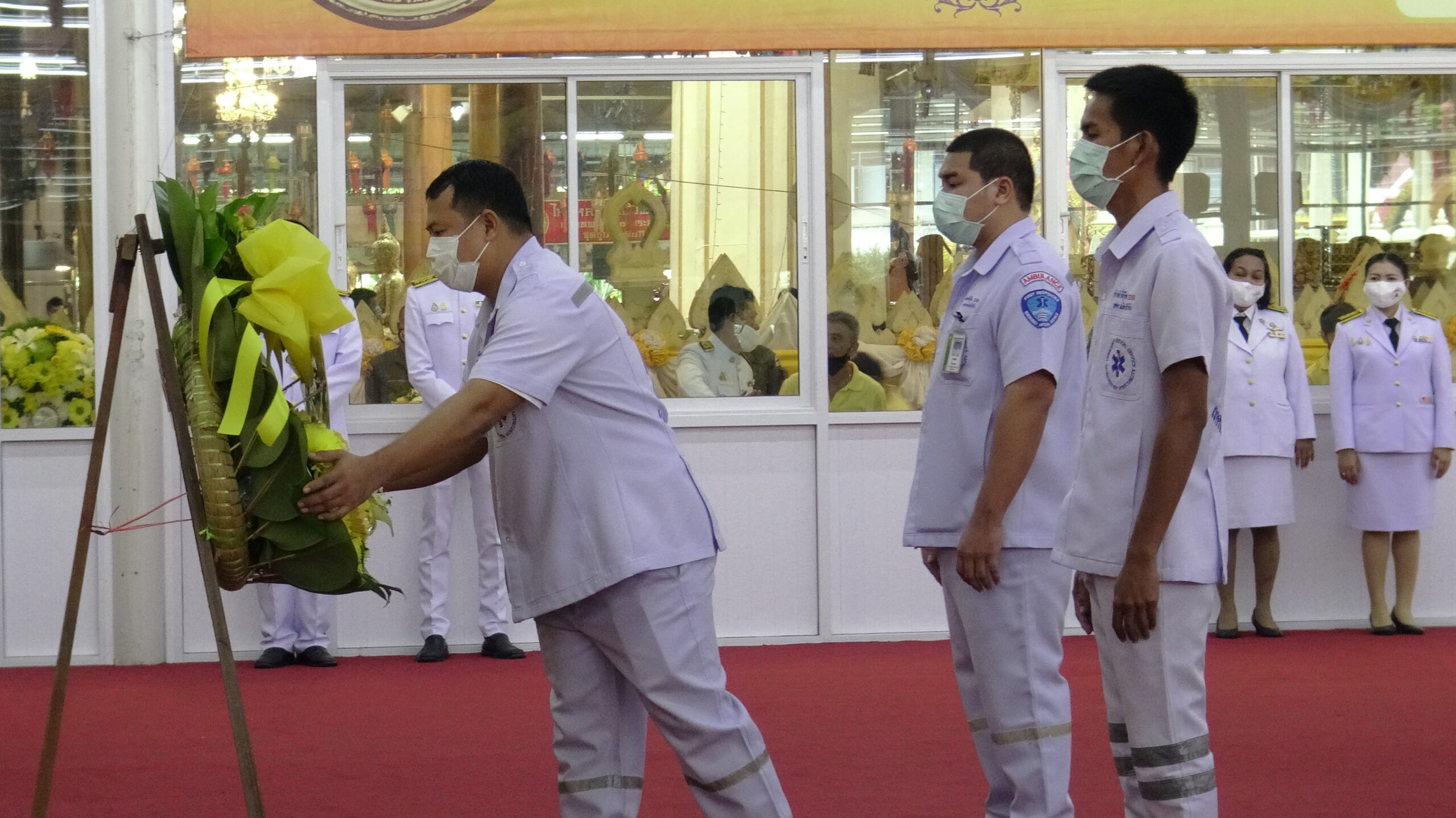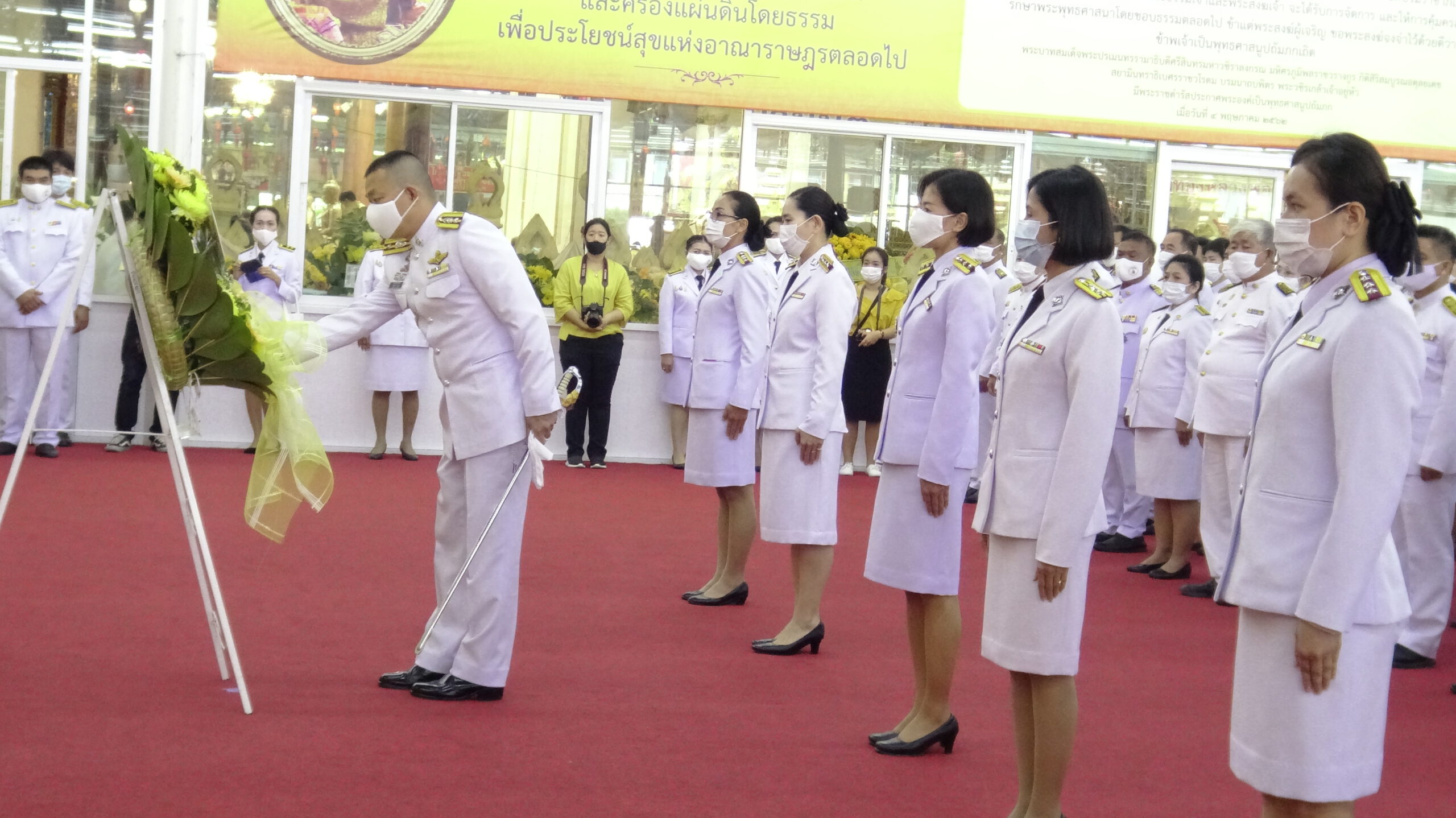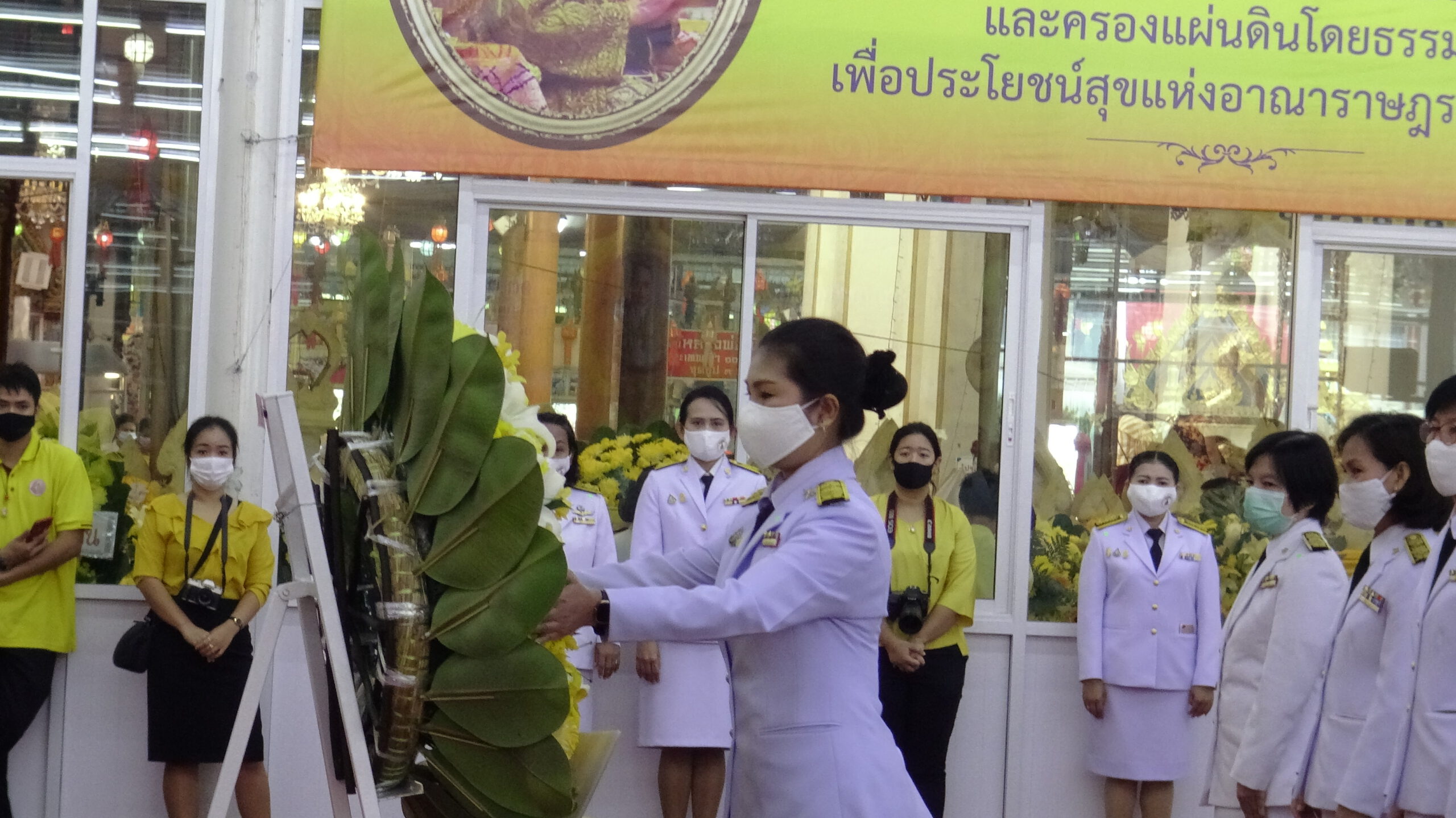 พสกนิกรชาวอำเภอสามพรานร่วมพิธีวางพวงมาลาและถวายบังคมน้อมรำลึกเนื่องในวันคล้ายวันสวรรคตรัชกาลที่9