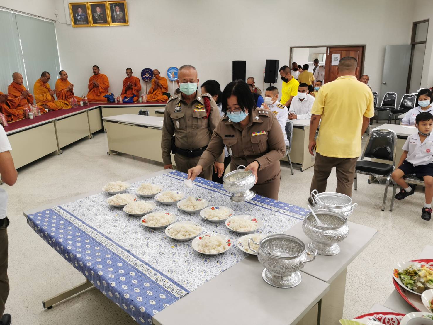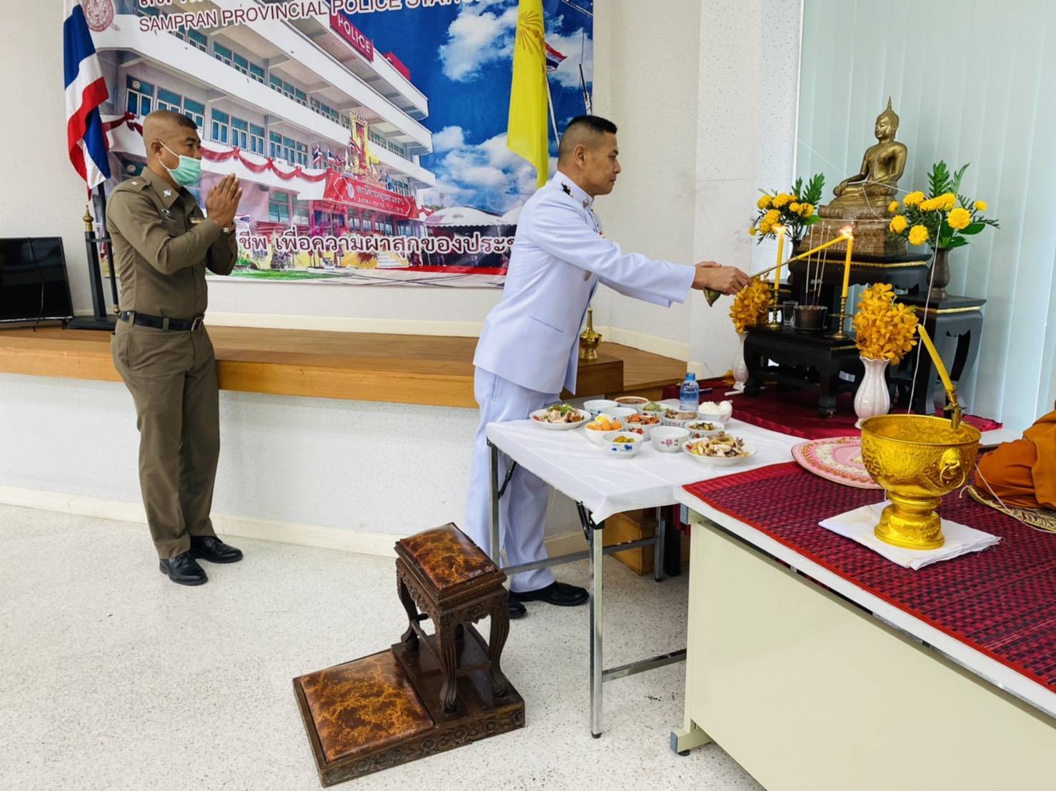 ร่วมกันทำบุญถวายภัตตาหารเพล แด่พระสงฆ์ และมอบทุนการศึกษาให้แก่บุตรธิดาของข้าราชการการตำรวจ สภ.สามพราน จำนวน 25 ทุน ทุนละ 2,100 บาท (เงินกองทุนเหรียญหลวงพ่อวัดไร่ขิงรุ่น “เสมามหามงคล”) เพื่อถวายเป็นพระราชกุศลแด่พระบาทสมเด็จพระเจ้าอยู่หัวรัชกาลที่ 9 และอุทิศส่วนบุญส่วนกุศลให้แก่ข้าราชการตำรวจที่ล่วงลับไปแล้ว ตลอดจนเพื่อเป็นสิริมงคล เป็นความสุข ความเจริญ แก่ข้าราชการตำรวจ สภ.สามพราน และครอบครัว
