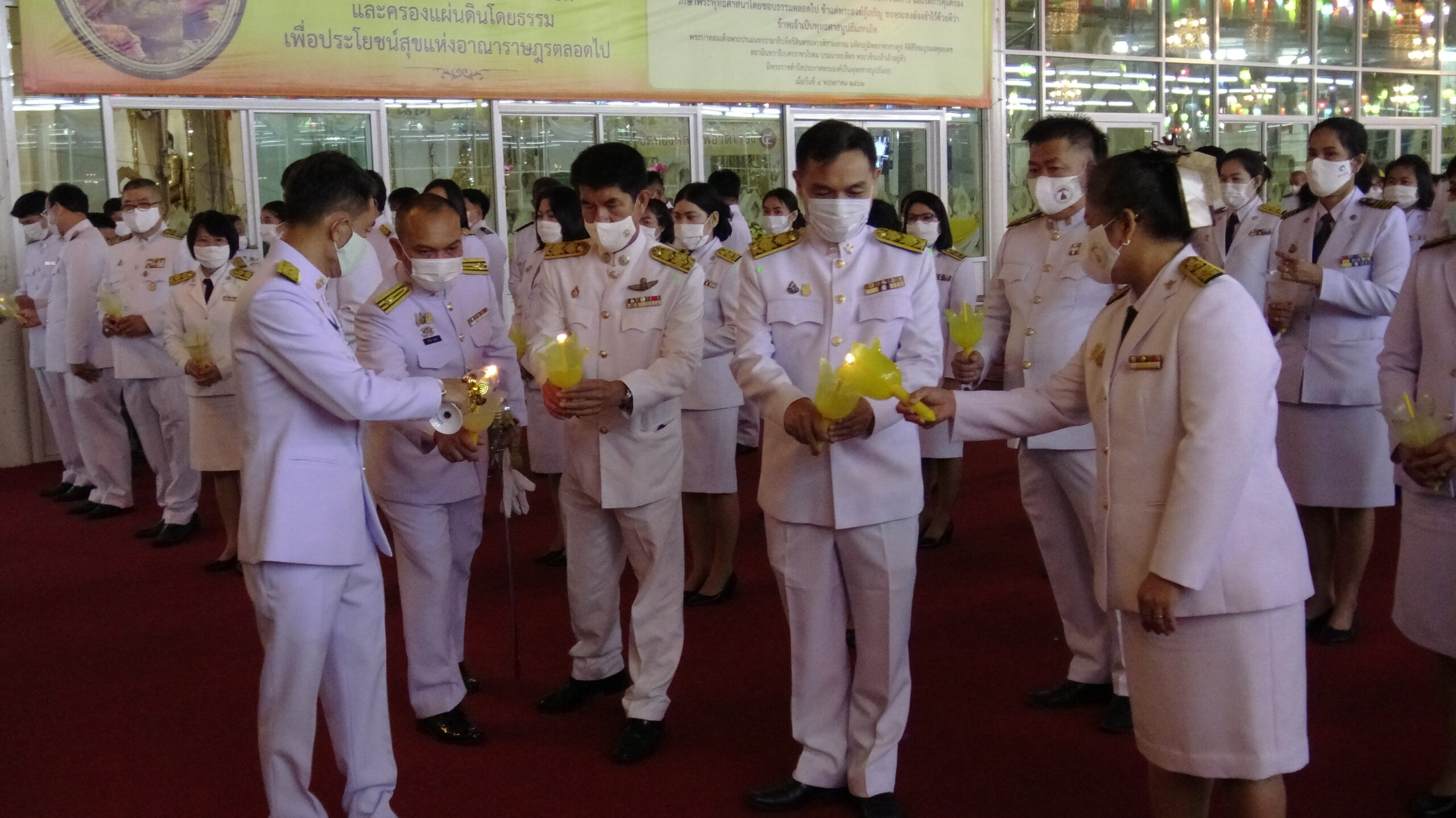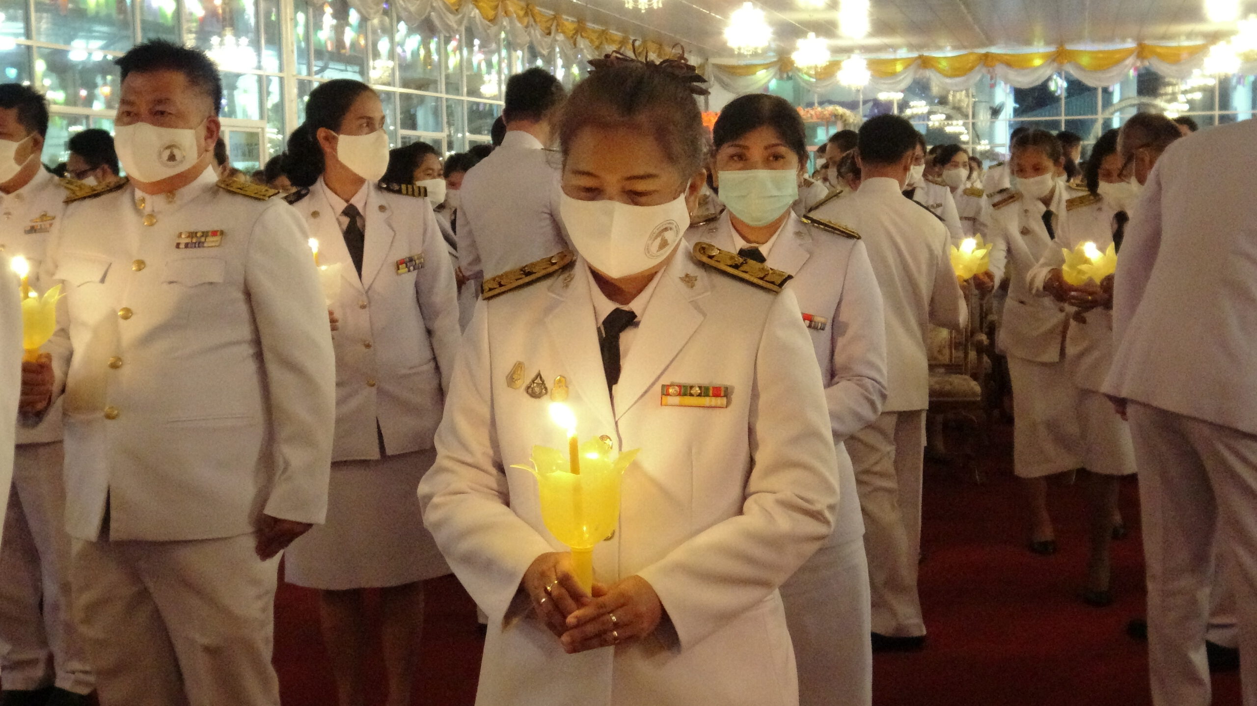 นายอำเภอสามพรานนำพสกนิกรจุดเทียนน้อมรำลึกในพระมหากรุณาธิคุณวันคล้ายวันสวรรคต ในหลวงรัชกาลที่ 9