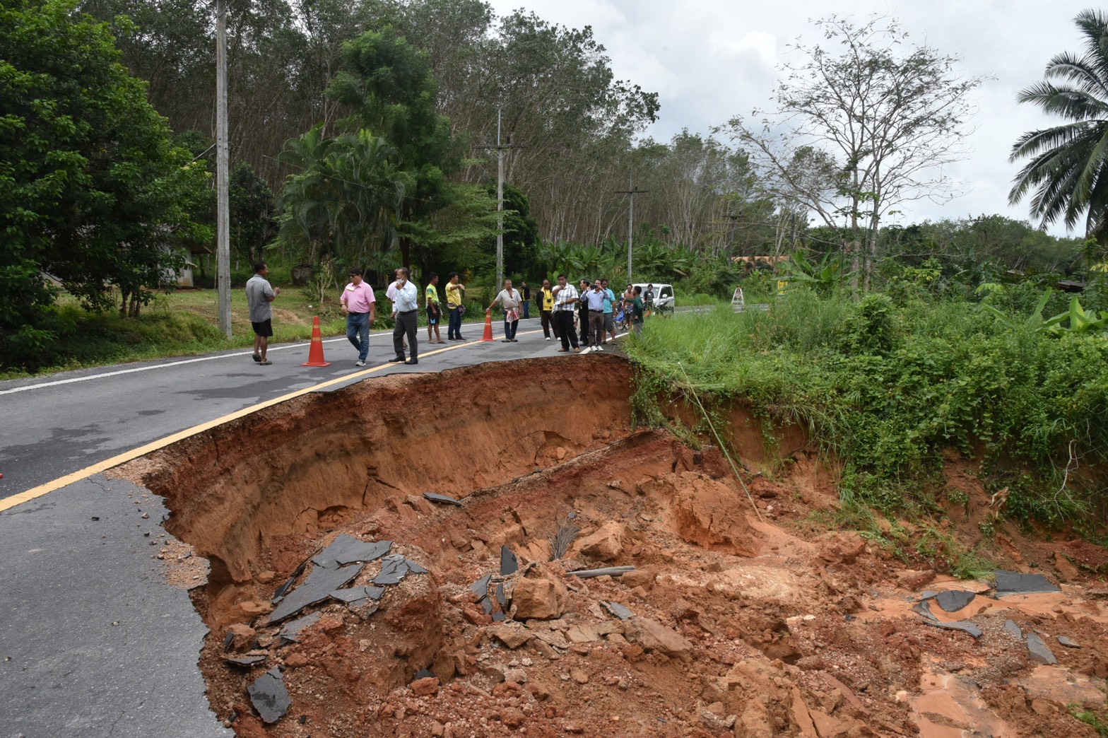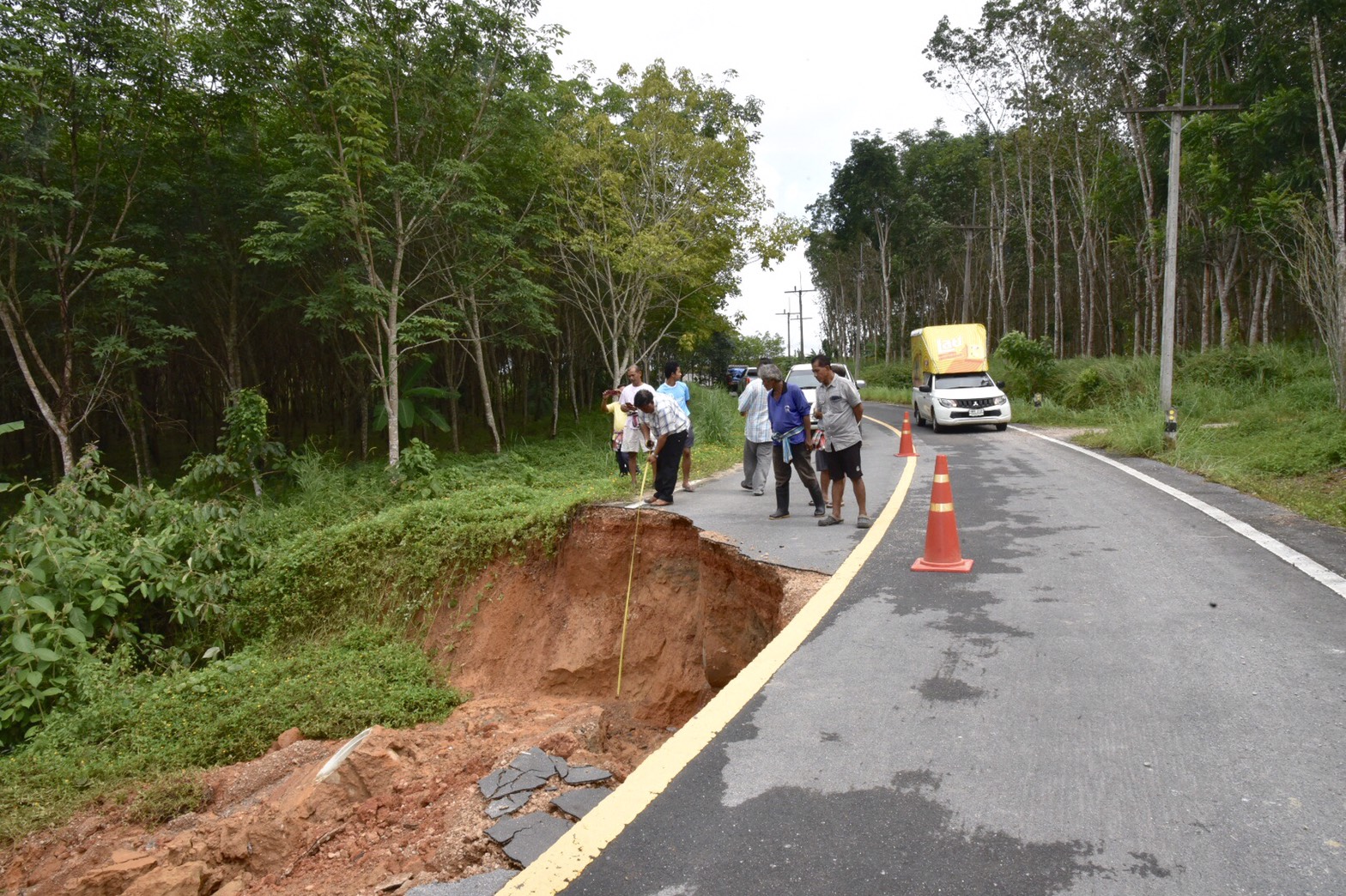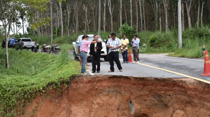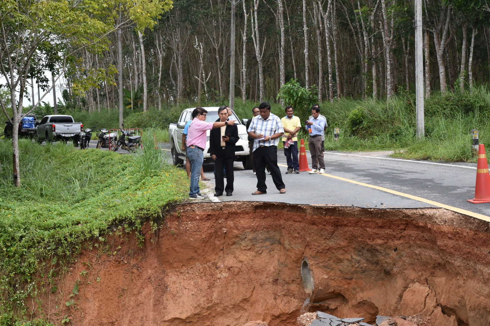 นายกอบจ.ตรังสำรวจถนนชำรุดจากน้ำกัดเซาะ ช่วงฝนตกหนัก สั่งการจนท.ซ่อมด่วน