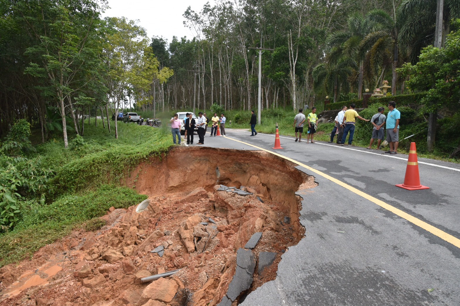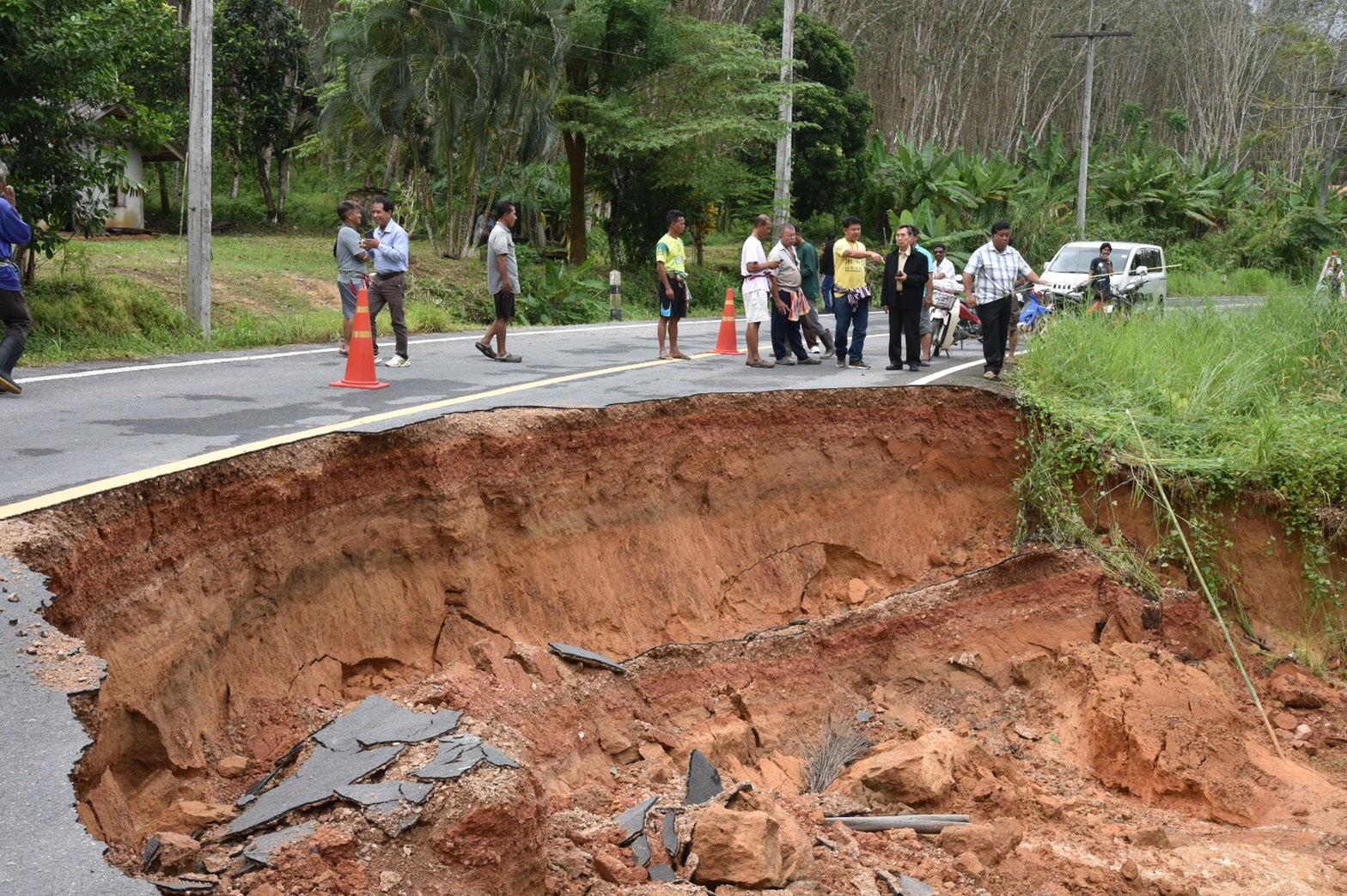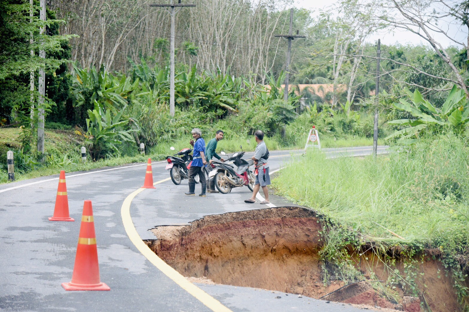 นายกอบจ.ตรังสำรวจถนนชำรุดจากน้ำกัดเซาะ ช่วงฝนตกหนัก สั่งการจนท.ซ่อมด่วน