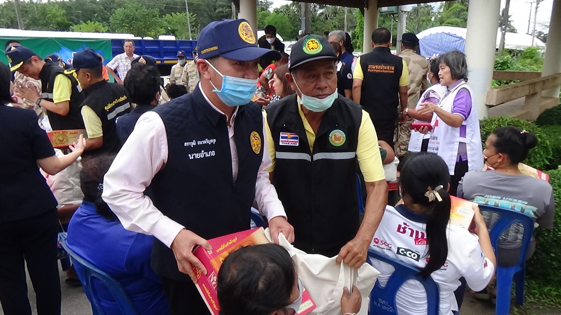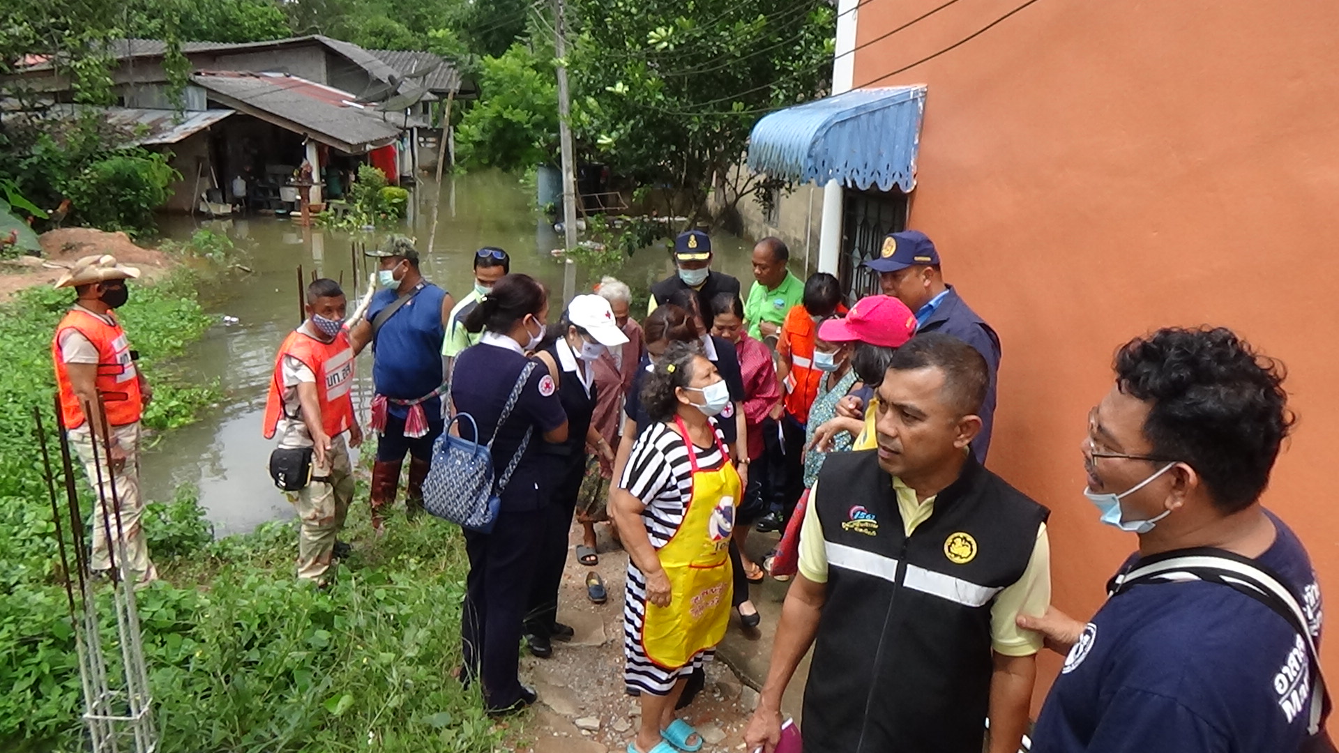 หลังจากนั้นที่หมู่ที่ 4 ต.บางรัก อ.เมืองตรัง นายขจรศักดิ์ เจริญโสภา ผู้ว่าราชการจังหวัดตรัง พร้อมด้วยนายประพิศ จันทร์มา รองอธิบดีกรมชลประทาน นางละมัย เจริญโสภา นายกเหล่ากาชาดจังหวัดตรัง/ ประธานชมรมแม่บ้านมหาดไทยและนายสราวุฒิ ธนาเจริญสกุล นายอำเภอเมืองตรัง และคณะ นำสิ่งของเครื่องอุปโภคบริโภคมอบให้กับชาวบ้านที่ประสบอุทกภัย จำนวน 50 ครัวเรือน ผู้ว่าราชการจังหวัดตรัง กล่าวว่า วันนี้ปรากฏเป็นข่าวว่าทางตำบลบางรักได้รับผลกระทบที่คันดินกั้นน้ำขาด และน้ำได้ไหลมาที่บางรักที่ทำให้ประชาชนบริเวณนี้ได้รับผลกระทบ จังหวัดได้รับทราบข่าวจากนายอำเภอ อบต.ส่วนท้องถิ่น ไม่ได้นิ่งนอนใจ พร้อมให้ความช่วยเหลือ ในขณะที่นายวรวุธ ศิลปะอาชา รัฐมนตรีว่าการกระทรวงธรรมชาติและสิ่งแวดล้อมสั่งการให้ทรัพยากรน้ำและบาดาล นำน้ำดื่มมามอบให้กับพี่น้องเพื่อเป็นการช่วยเหลือและบรรเทาความเดือดร้อน นอกจากนี้ ผู้ว่าราชการจังหวัดตรังได้สั่งกำชับให้ทางอำเภอเมืองตรัง ประสานร่วมกับ กำนัน ผู้ใหญ่บ้าน ในแต่ละพื้นที่ และสำนักงานป้องกันและบรรเทาสาธารณภัย ในการเตรียมความพร้อมออกให้ความช่วยเหลือประชาชน ที่ประสบภัยตลอด 24 ชั่วโมง ในขณะนี้จากรายงานทราบว่าในพื้นที่จังหวัดตรัง มีพื้นที่ประสบภัยพิบัติ จำนวน 7 อำเภอ 27 ตำบล 3 เทศบาล 3 ชุมชน 83 หมู่บ้าน 920 ครัวเรือน