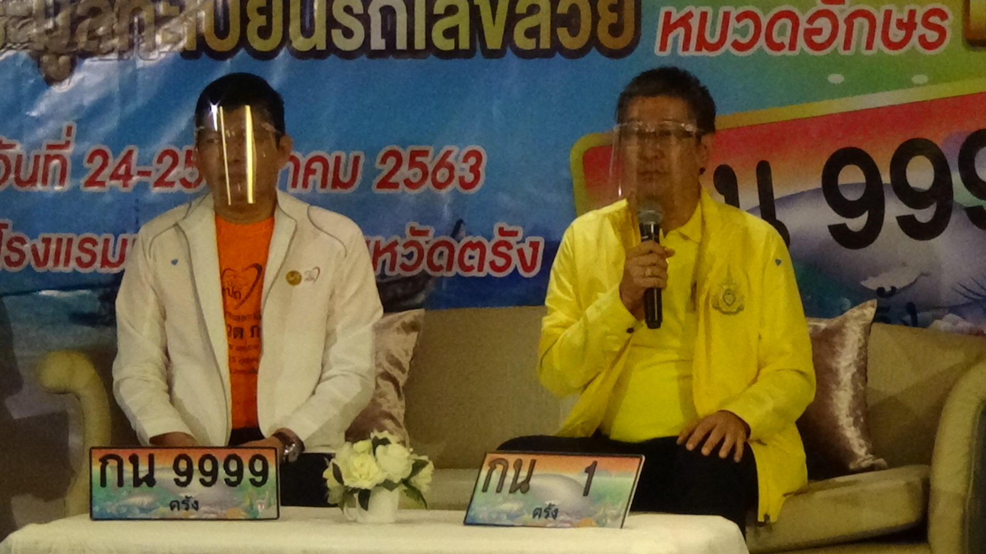 นายขจรศักดิ์ เจริญโสภา ผู้ว่าราชการจังหวัดตรัง เป็นประธานในงานแถลงข่าวการประมูลหมายเลขทะเบียนรถจังหวัดตรัง ครั้งที่ 8 หมวดอักษร กน ก้าวหน้าร่ำรวย เลขสวยหนุนนำ เป็นการเปิดประมูลหมายเลขทะเบียนรถ สำหรับรถยนต์นั่งส่วนบุคคลไม่เกิน 7 คน หมวดอักษร กน จำนวน 301 หมายเลข ให้ผู้ที่สนใจประมูลเป็นการทั่วไปในวันเสาร์ที่ 24 และวันอาทิตย์ที่ 25 ตุลาคม 2563 ตั้งแต่เวลา 09.00 น. เป็นต้นไป ที่ห้องบอลรูม 2 โรงแรมเรือรัษฎา อำเภอเมือง จังหวัดตรัง