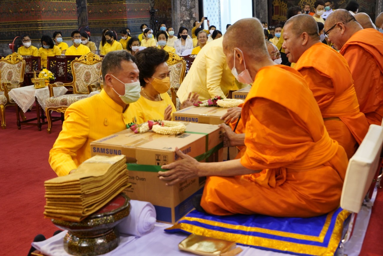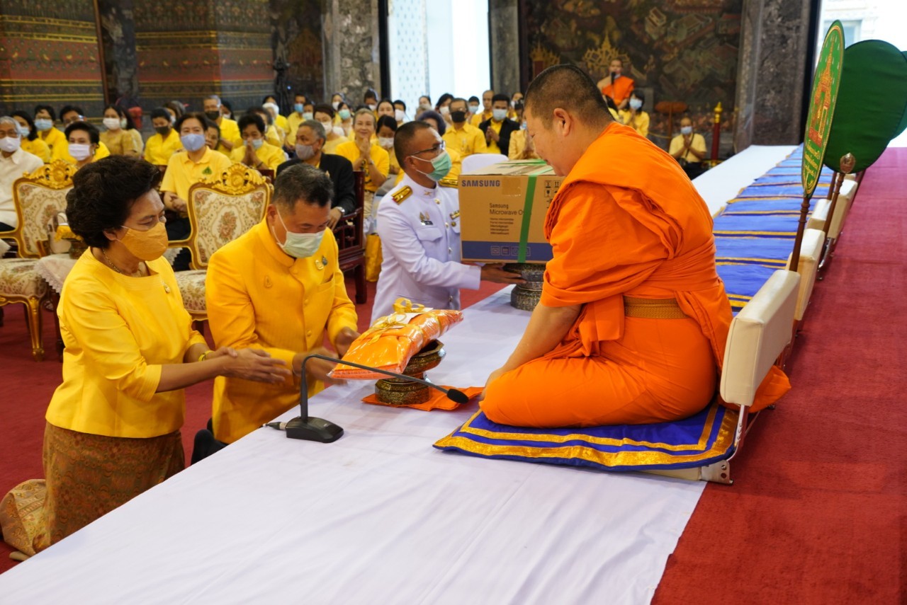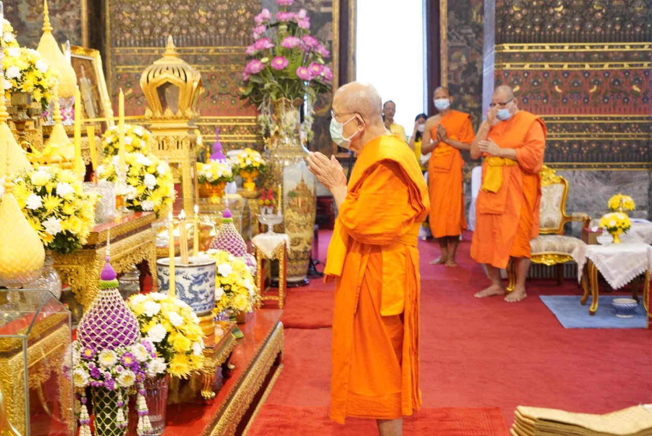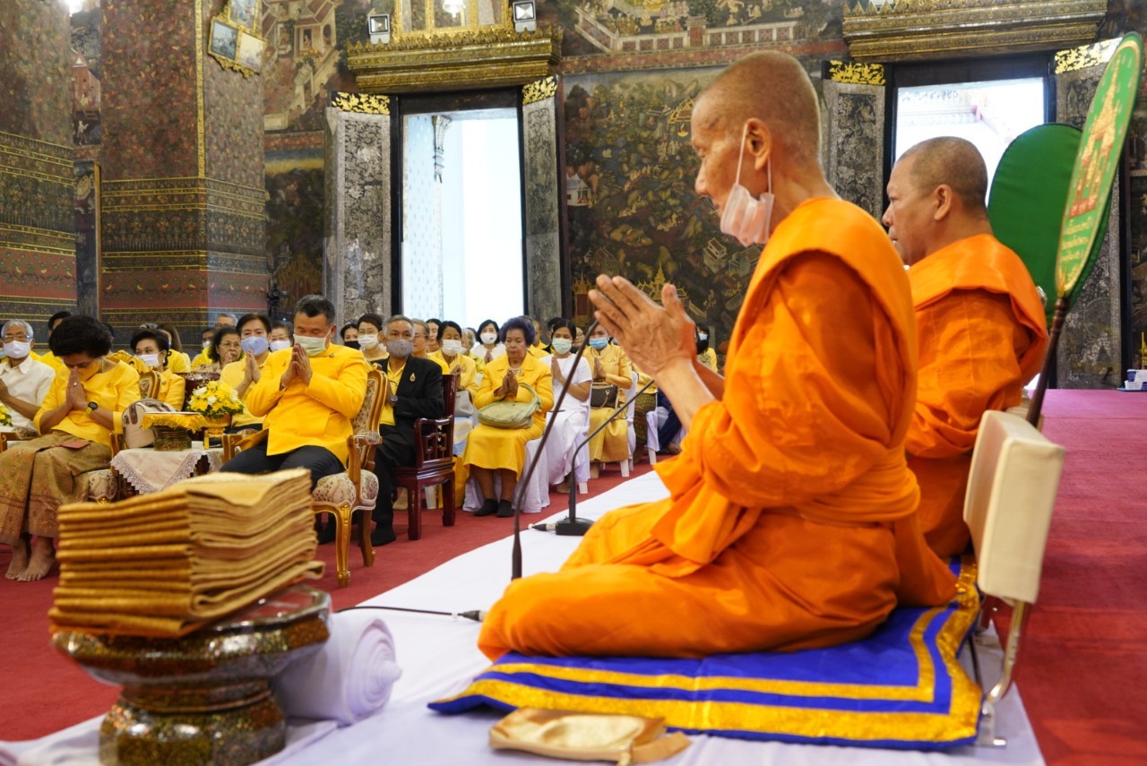 เป็นต้นว่า การบูรณะปฏิสังขรณ์พระอาราม พระราชทานผ้าพระกฐินเป็นประจำทุกปี ทรงมีพระราชหฤทัยใส่ใจต่อการทะนุบำรุงพระพุทธศาสนา เมื่อพระองค์เสด็จสวรรคต ปวงชนชาวไทยล้วนอาลัยเป็นอย่างยิ่ง พสกนิกรชาวไทยในฐานะผู้อยู่ใต้พระบรมโพธิสมภาร ต้องสำนึกในพระมหากรุณาธิคุณ ปฏิบัติตามพระบรมราโชวาท ตั้งตนอยู่ในความดี การทักษิณานุปาทานในวันนี้เป็นการแสดงออกถึงความกตัญญูกตเวที บำเพ็ญกุศลอุทิศพระองค์ ” ในการนี้ พระสงฆ์ทรงสมณศักดิ์ 10 รูปสวดพระพุทธมนต์ถวายเป็นพระราชกุศล และพระสงฆ์สดับปกรณ์ 150 รูป