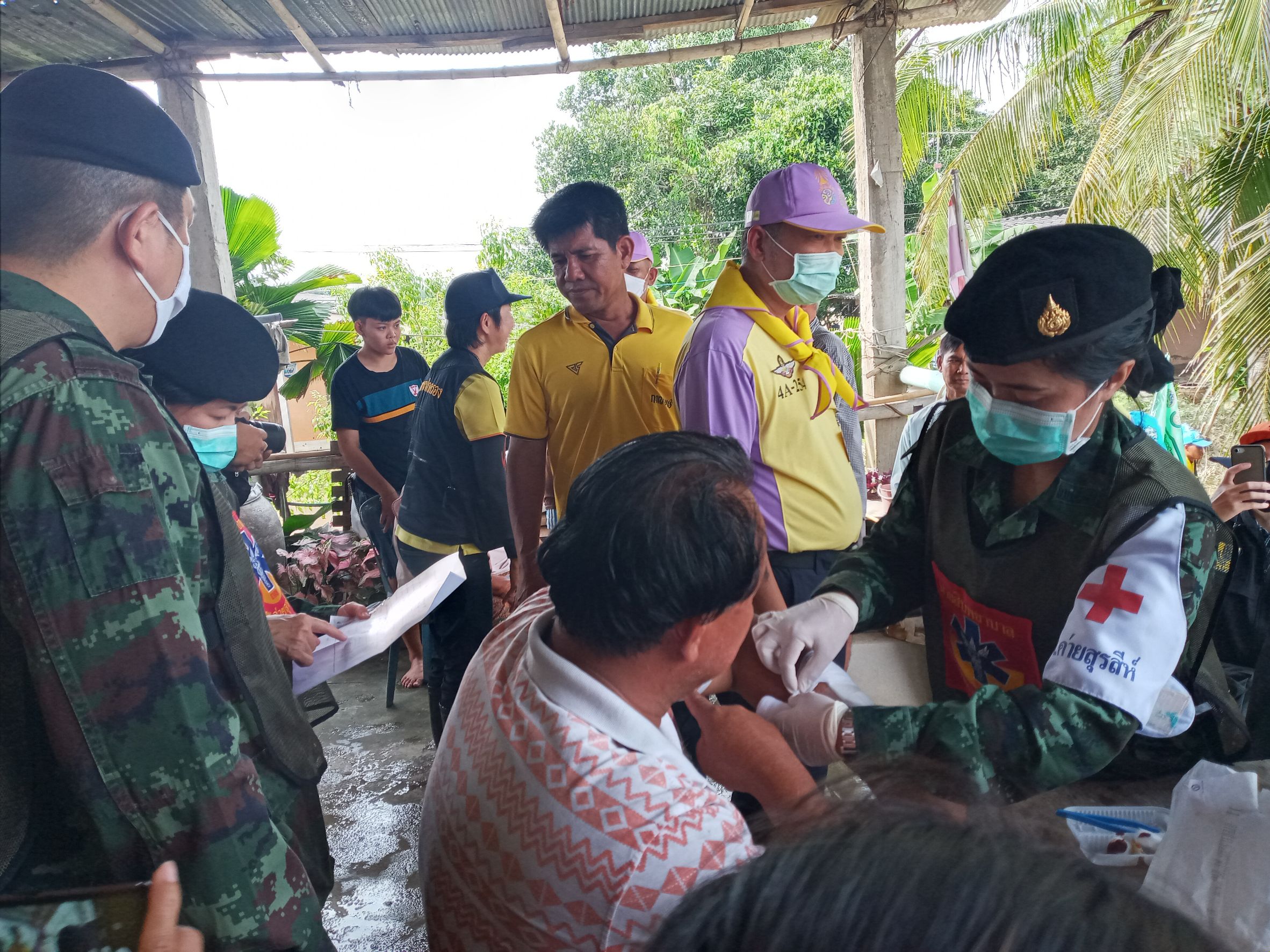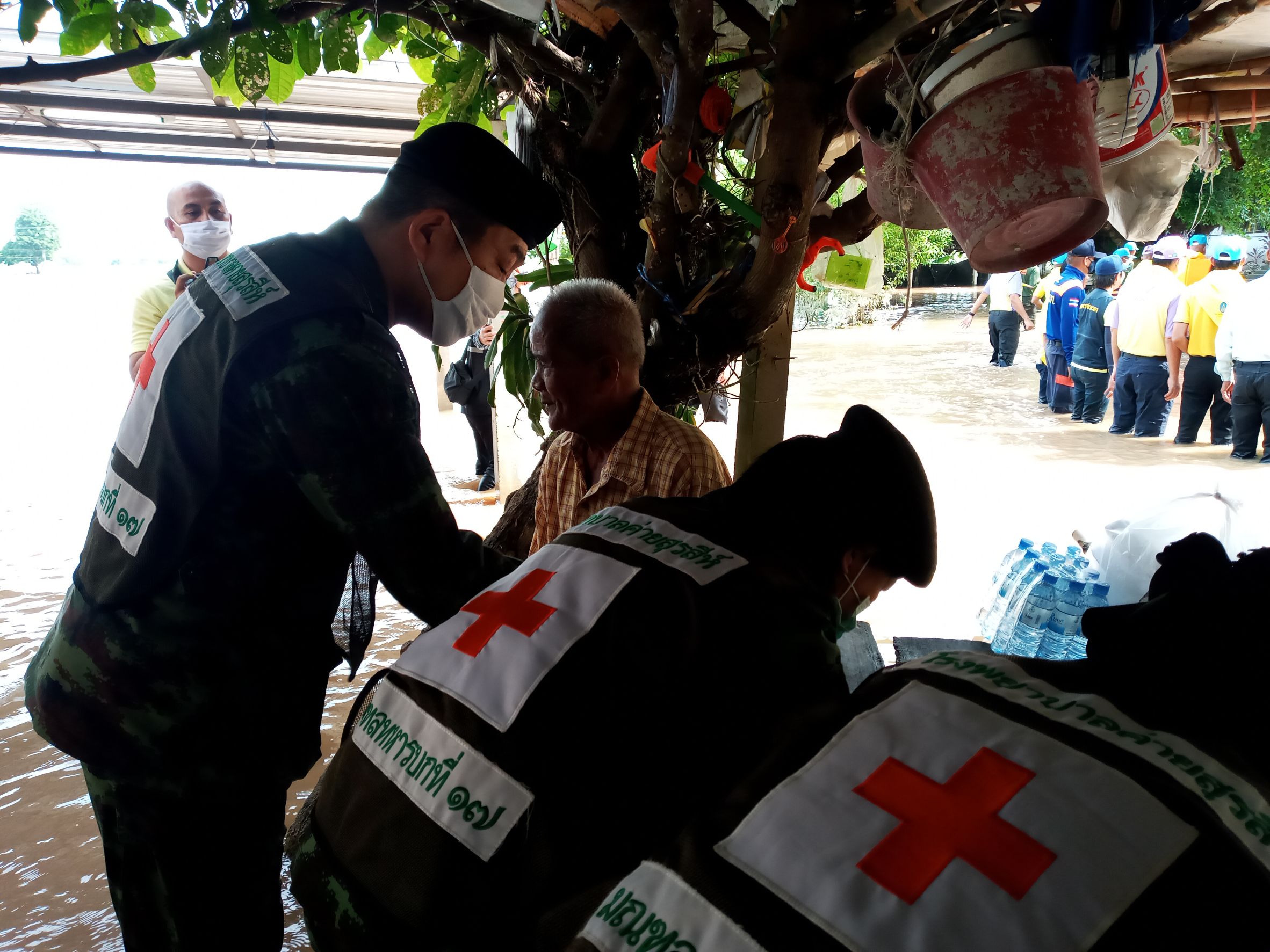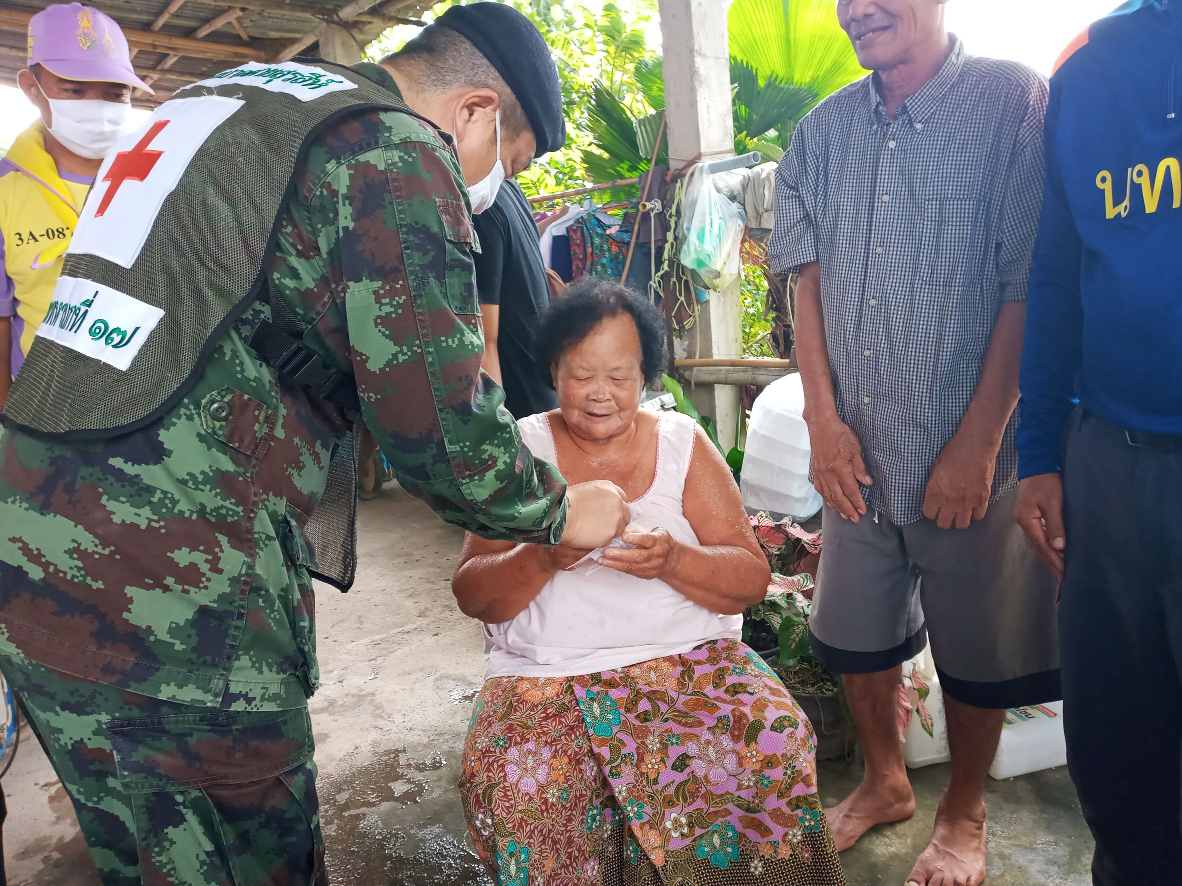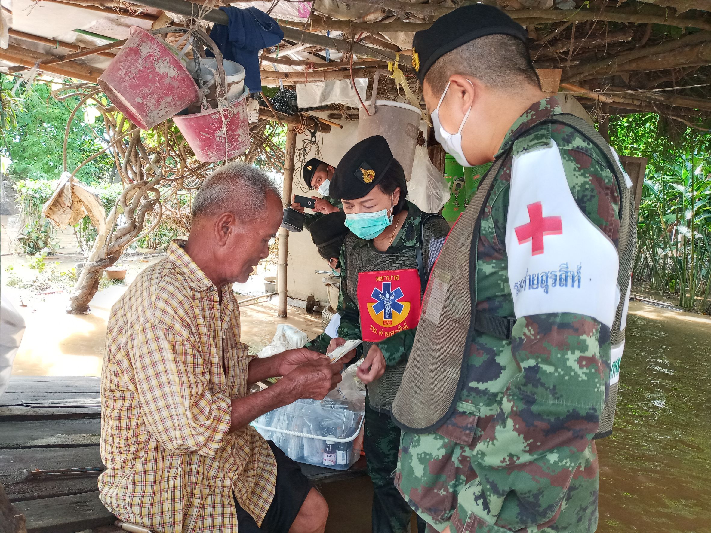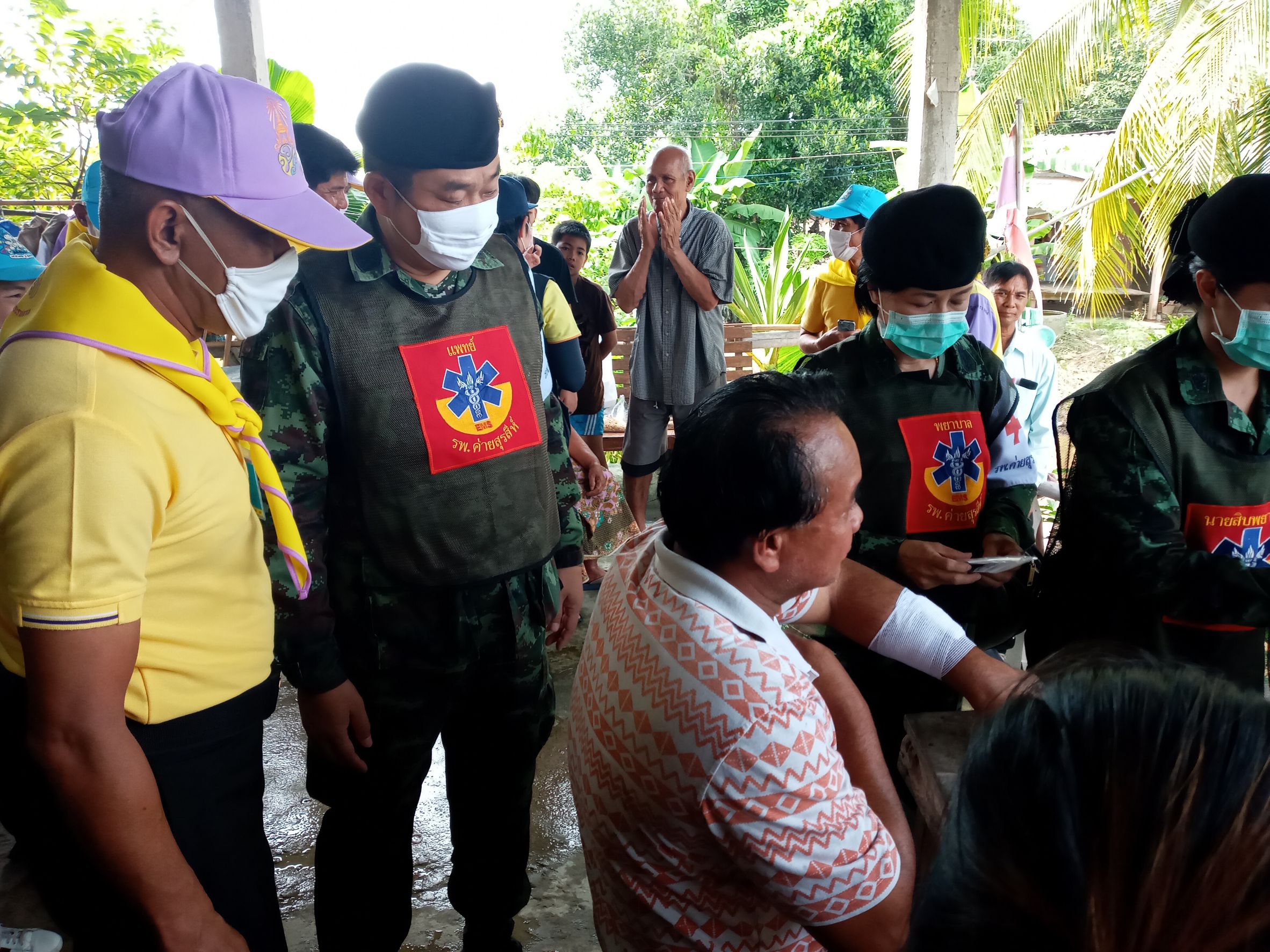 จึงได้ทำการรักษาในเบื้องต้น และยังพบผู้ป่วยชายเป็นฝีที่แขนจนต้องทำการผ่าตัดเอาหัวฝีออกพร้อมทั้ง ทำแผลและทำการตรวจร่างกายประชาชนที่ถูกน้ำท่วม ซึ่งประชาชนส่วนใหญ่เป็นโรคหวัด และโรคผิวหนังพร้อมมอบถุงยังชีพช่วยเหลือในเบื้องต้น