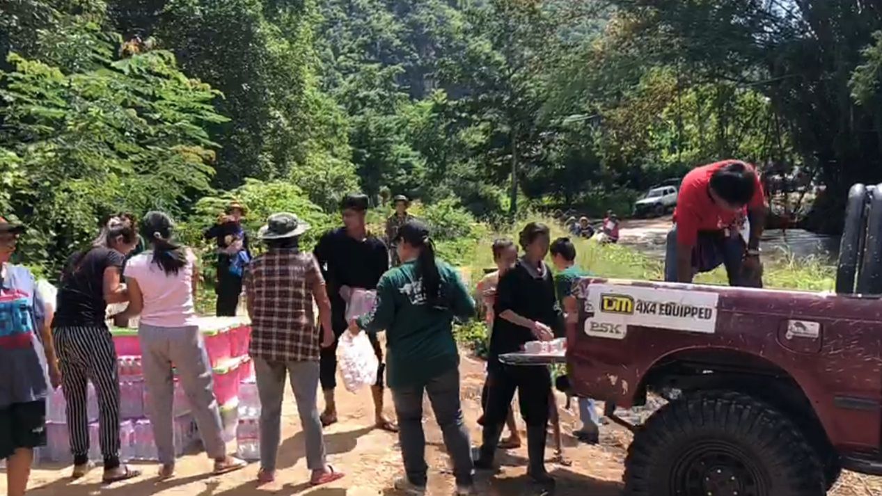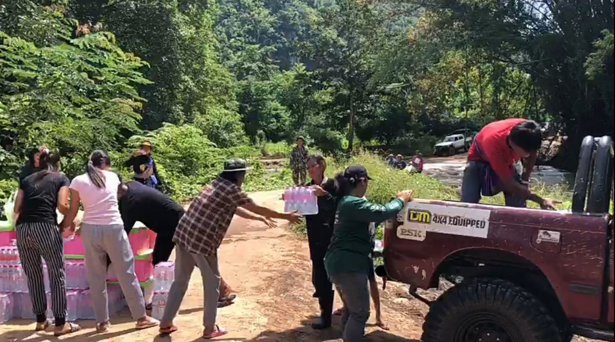 กาญจนบุรี ธารน้ำใจจากหลายภาคส่วนหลั่งใหลเข้าช่วยชาวบ้านที่ถูกน้ำป่าพัดฝายที่ใช้ในการสัณจรขาดจนถูกตัดขาดจากภายนอก