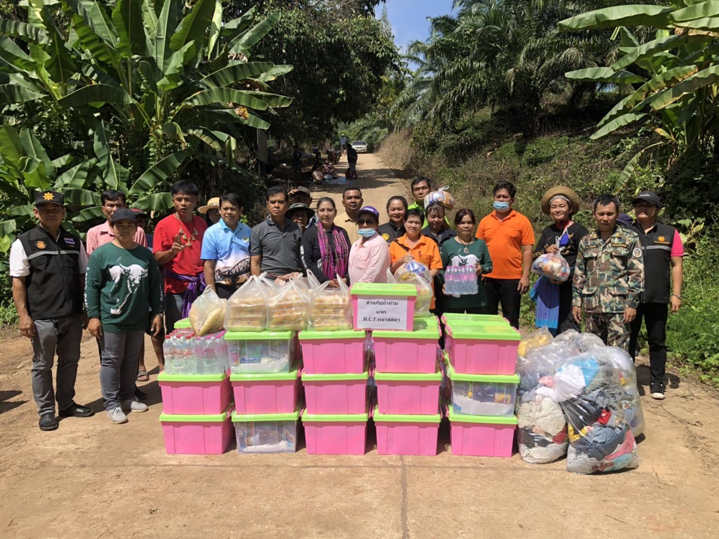นายวสันต์ สุนจิรัตน์ กำนันต.ช่องสะเดา อ.เมือง จ.กาญจนบุรีได้เป็นตัวแทน บริษัท เอ็มซีที พลาสติคเอ็นเตอร์ไพร์ มอบสิ่งของเครื่องใช้ในการอุปโภค – บริโภค พร้อมด้วย นางละออ ภู่ประดิษฐ ผู้ใหญ่บ้าน ม.1บ้านท่าทุ่งนา สารวัตรกำนัน ต.ช่องสะเดา