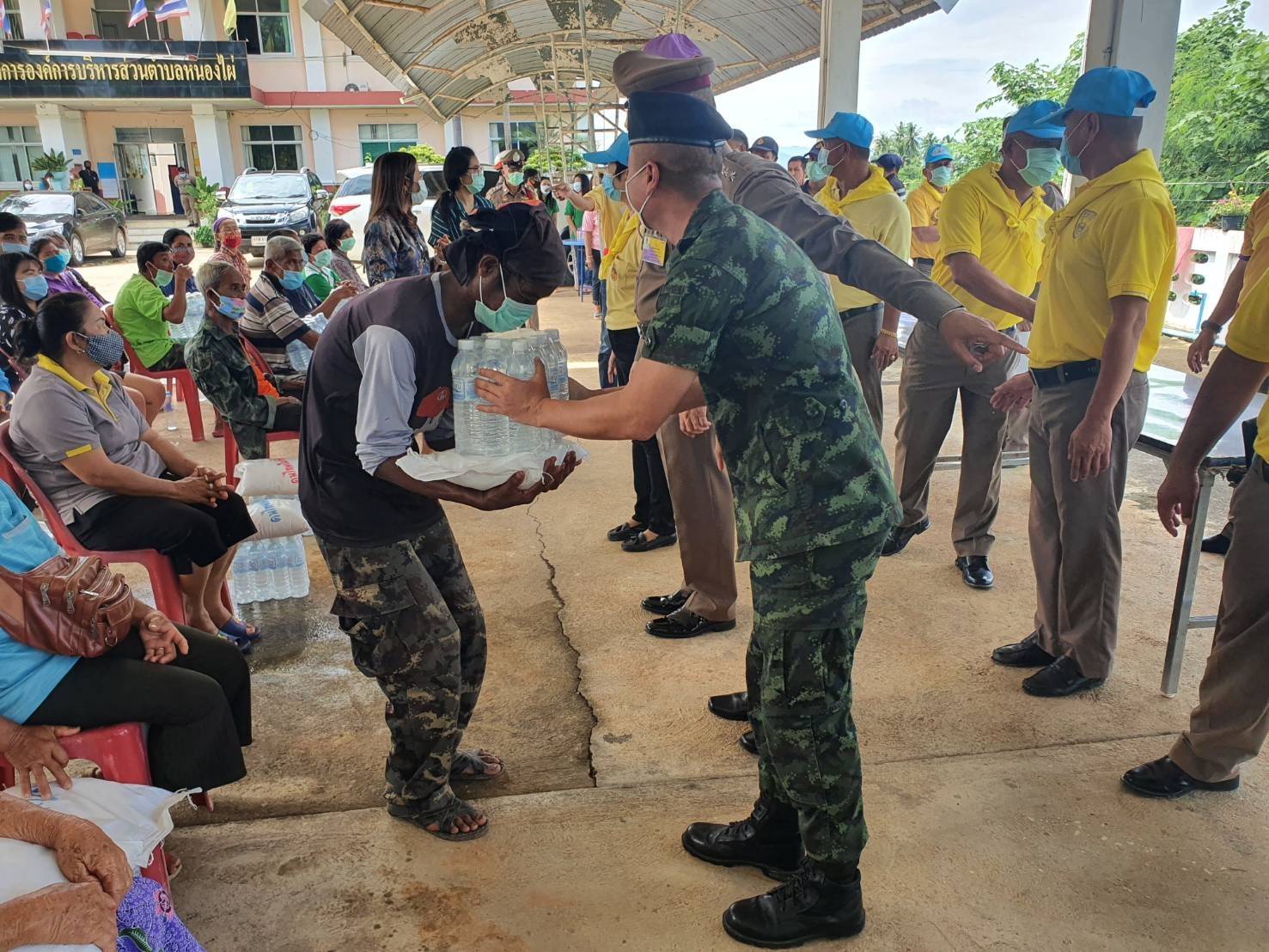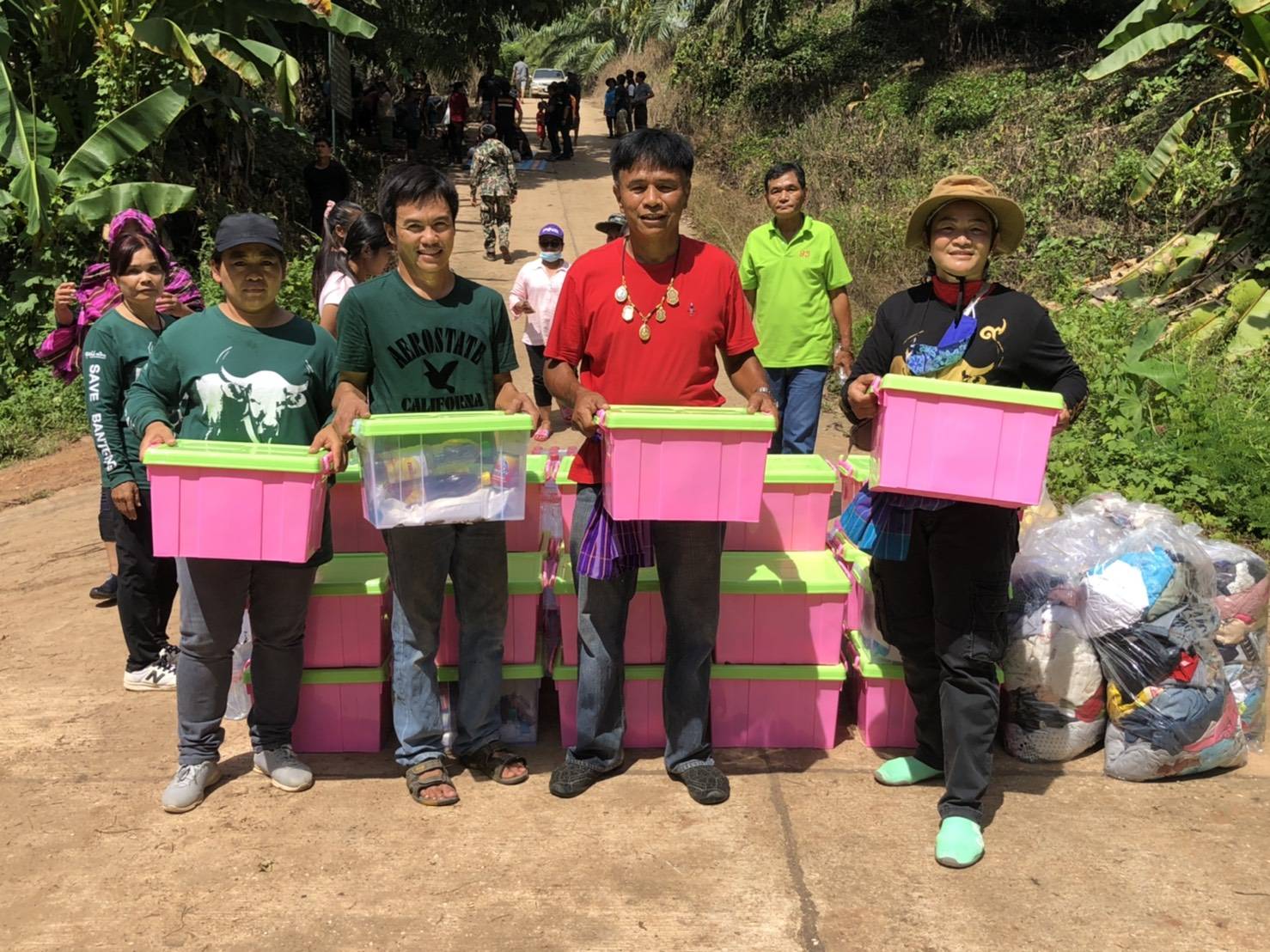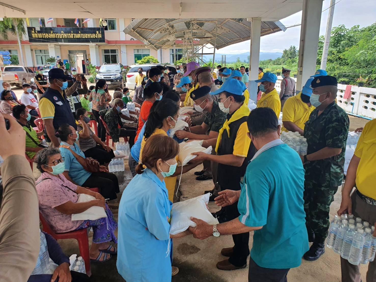 โดยมี นายเจือเหรียญทอง นายกเทศบาล ต.ไทรโยค นางสุกัญญา ทิพย์สุขุมรองนายกเทศบาล ต.ไทรโยคนายวิเชียร์ บุญพิทัษกำนัน ต.ลิ่นถิ่นนายสมพล กุลวุฒิ กำนัน ต.ไทรโยค ผู้ใหญ่สุรีย์ ภูมิ ผู้ใหญ่อัณชลิตา เซี่ยงหลิว ผู้ใหญ่ยืนยง ปานณรงค์ ผู้ใหญ่สมชาย อ่อนตา สารวัตกำนันประกอบ เซี่ยงหลิว พร้อมชาวบ้านในพื้นที่ เข้าร่วมรับมอบสิ่งของต่างๆที่นำไปช่วยเหลือในครั้งนี้