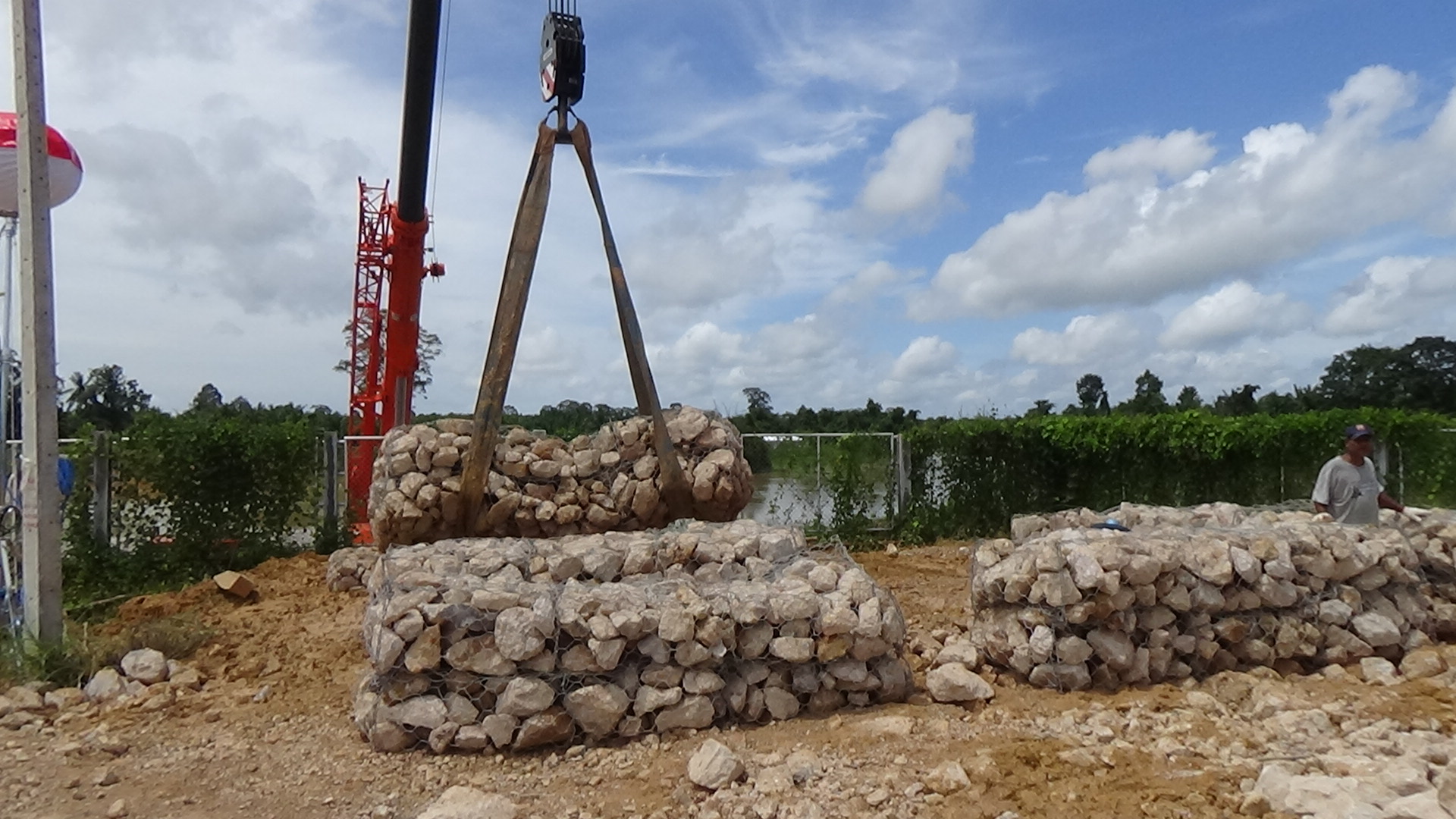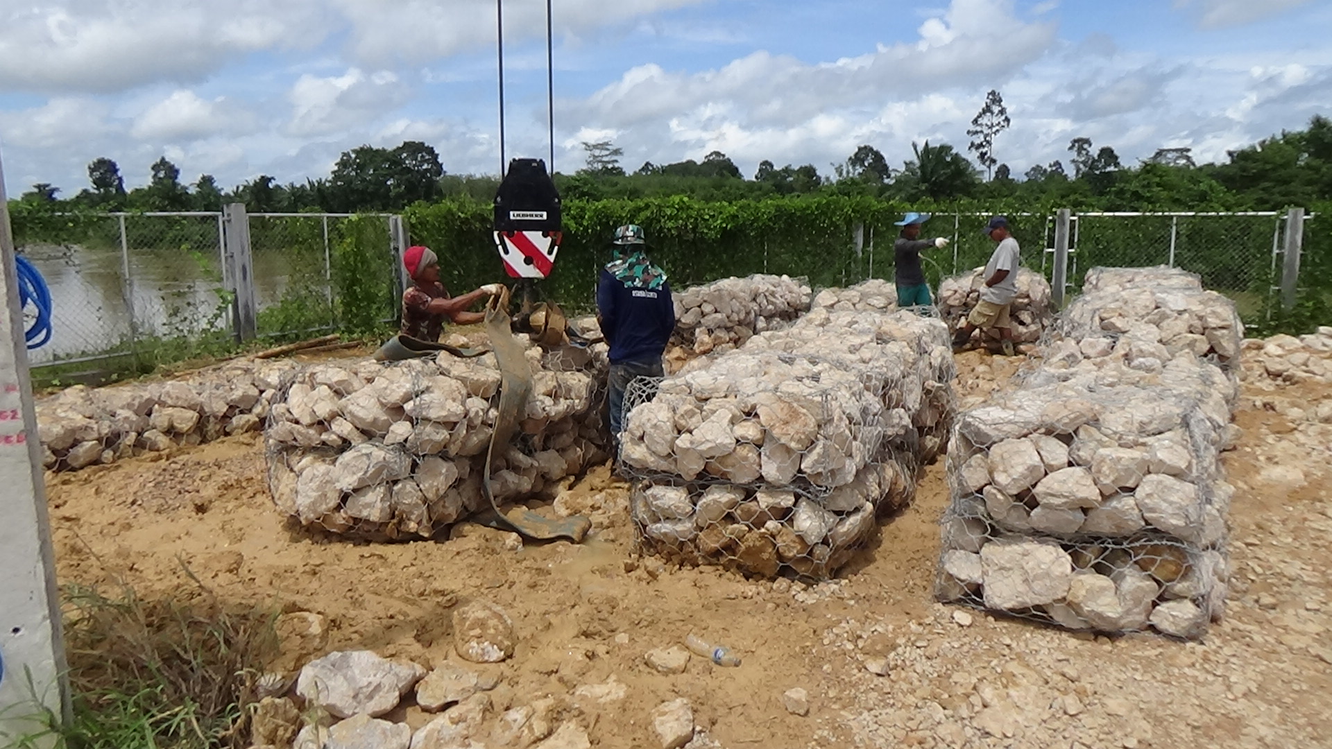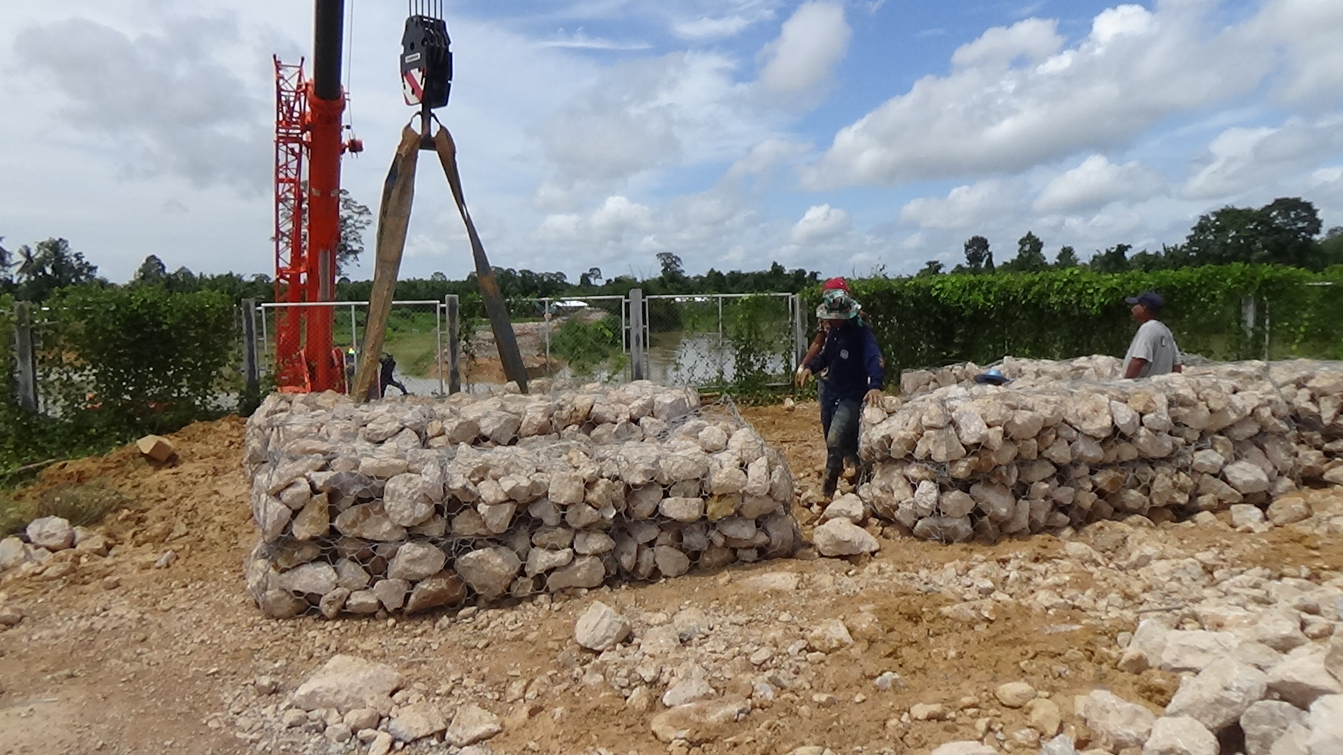 กรมชลประทาน วางเกเบี้ยนเพื่อลดปริมาณน้ำที่จะไหลเข้าสู่คลองลัดผันน้ำแม่น้ำตรัง และไหลเข้าท่วมบ้านเรือนของประชาชน ซึ่งจากการวางเกเบี้ยนแล้วสามารถลดปริมาณน้ำได้ประกอบกับฝนที่ตกลงมามีปริมาณน้อย จึงทำให้ปริมาณน้ำลดลง แต่ที่สามารถควบคุมปริมาณได้ดีกว่าการวางเกเบี้ยนคือการติกดตั้งบานประตูระบายน้ำ