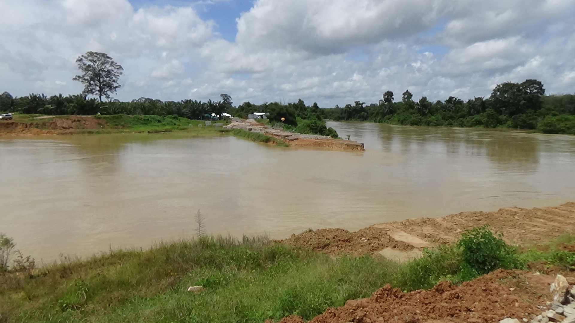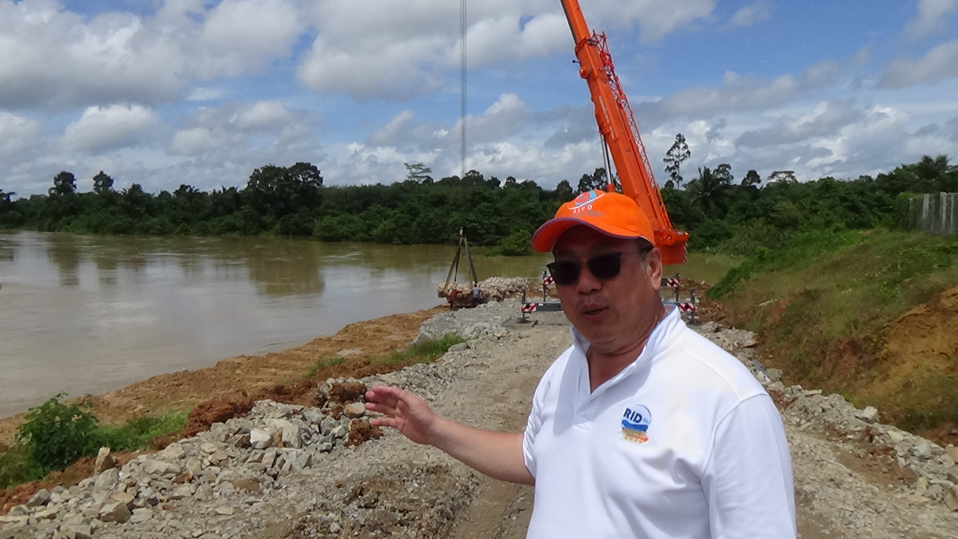 ที่หมู่ที่ 1 ตำบลหนองตรุด อำเภอเมืองตรัง จังหวัดตรัง นายเสริมชัย เซียวศิริถาวร ผู้อำนวยการสำนักพัฒนาแหล่งน้ำขนาดใหญ่ กรมชลประทาน ที่มากำกับดูแลในการแก้ไขปัญหาสถานการณ์น้ำท่วมจากทำนบหรือคันดินกั้นน้ำแม่น้ำตรังขาด ทำให้น้ำไหลทะลักเข้าท่วมบ้านเรือนประชาชน ในพื้นที่ตำบลบางรัก ซึ่งได้รับผลกระทบมากที่สุด ล่าสุดขณะนี้ได้มีการวางเกเบี้ยนลงในแม่น้ำตรังแล้วและนำเกเบี้ยนวางบริเวณตลิ่งเพื่อป้องกันตลิ่งพังจากการถูกน้ำกัดเซาะ โดยมีการพยายามวางเกเบี้ยนตั้งแต่เมื่อคืน แต่วางได้น้อยเนื่องจากกระแสน้ำยังไหลเชี่ยว และทำการวางเกเบี้ยนอีกครั้งเมื่อเช้า ก็สามารถลดปริมาณน้ำได้ในระดับหนึ่ง เนื่องจากจะวางเกเบี้ยนปิดน้ำทั้งหมดไม่ได้ ต้องมีการปล่อยน้ำให้เข้าในคลองลัดผันน้ำแม่น้ำตรังให้ได้ประมาณ 300 ลูกบาศก์เมตรต่อวินาที หากมีการปิดกั้นไม่ให้น้ำเข้านั้นปริมาณน้ำก็จะไหลเข้าสู่ตัวเมืองตรัง จะทำให้ประชาชนในตัวเมืองตรังได้รับความเดือดร้อน