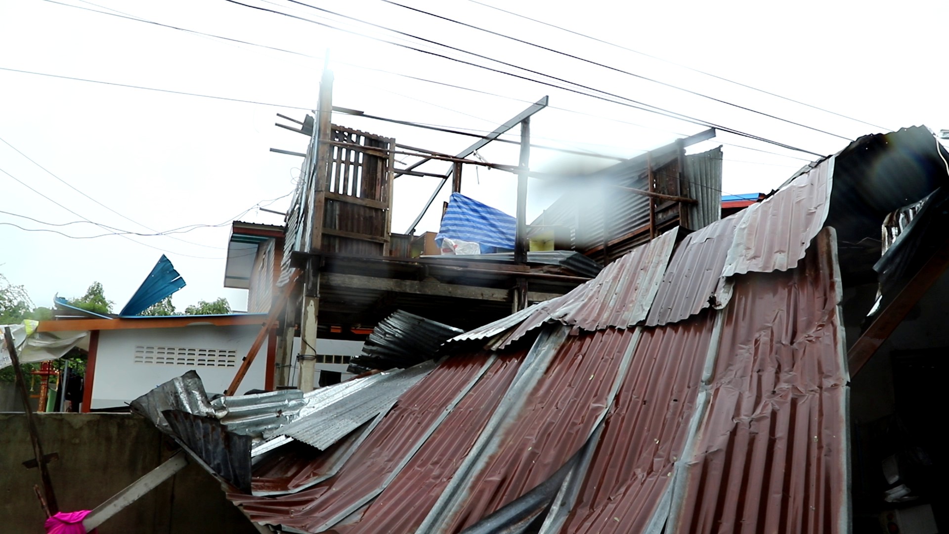 จากการบอกเล่าขอประชาชน เล่าว่าพายุพัดผ่านมาแค่เวลาประมาณ 1 นาทีเท่านั้น พัดหอบเอาสังกระสีมุงหลัง วัสดุที่เบาปลิวว่อนขึ้นไปบนฟ้า ซึ่งน่ากลัวมาก ประชาชนที่บ้านเสียหาย ตอนนี้ก็ช่วยเหลือตัวเองกัน บ้านบางหลังที่ที่หลังคาพัง ชาวบ้านก็ช่วยกันนำผ้าใบไปคุมหลังคาไว้ เพราะมีฝนตกทั้งวัน