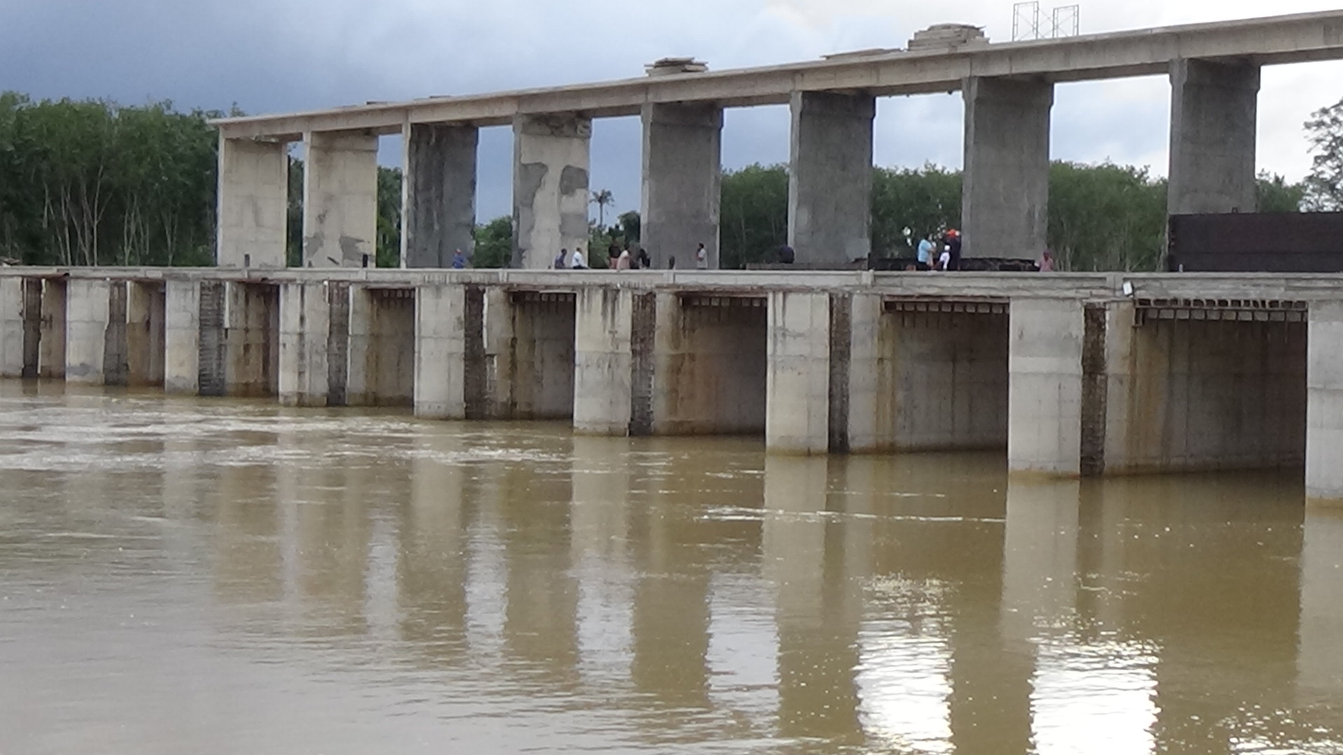 ที่หมู่ที่ 1 ตำบลหนองตรุด อำเภอเมืองตรัง จังหวัดตรัง นายรุทร์ อินนุพัฒน์ ผู้อำนวยการสำนักงานก่อสร้างชลประทานขนาดใหญ่ที่ 11 กรมชลประทาน นำเจ้าหน้าที่ คนงานและเครื่องจักรกลหนัก เร่งติดตั้งวางเหล็กกั้นน้ำที่ประตูระบายน้ำ ในการกั้นปริมาณน้ำในแม่น้ำตรัง หลังจากที่ทำนบหรือคันดินกั้นแม่น้ำตรังขาด ทำให้มวลน้ำในแม่น้ำตรังไหลทะลักเข้าสู่คลองลัดผันน้ำแม่น้ำตรัง เพื่อระบายน้ำลงสู่ทะเล การที่ทำนบหรือคันดินกั้นแม่น้ำตรังขาดนั้น ทำให้น้ำได้ไหลเข้าท่วมบ้านเรือนของประชาชนทำให้ประชาชนได้รับความเดือดร้อน
