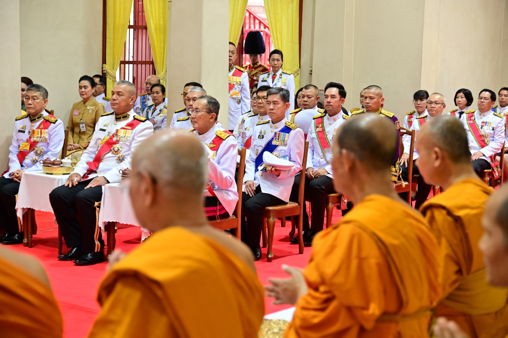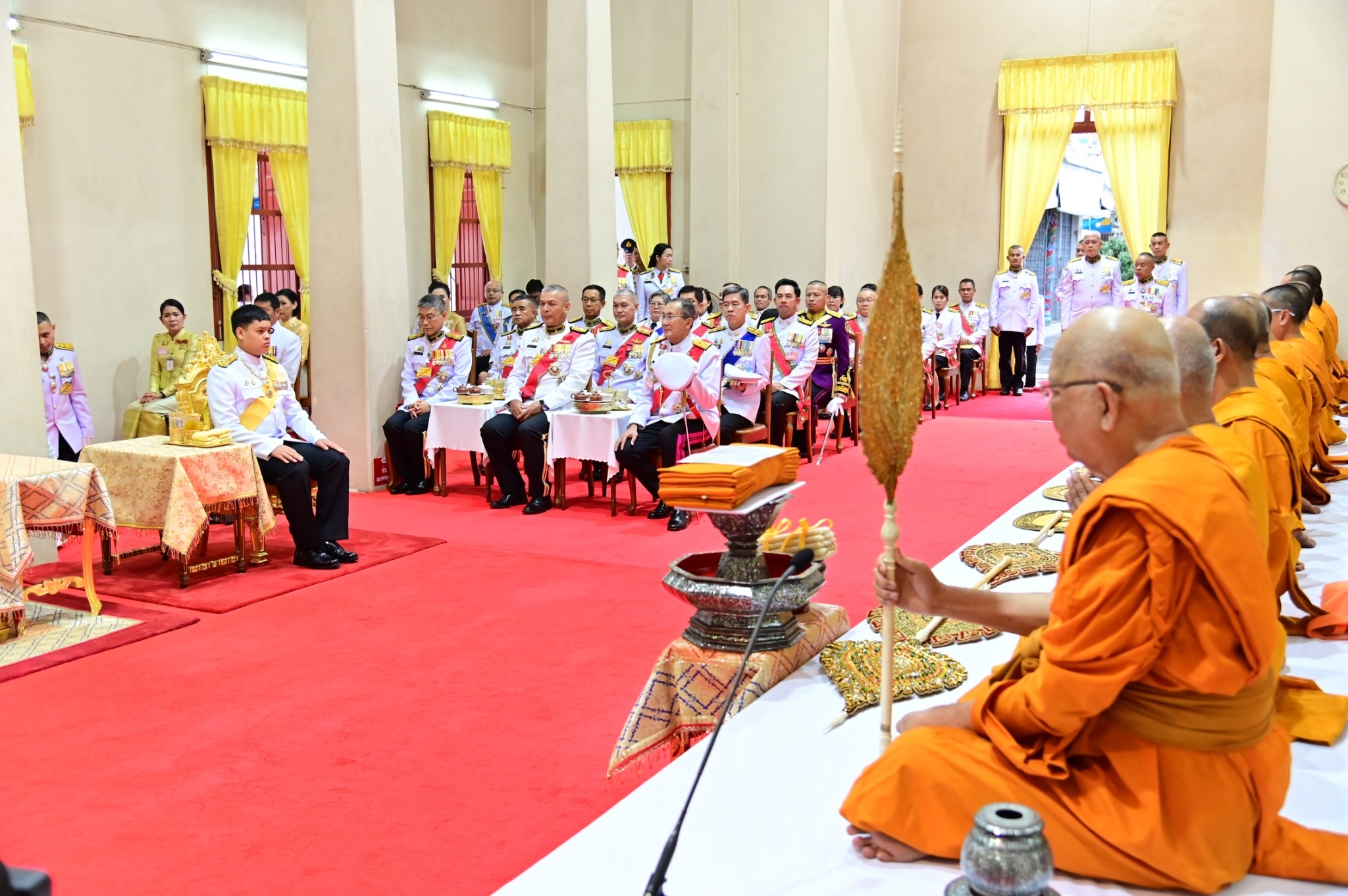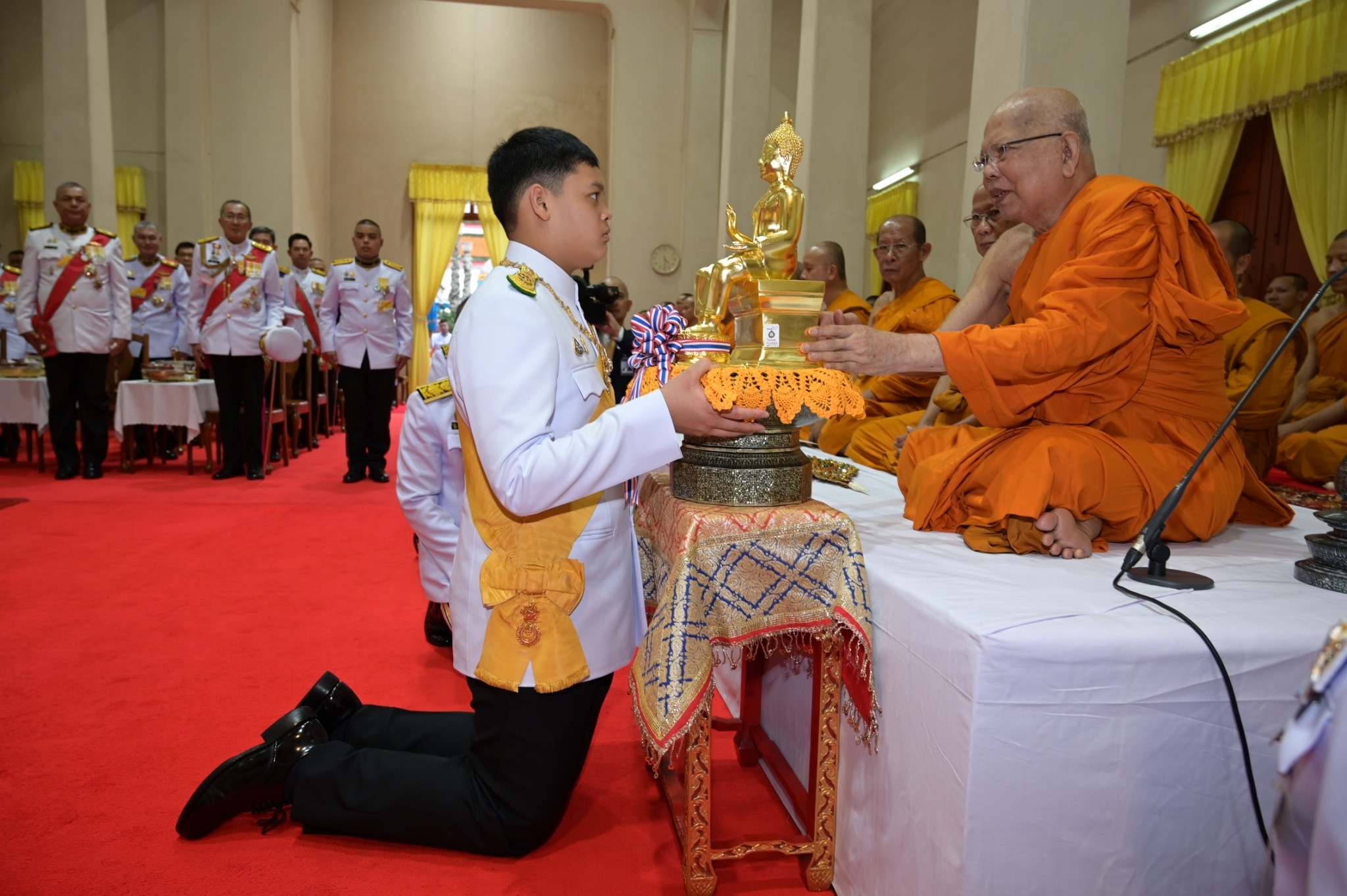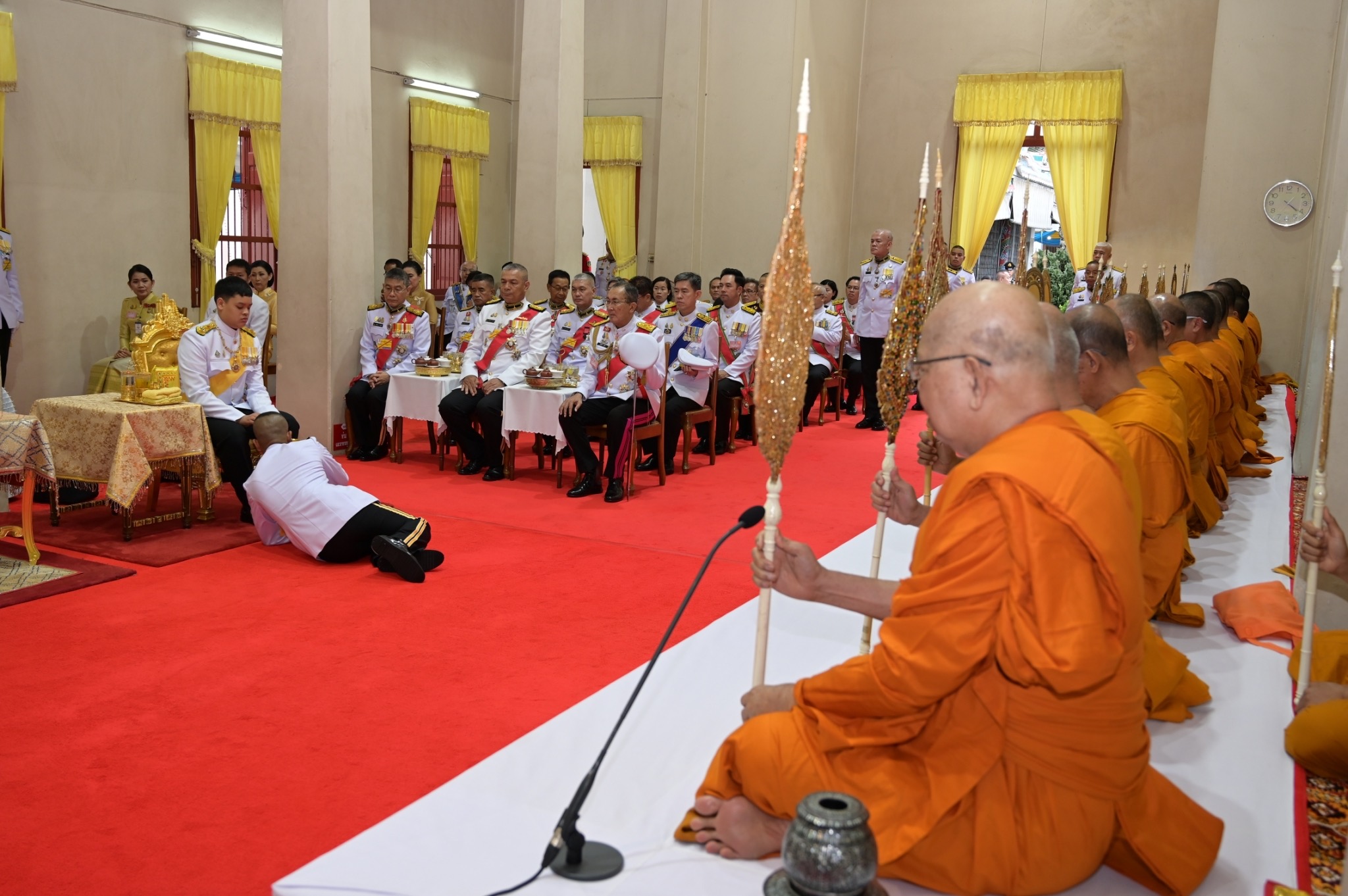 จากนั้น เสด็จไปยังพระอุโบสถ ทรงวางผ้าไตรไว้เหนือพานแว่นฟ้า ทรงจุดธูปเทียนเครื่องนมัสการบู
