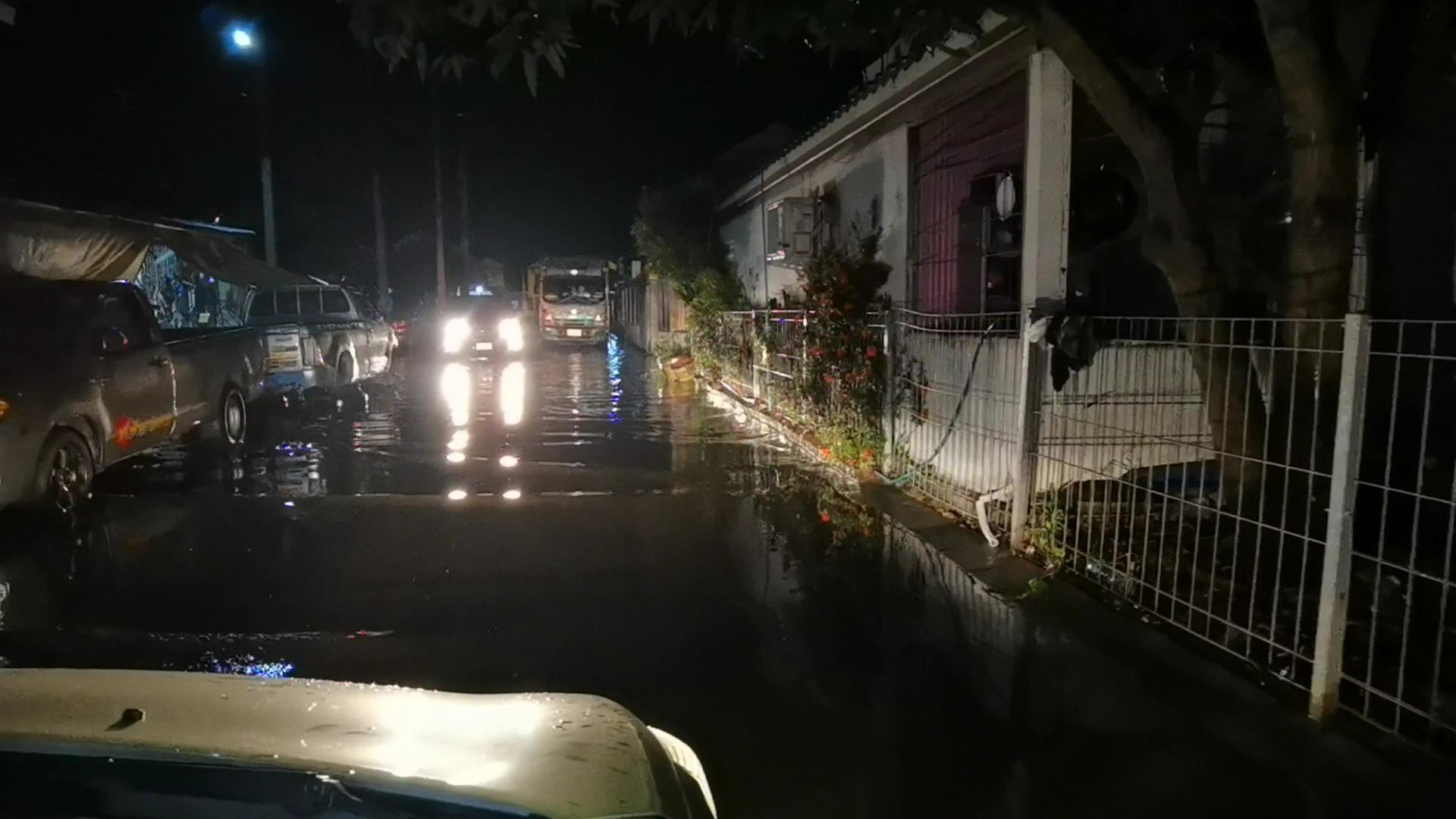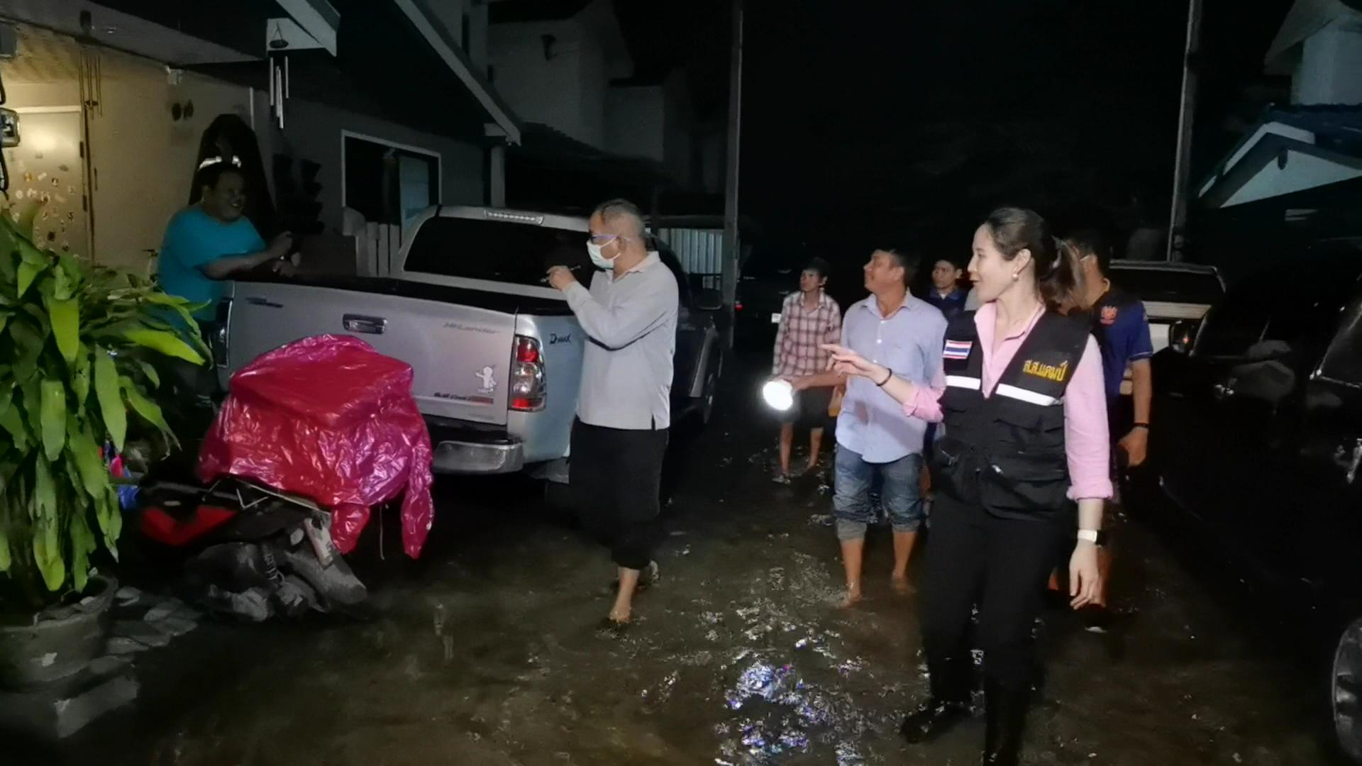 จากการตรวจสอบพบว่า หมู่บ้านเอื้ออาทรอยู่ติดกับพื้นที่นา และ มีการถมที่เพื่อเตรียมก่อสร้างบ้านจัดสรรซึ่งอยู่ติดกับบ้านเอื้ออาทร และมีการถมพื้นที่สูงกว่า 2 เมตร ทำให้น้ำไม่สามารถระบายได้ทันจนเอ่อไหลเข้าท่วมหมู่บ้านดังกล่าวโดยชาวบ้านที่อาศัยอยู่ภายในหมู่บ้านเอื้ออาทรต่างพูดเป็นเสียงเดียวกันว่า ตั้งแต่หมู่บ้านเกิดขึ้นมาไม่เคยมีเหตุการณ์น้ำเอ่อล้นท่วมขังพื้นผิวถนน และ มีน้ำจำนวนมากไหลเข้ามาท่วมภายในบ้าน โดยปกติแล้วจะเอ่อล้นท่วมถนน ซึ่งจะยุบลงภายในไม่กี่ชั่วโมง แต่ภายหลังมีการมาถมที่เพื่อเตรียมจะสร้างบ้านจัดสรรและมีความสูงของการถมที่ดังกล่าวกว่า 2 เมตร ซึ่งสูงกว่าถนนภายในหมู่บ้าน ตลอดช่วงสัปดาห์ที่เกิดฝนตกติดต่อกัน ทำให้มีปริมาณน้ำเข้ามาจำนวนมากดังกล่าว