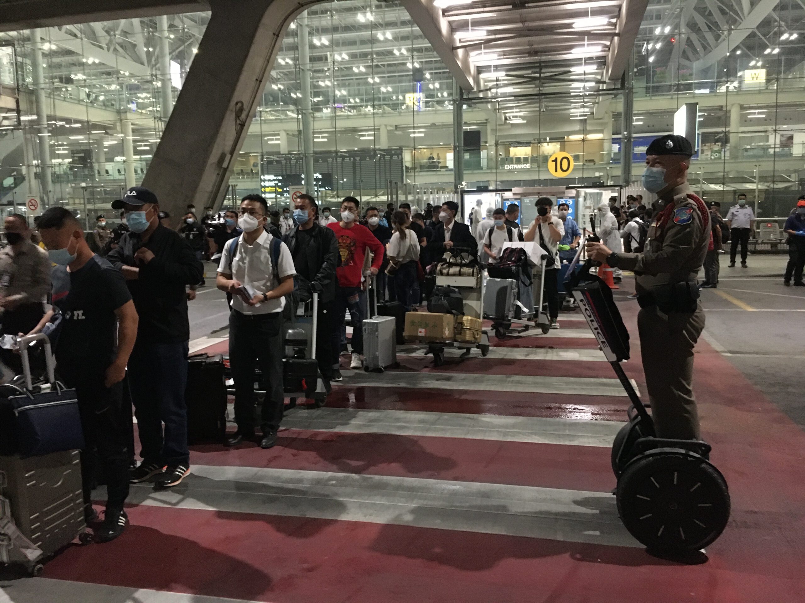 *****เมื่อเวลา 18.30น.วันทื่ 20 ต.ค.2563 ที่สนามบินสุวรรณภูมิ นายกิตติพงศ์ กิตติขจร รองผู้อำนวยการท่าอากาศยานสุวรรณภูมิ (สายปฏิบัติการ 1) บริษัท ท่าอากาศยานไทย จำกัด (มหาชน) (ทอท.) พร้อมเจ้าหน้าที่และหน่วยงานที่เกี่ยวข้อง ให้ต้อนรับนักท่องเที่ยวประเภทพิเศษ Special Tourist Visa (STV) เป็นนักท่องเที่ยวชาวจีนจำนวน 39 คน เดินทางมาโดยสายการบิน Spring Airlines เที่ยวบินที่ 9C8579 จากเมืองเซี่ยงไฮ้ สาธารณรัฐประชาชนจีน ถึงท่าอากาศยานสุวรรณภูมิ (ทสภ.) เวลา 17.10 น.