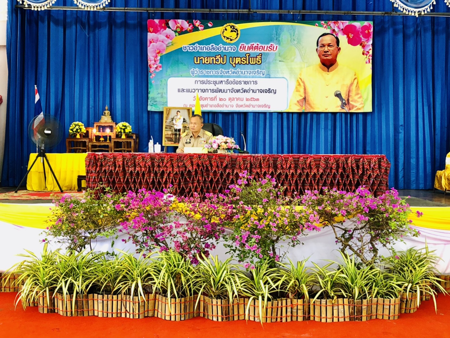 นายธนูศักดิ์ เสมอภาค นายอำเภอลืออำนาจ จังหวัดอำนาจเจริญ นางวัชราภรณ์ นาท้าว ปลัดอาวุโส นำหัวหน้าหัวหน้าส่วนระดับอำเภอ ผู้บริหารสถานศึกษาทั้ง 23 แห่ง ผู้บริหารองค์กรปกครองส่วนท้องถิ่น ทั้ง 8 แห่ง กำนัน ผู้ใหญ่บ้าน จำนวน 272 คน องค์กรเครือข่าย ได้นำเสนอแนวทางการพัฒนาอำเภอลืออำนาจ การแก้ปัญนำ้ท่วม การเจาะบาดาลพร้อมติดตั้งพลังงานแสงอาทิตย์ การขุดลอกลำห้วย การส่งเสริมการท่องเที่ยว การพัฒนาอย่างเป็นระบบ ผู้ว่าราชการจังหวัด ได้เน้นยำ การแก้ไขปัญหายาเสพติดร่วมกัน การจัดทำแผนพัฒนาเริ่มจากหมู่บ้าน ไปสู่ตำบล และอำเภอร่วมเป็นแผนพัฒนาอำเภอ เพื่อให้ส่วนราชการที่เกี่ยวข้องนำไปจัดหางบประมาณภายใน 5 ปี