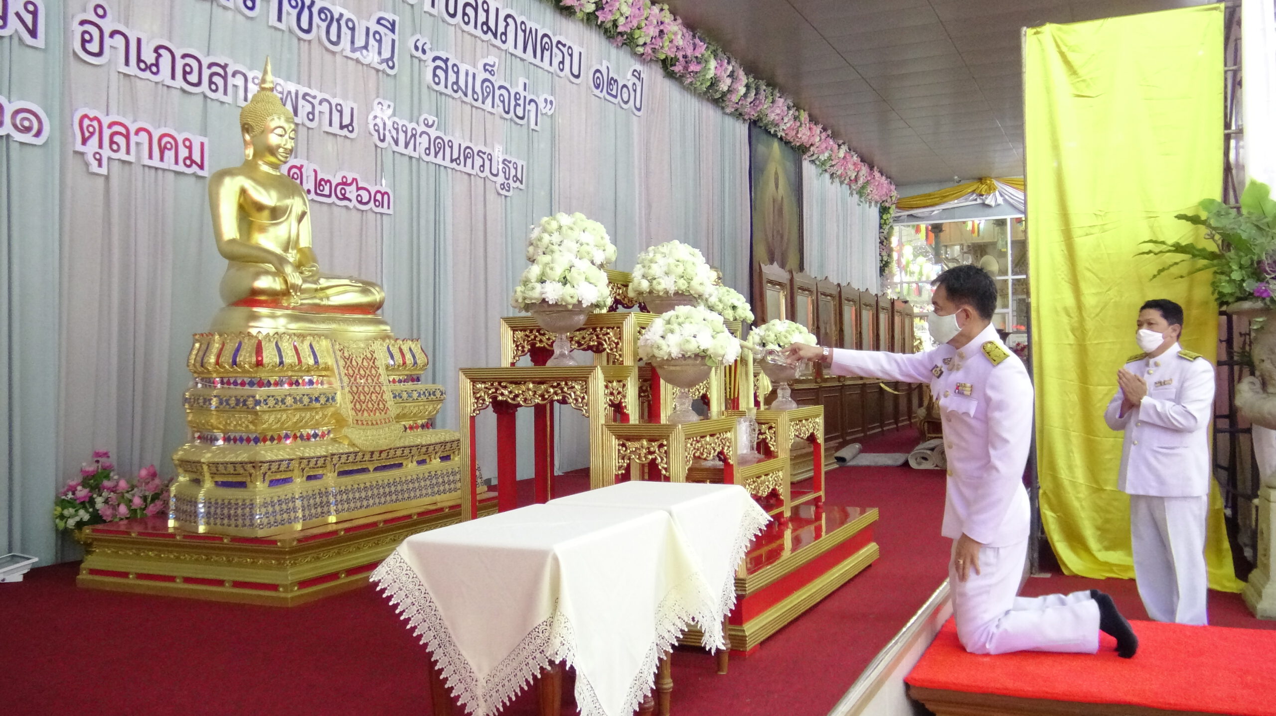 อำเภอสามพรานจัดพิธีบำเพ็ญกุศลน้อมรำลึก 120 ปี “สมเด็จย่า”