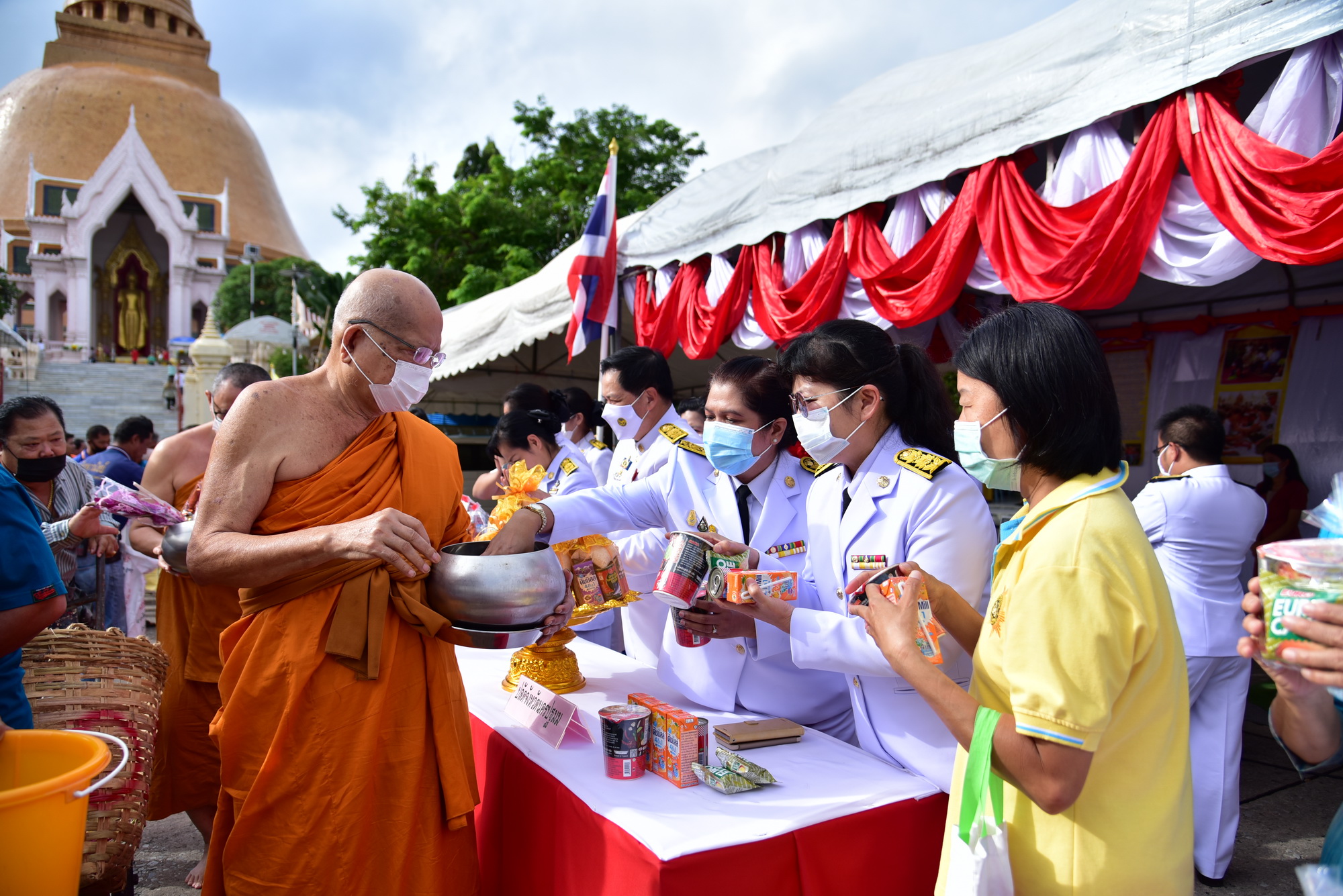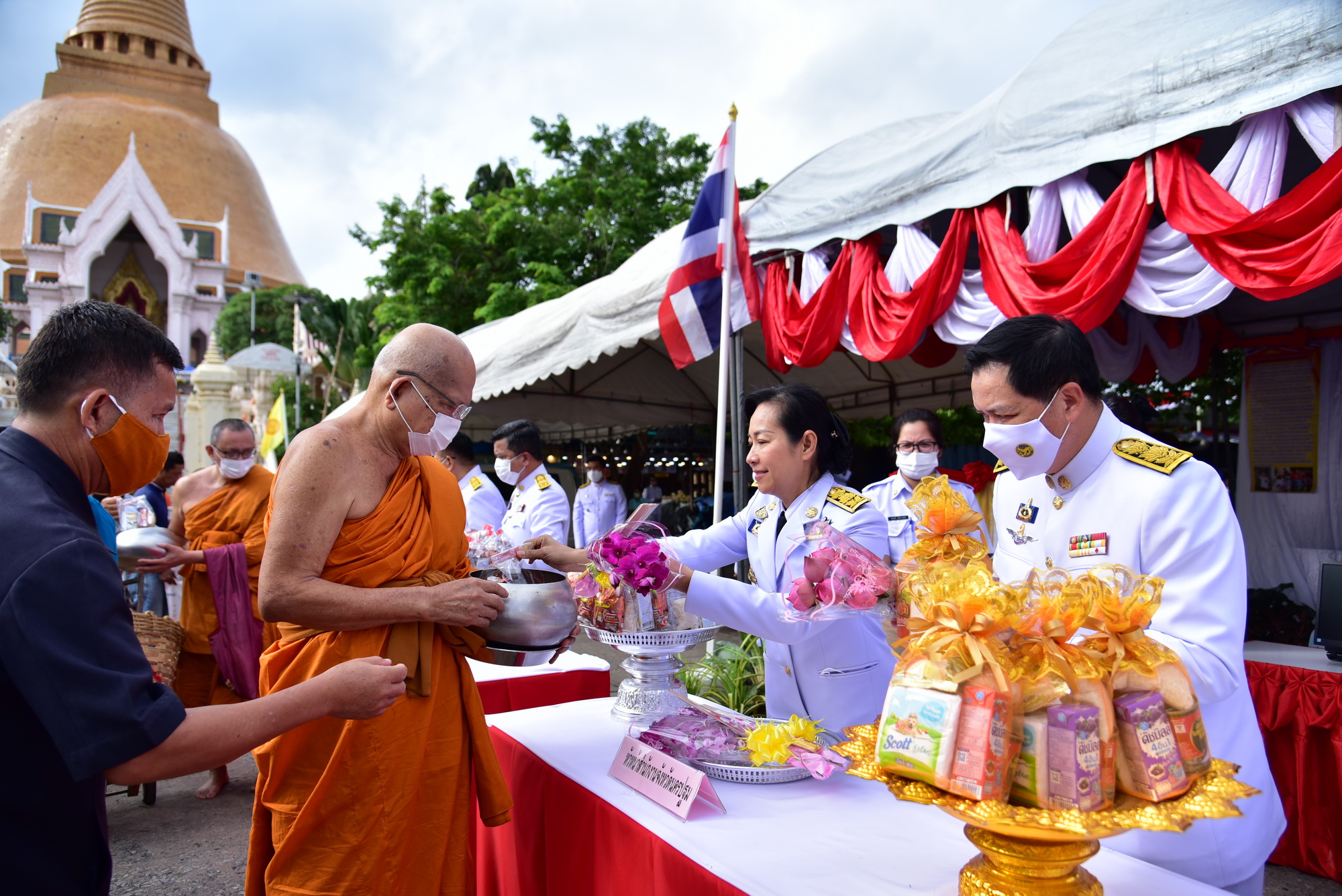 ผู้ว่าราชการจังหวัดนครปฐม นำพสกนิกรทุกหมู่เหล่า ร่วมพิธีทำบุญตักบาตรถวายพระราชกุศล เนื่องในวันคล้ายวันพระราชสมภพครบ 120 ปี สมเด็จพระศรีนครินทราบรมราชชนนี 21 ตุลาคม 2563