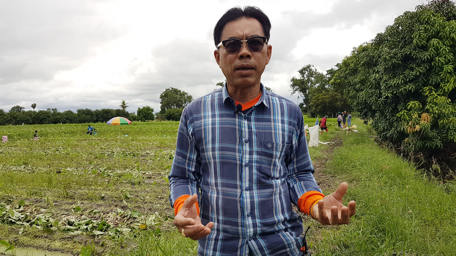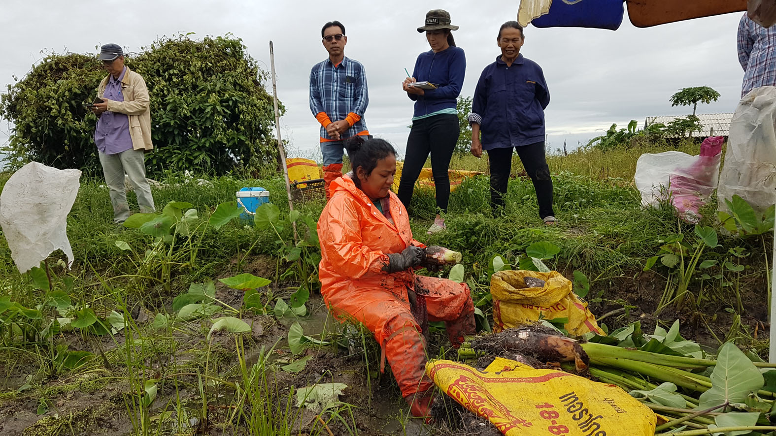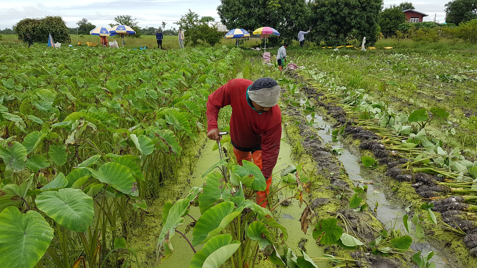 ที่บ้านหนองโรง ต.หนองผักนาก อ.สามชุก จ.สุพรรณบุรี ผู้สื่อข่าวได้รับการเปิดเผยจาก สิบตำรวจเอกทศพล ยิ้มยวน (จ่าดม) ข้าราชการบำนาญ ว่าตนได้ลาออกจากราชการมานานหลายปีแล้วหันมาประกอบอาชีพทำนาที่ผ่านมาได้รับผลกระทบจากภัยธรรมชาติ ภัยแล้ง แมลงศัตรูพืชเพลี้ยกระโดดกัดกินต้นข้าวทำให้ประสบปัญหาขาดทุนค่าปุ๋ยค่ายา จนต้องหันไปประกอบอาชีพเพิ่มคือเลี้ยงโคขุน ซึ่งอาชีพเลี้ยงโคขุนของ จ่าดม นั้นสามารถสร้างรายได้ในระดับหนึ่ง นอกจากทำนา เลี้ยงโคขุนแล้ว จ่าดม ไม่ยอมแพ้ต่อภัยธรรมชาติพยายามพลิกชีวิตสู้วิกฤติภัยแล้งโดยหันมาปลูกเผือก ซึ่งเป็นพืชใช้น้ำน้อยเป็นอาชีพเสริม ในช่วงภัยแล้งสามารถสร้างรายได้เป็นกอบเป็นกำ