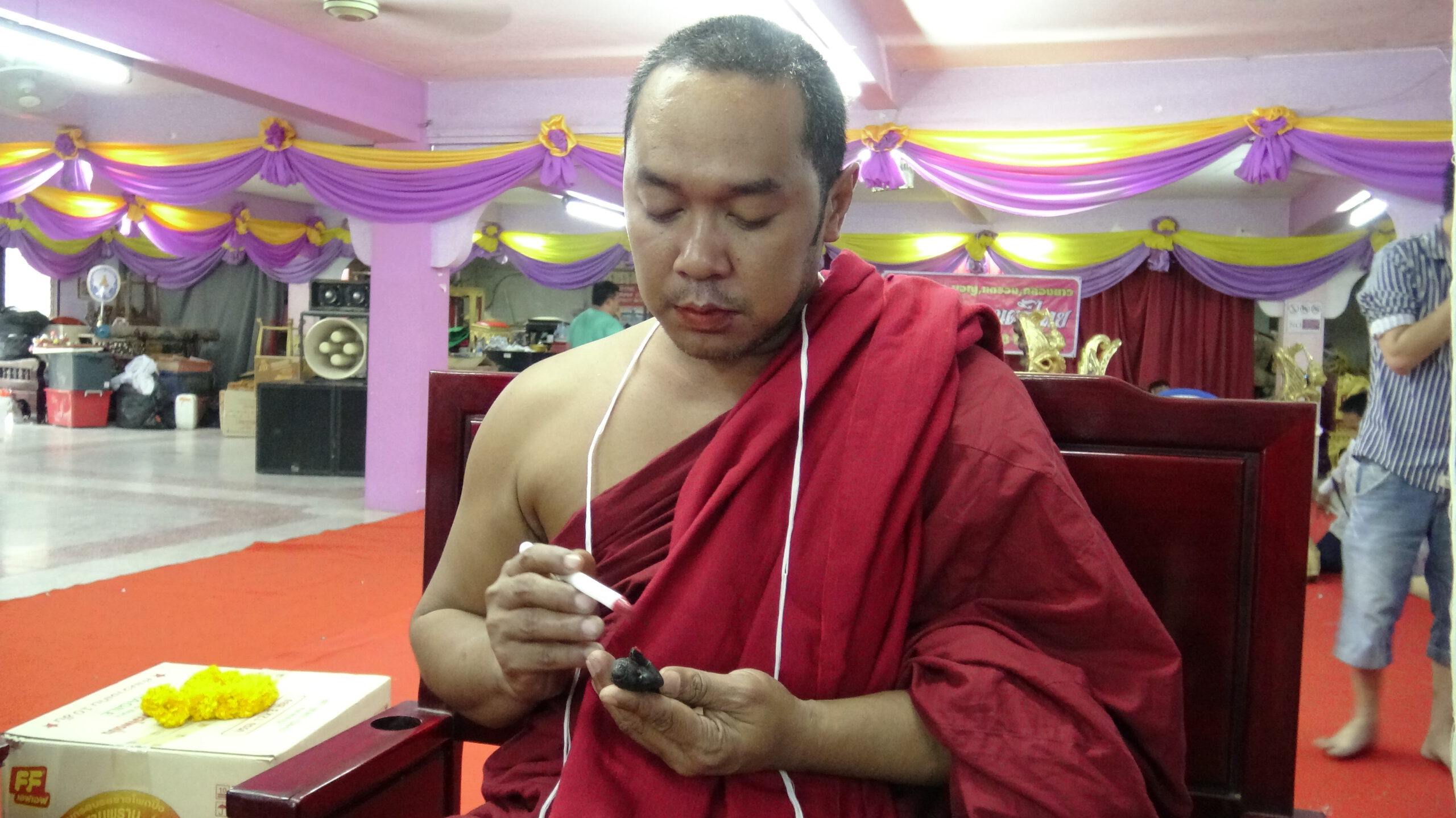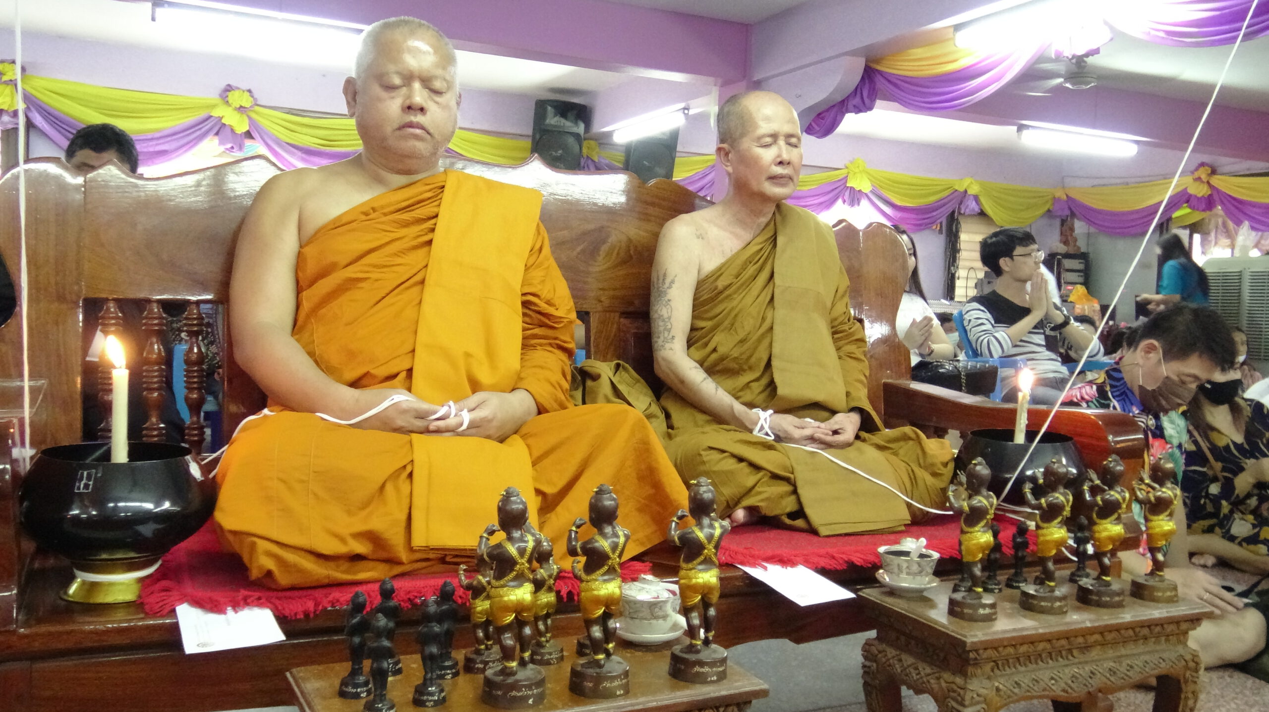 พระครูยติธรรมานุยุต หรือหลวงพ่อแป๊ะ เจ้าอาวาสวัดสว่างอารมณ์ ได้จัดพิธีพุทธาเทวาภิเษก ปลุกเสกไอ้ไข่สามนครวัดสว่างอารมณ์ กุมารทองน้องเก้าเลิฟเลิฟสามสิบล้าน กริ่งพระเงินพระทองขึ้น โดยนิมนต์พระเกจิชื่อดังนั่งอธิษฐานจิต อาทิพระครูสิริปุญญาภิวัฒน์ เจ้าคณะอำเภอนครชัยศรี เจ้าอาวาสวัดสำโรง พระครูโสภิตวิริยาภรณ์ (หลวงพ่ออิฏฐ์) เจ้าคณะตำบลอัมพวา เจ้าอาวาสวัดจุฬามณี หลวงพ่อกำไร วัดโคกเขมา พระราชพัฒนโสภณ หลวงพ่อเณร วัดทุ่งเศรษฐี พระครูปฐมวราจารย์ (หลวงพ่ออวยพร)วัดดอนยายหอมฤาษีเณร ธาตุพุทธคุณ จ.พระนครศรีอยุธยา และอาจารย์สักจากหลายสำนัก ร่วมอธิฐานจิต