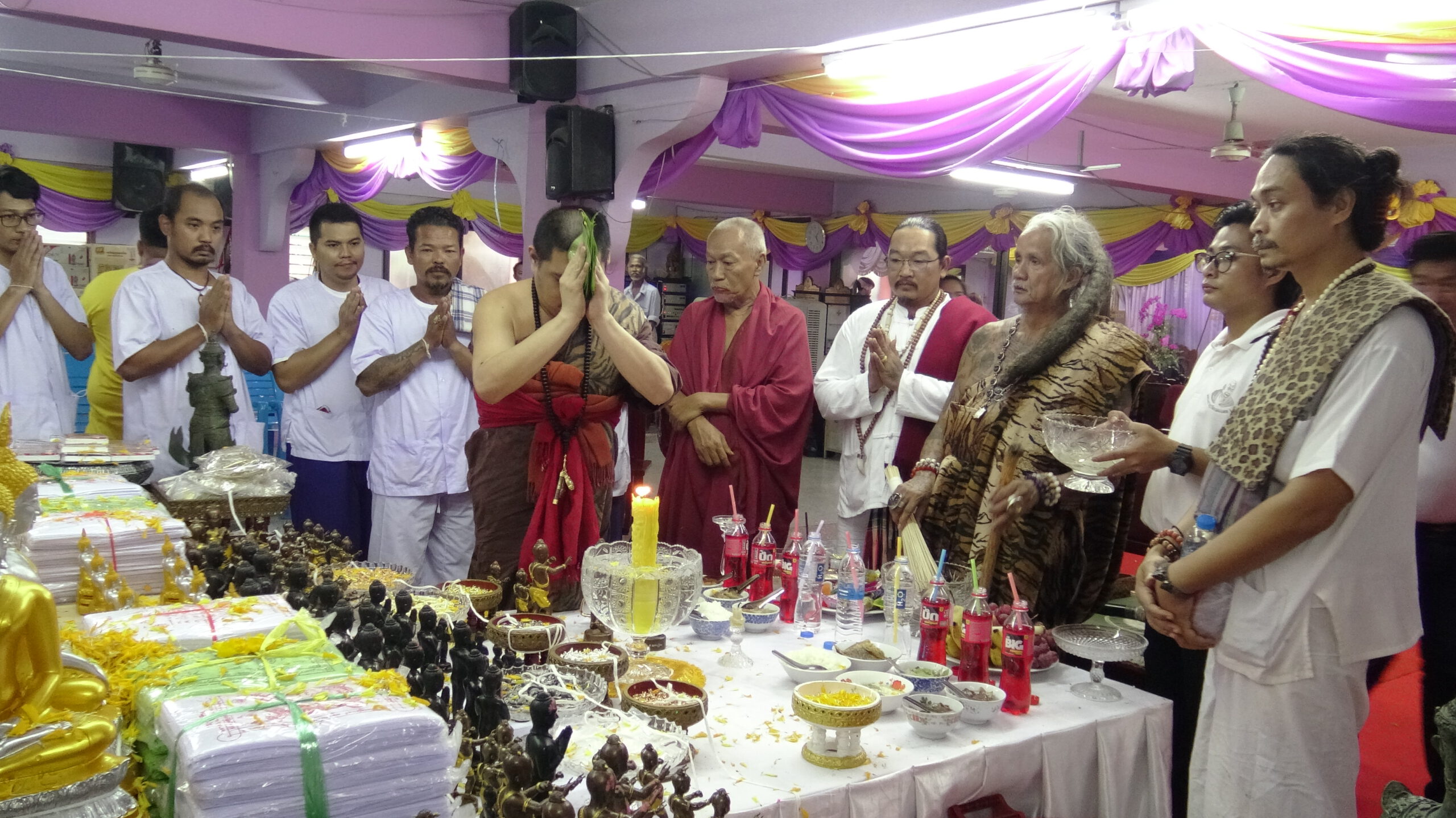 ในการประกอบพิธีครั้งนี้รวม 3 ศาสตร์เข้าด้วยกันทั้ง พุทธ พราหมณ์ และฤาษี เพื่อให้เกิดความเข้มขลัง ก่อนที่จะนำออกให้สาธุชนผู้ศรัทธา เช่าบูชา และมีสาธุชนจำนวนมากเข้าร่วมในพิธี หลังเสร็จสิ้นพิธี หลวงพ่อแป๊ะได้แจกเหรียญไอ้ไข่สามนครที่ผ่านพิธีปลุกเสกแล้วให้กับผู้เข้าร่วมพิธีทุกคนฟรี เพื่อเป็นสิริมงคลอีกด้วย