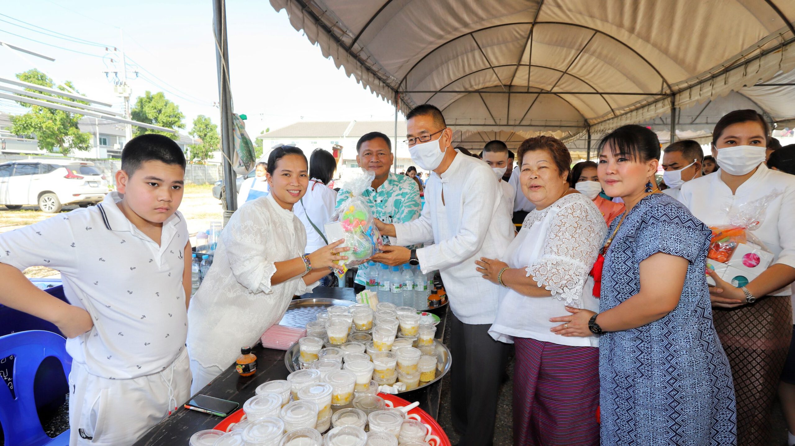 จากนั้นนายชัยวัฒน์ ชื่นโกสุม ผู้ว่าราชการจังหวัดปทุมธานี ได้นำสอนเด็กนักเรียนในการกราบพระแบบเบญจางคประดิษฐ์โดยเด็กนักเรียนได้ทดลองทำและสามารถทำได้ดีและร่วมแจกของจากพระมงคลวโรปการ ที่ปรึกษาเจ้าคณะจังหวัดปทุมธานี เจ้าอาวาสวัดชินวรารามวรวิหาร ให้กับญาติโยม ศิษยานุศิษย์ ที่มาร่วมโรงทานในการทอดกฐินสามัคคี เพื่อรวบรวมจตุปัจจัยเป็นทุน ในการปฏิสังขรณ์ บูรณะวัดป่า(ร้าง)ในครั้งนี้ โดยประชาชนที่มาร่วมงานต่างดีใจที่ผู้ว่าราชการจังหวัดปทุมธานีเดินมาร่วมงานและนำของมามอบให้ ต่างแห่ถ่ายภาพและเซลฟี่ผู้ว่าเก็บไว้เป็นที่ระลึก โดยนายชัยวัฒน์ ชื่นโกสุม ผู้ว่าราชการจังหวัดปทุมธานี ได้ขอบคุณประชาชนที่มาช่วยงานในการออกโรงทานในครั้งนี้และร่วมอนุโมทนาสาธุ อิ่มบุญกันไปทั่วหน้า