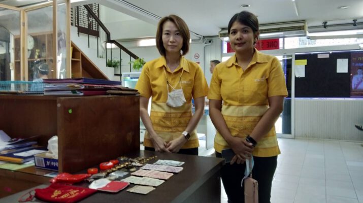 จากการสอบถาม นางนิสามณี ดีจงเจริญ อายุ 42 ปี นักกายภาพบำบัดชำนาญการ พร้อมนางสาว นุสรา เปี่ยมเพิ่มพุง อายุ 28 ปีผู้ช่วยแพทย์แผนจีน ได้เล่าว่า ขณะปฏิบัติหน้าที่ อยู่ในห้องกายภาพบำบัด มีญาติคนไข้ที่นั่งรอรักษาอยู่หน้าห้อง บอกว่า มีคนไข้หรือญาติได้ลืมถุงสีแดงไว้ เจ้าหน้าที่จึงได้ประกาศเพื่อตามหาเจ้าของ แต่ปรากฏว่าไม่มีผู้ใดมารับ จึงตัดสินใจเปิดดูพบว่าภายในถุงมีของมีค่าหลายรายการ จึงนำมาส่งมอบให้กับทางเจ้าหน้าที่ตำรวจเพื่อประกาศตามหาเจ้าของเพื่อมารับทรัพย์สินที่อยู่ในถุงคืนต่อไป../