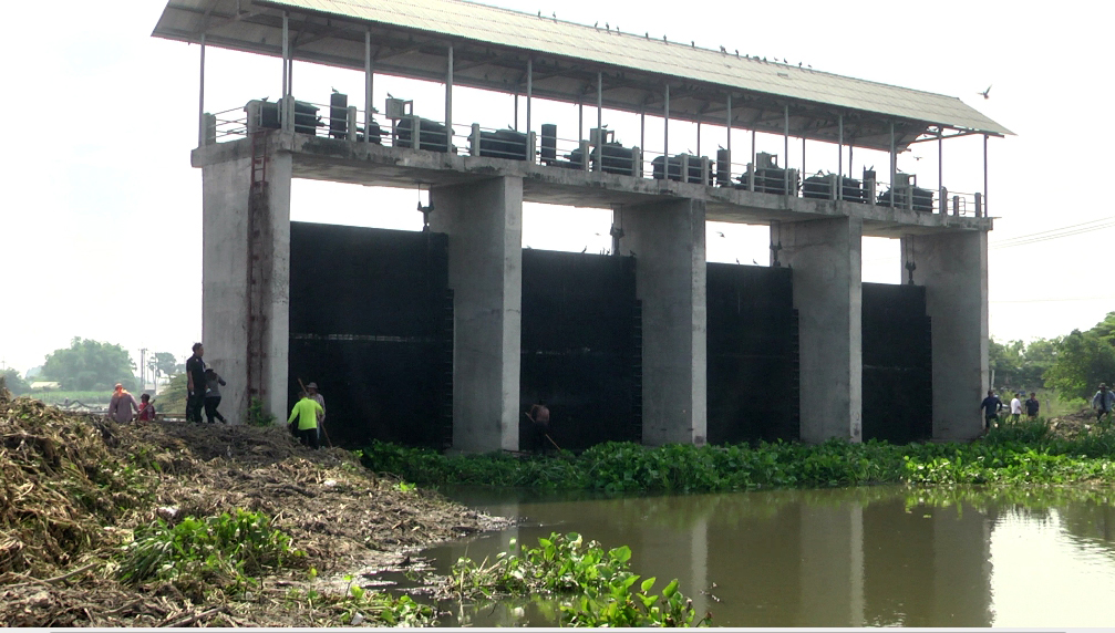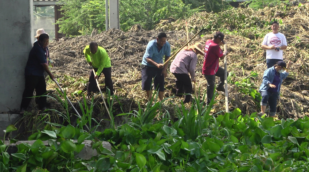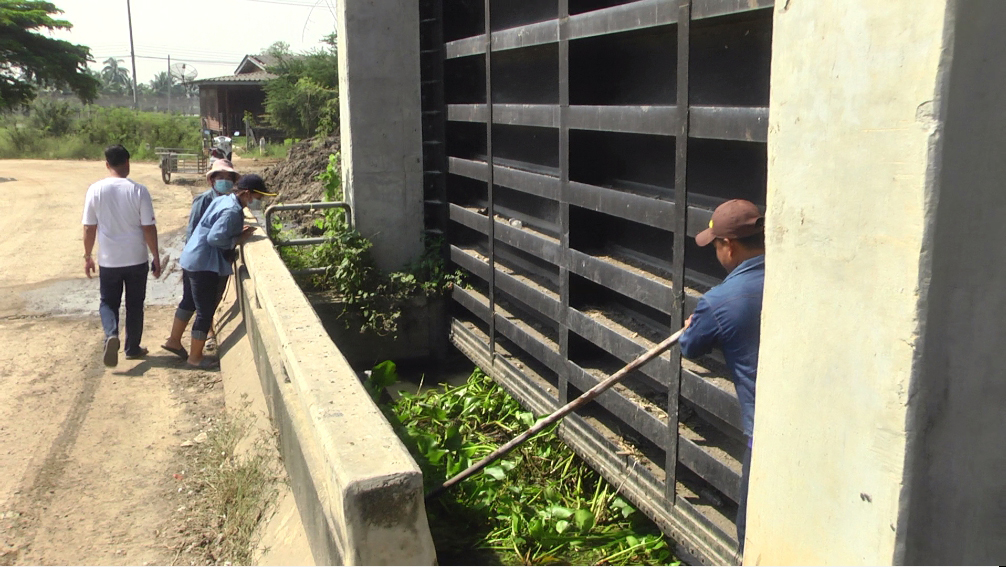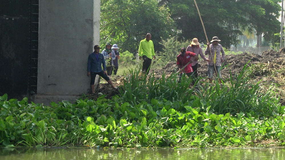 ที่บริเวณประตูระบายน้ำ ร.4 ขวา ต.บางพลับ อ.สองพี่น้อง นายปิยพจน์ เกียรติชูสกุล กำนันตำบลบางเลน นายภูวนารถ จารุภูมิก นายก อบต.ต้นตาล นายสมหวัง โพธิ์ทอง กำนันตำบลบางพลับ นายสุวรรณ สุริย์แสง กำนันตำบลบางตะเคียน และชาวบ้านจำนวนหนึ่งได้ช่วยกันนำผักชวาและวัชพืช ที่ขึ้นอย่างหนาแน่นออกจากบริเวณหน้าประตูระบายน้ำ เพื่อช่วยเปิดทางน้ำให้ไหลได้สะดวกมากยิ่งขึ้น