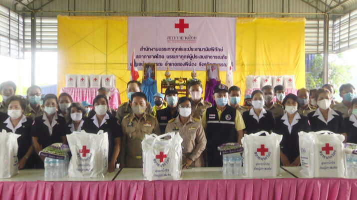 สุพรรณบุรี สภากาชาดไทยมอบชุดธารน้ำใจบรรเทาทุกข์ผู้ประสบอุทกภัย