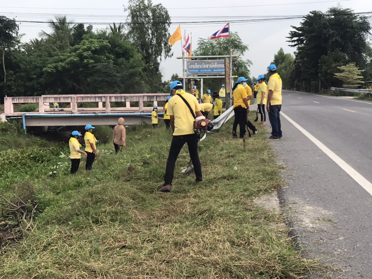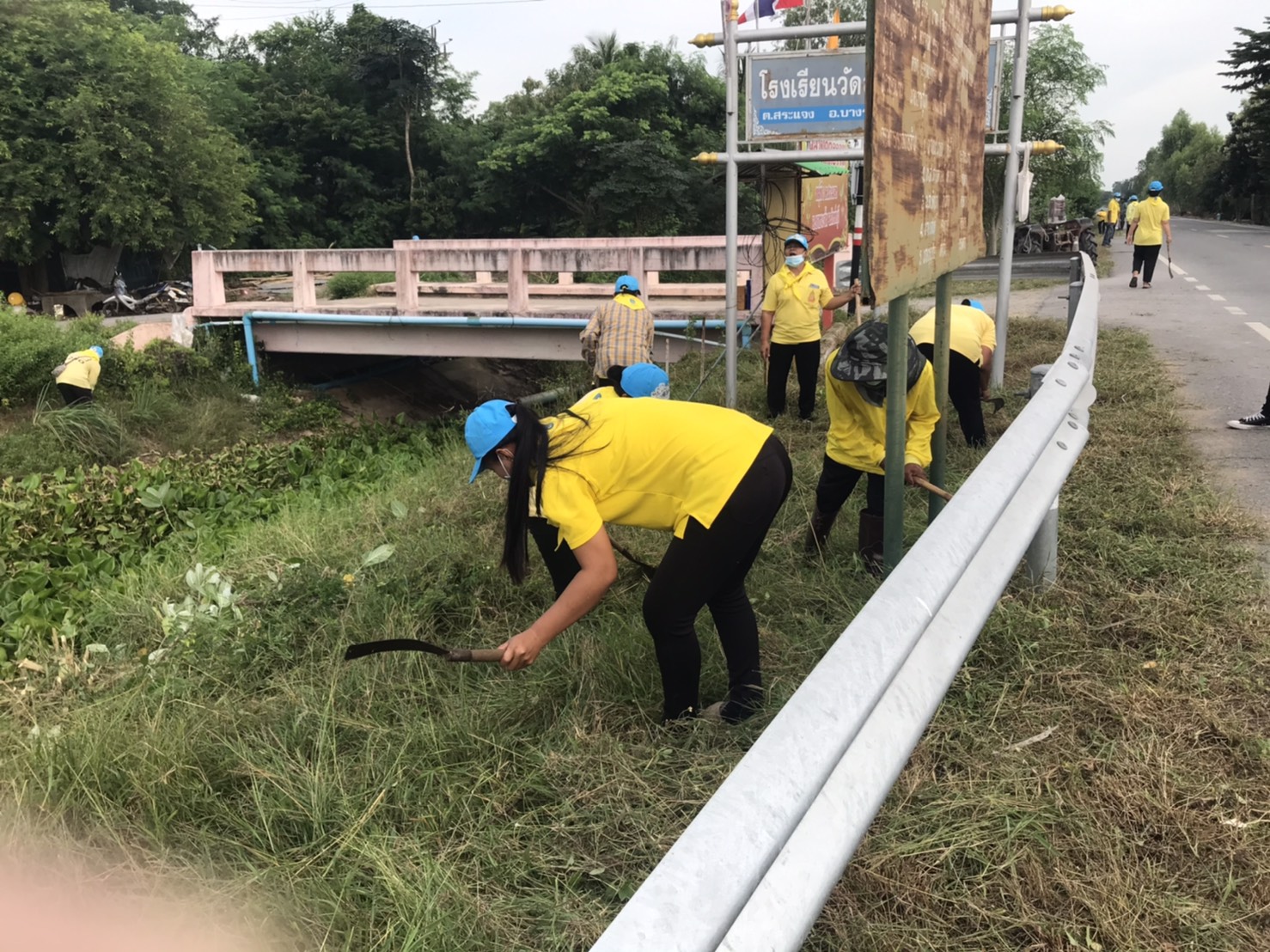 นายเจริญศักดิ์ อินวกูล กำนันตำบลสระแจง พร้อมทั้งผู้ใหญ่บ้าน ฯลฯ ทุกหมู่บ้านในพื้นที่ตำบลสระแจง ร่วมกับจิตอาสาพระราชทานตำบลสระแจง สมาชิก อส.และประชาชนทั่วไปในพื้นที่ รวม ๖๓ คน ร่วมกันปรับภูมิทัศน์โดย ตัดหญ้า ตัดแต่งกิ่งไม้ กวาด/เก็บขยะ บริเวณริมถนนสาธารณะทางเข้าวัดและโรงเรียนวัดสามัคคีธรรม ม.๓ ต.สระแจง อ.บางระจัน จ.สิงห์บุรี ระยะทาง ๑,๔๐๐ เมตร