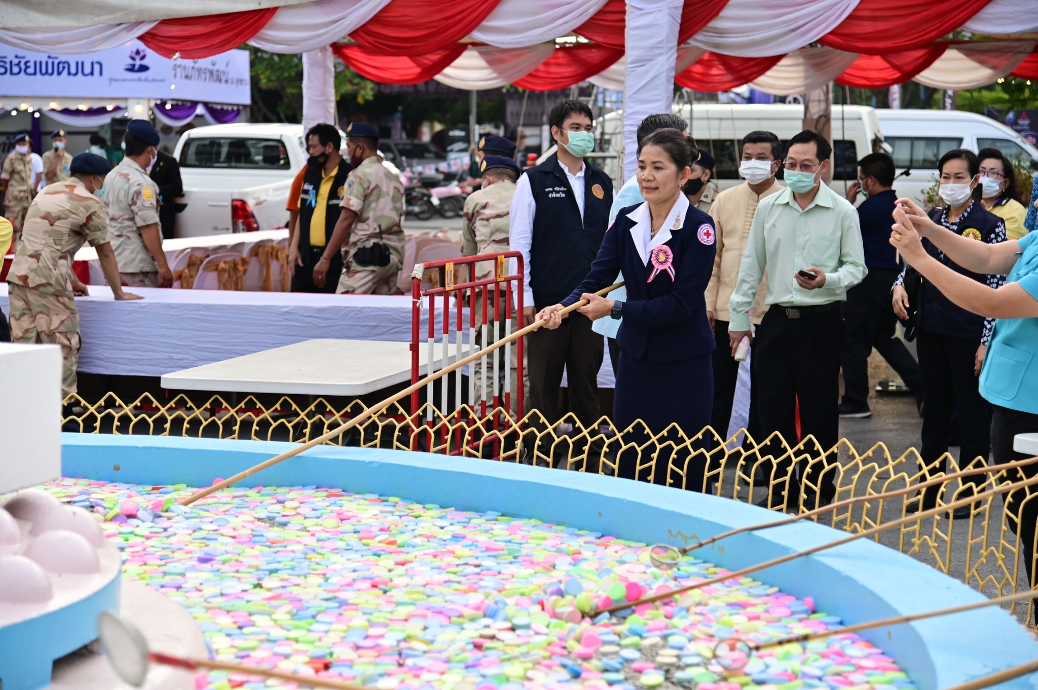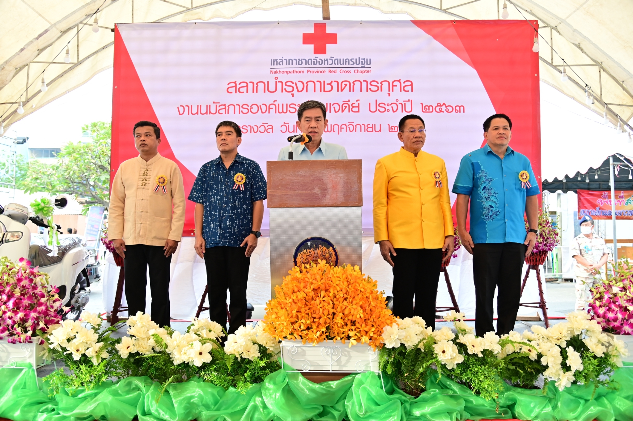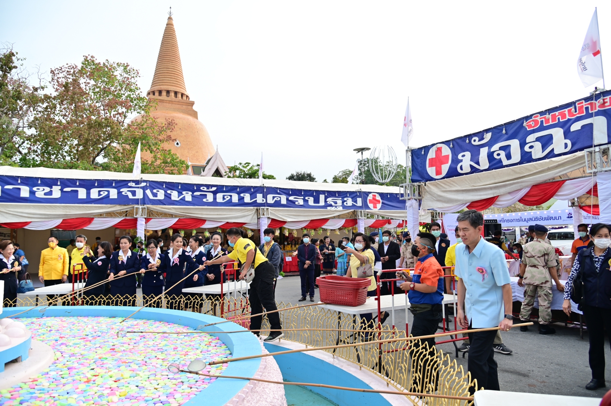 จากนั้น ผู้ว่าราชการจังหวัดนครปฐมได้เป็นประธานเปิดกิจกรรมการออกร้านมัจฉากาชาด และการออกรางวัลสลากบำรุงกาชาดการกุศล ซึ่งจัดขึ้นโดยเหล่ากาชาดจังหวัดนครปฐม เพื่อหารายได้เป็นทุนช่วยเหลือกิจกรรมสาธารณกุศล การบรรเทาทุกข์ผู้ประสบภัย ประสบความเดือดร้อน รวมทั้งผู้ด้อยโอกาสในด้านต่างๆ โดยการจำหน่ายสลากมัจฉากาชาด ใบละ 20 บาท เพื่อลุ้นรางวัลใหญ่ ได้แก่ รถจักรยานยนต์ รถจักรยาน ตู้เย็น หม้อหุงข้าว และสิ่งของอื่นๆ อีกมากมาย นอกจากนี้ยังมีการออกร้านค้าที่หลากหลายรอบองค์พระปฐมเจดีย์ การจำหน่ายผลิตภัณฑ์ท้องถิ่น และผลิตผลทางด้านการเกษตรอีกเป็นจำนวนมาก