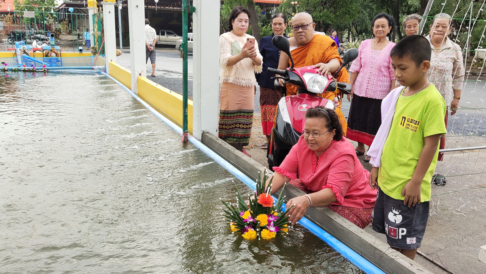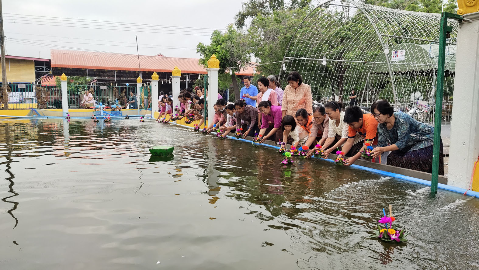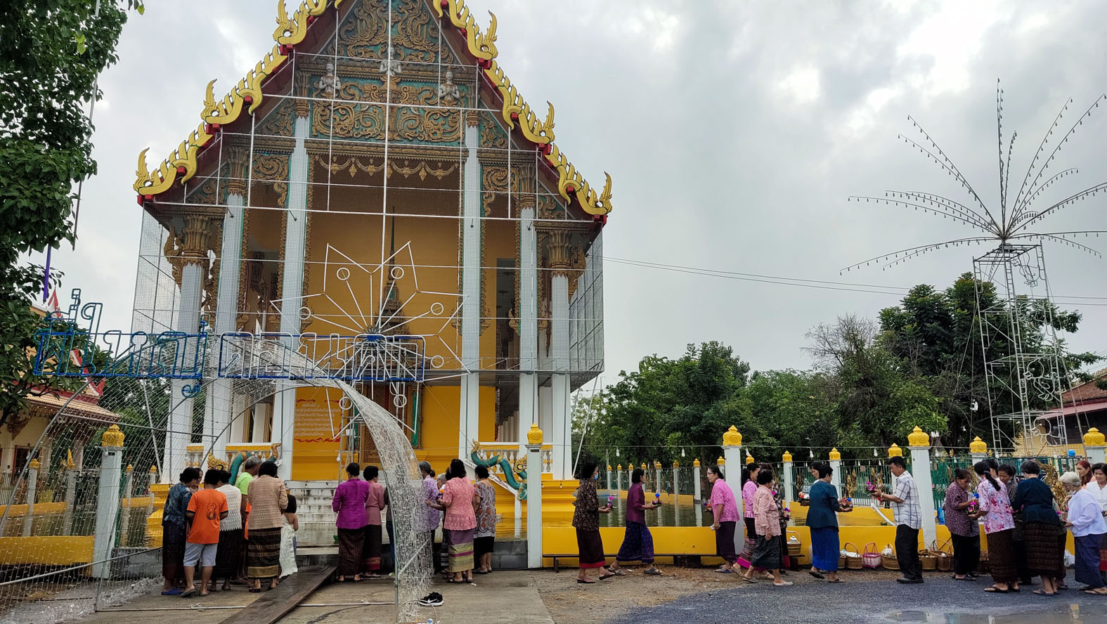 สุพรรณบุรี. ชาวบ้านดอนคาเข้าวัดทำบุญสืบสานประเพณีลอยกระทงรอบโบสถ์