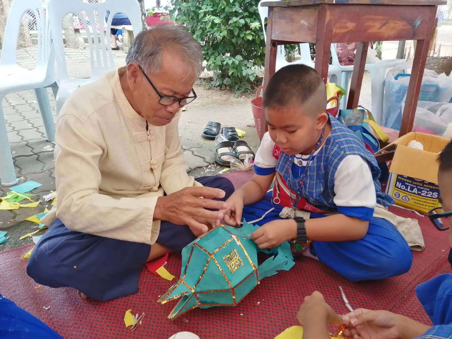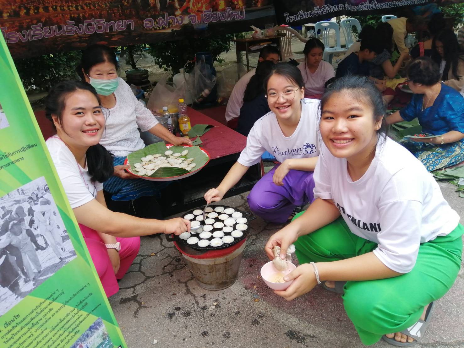 เพื่อฟื้นฟูสิ่งเก่าๆที่มีประโยชน์ถ่ายทอดถึงลูกหลานเพื่อให้ยังคงอยู่อย่างถาวรกับสังคมในยุคติจิตอล ในวันนี้ก็ได้จัดเข้าทำการอบรมฝึกทำจริงกับเด็กๆนักเรียนนำเอาตัวแทนผู้สูงอายุตำบลสันทรายไปให้ความรู้แก่นักเรียนโรงเรียนรังษีวิทยา “วิถีชีวิตลุ่มน้ำฝางและบูรณาการยี่เป็ง” มีการทำขนมครก ข้าวเปี่ยง ข้าวต้มหัวงอก น้ำสมุนไพรตะไคร้ใบเตย น้ำอัญชัน-มะนาว และน้ำลำใย นอกจากนี้ให้ความรู้การทำโคมไฟล้านนา นักเรียนสนใจมาฝึกปฏิบัติขอบคุณฝ่ายบริหาร คณะครูและนักเรียนที่ให้ความสำคัญวิถีชีวิตชุมชน ขอบคุณนายเทศมนตรีเทศบาลตำบลสันทรายที่สนับสนุนกิจกรรมผู้สูงอายุตามโครงการสร้างงานสร้างอาชีพ