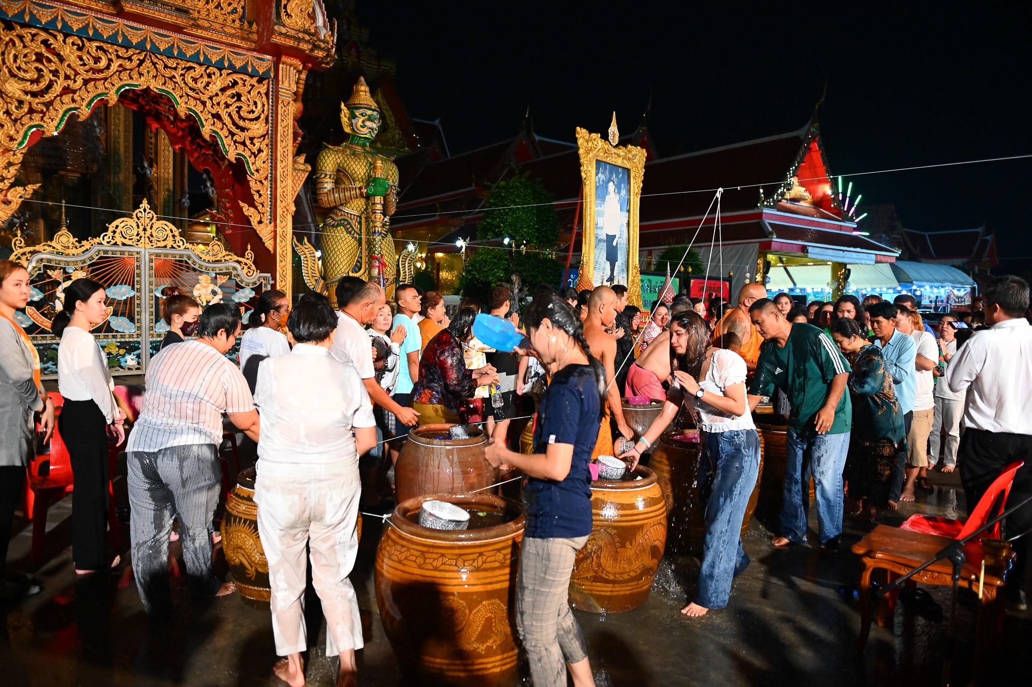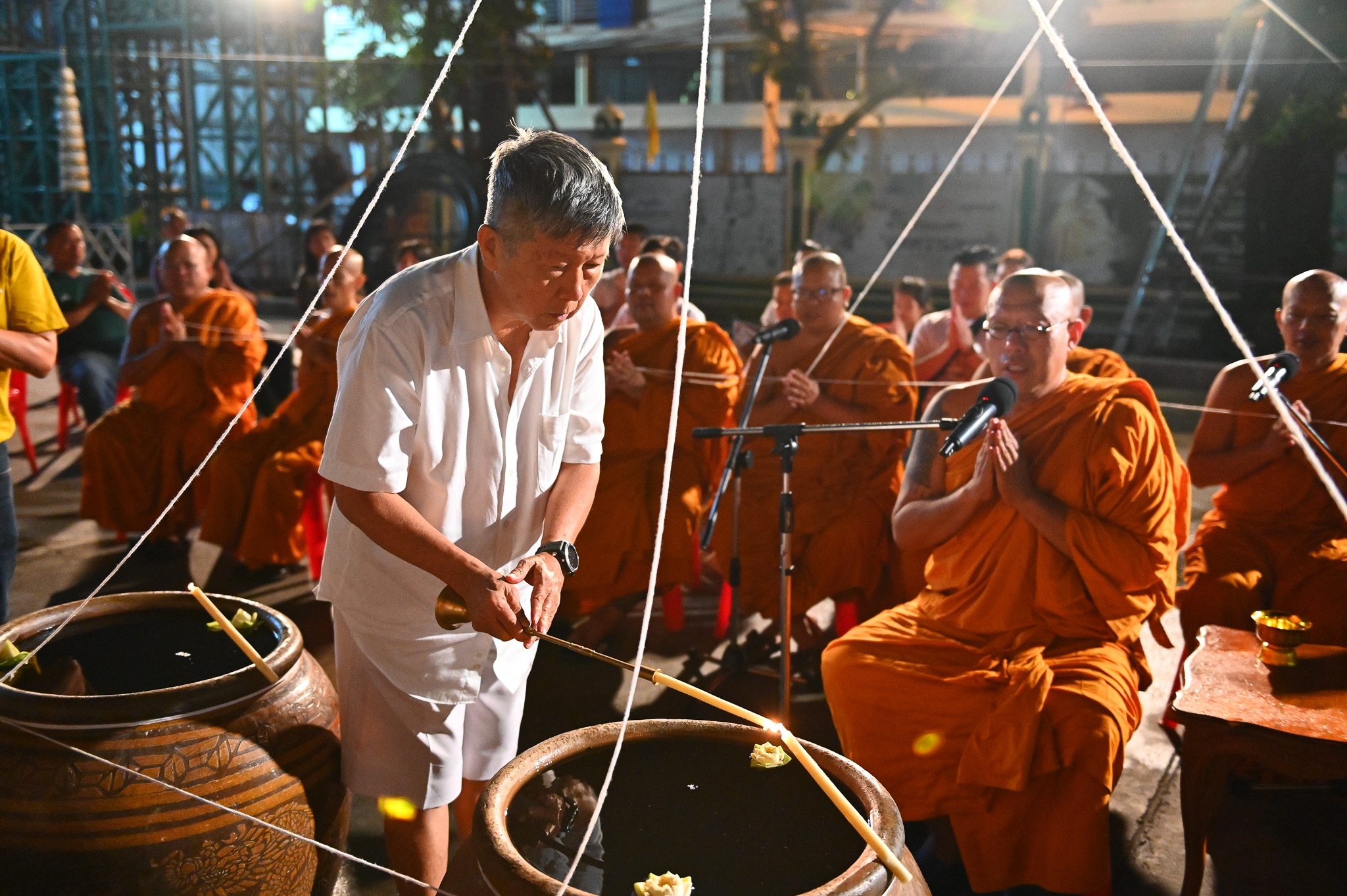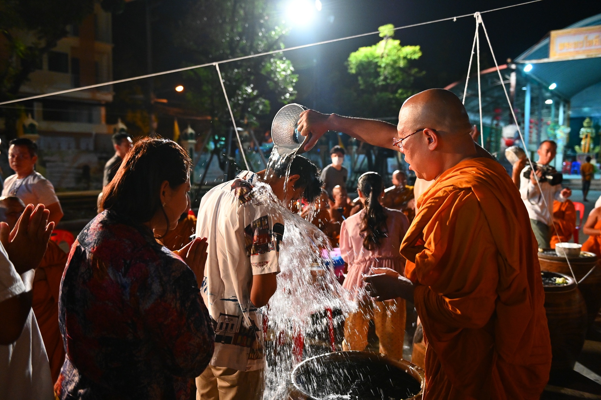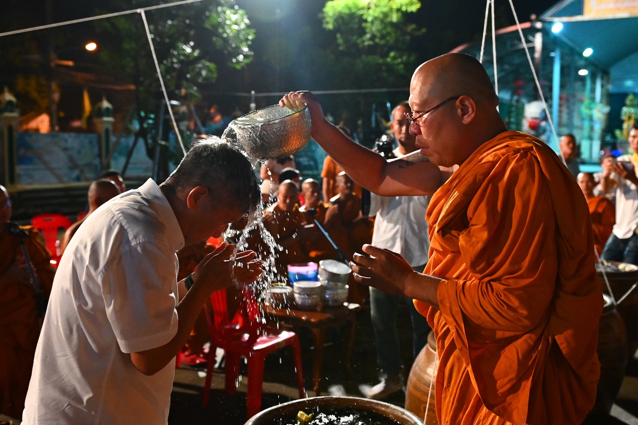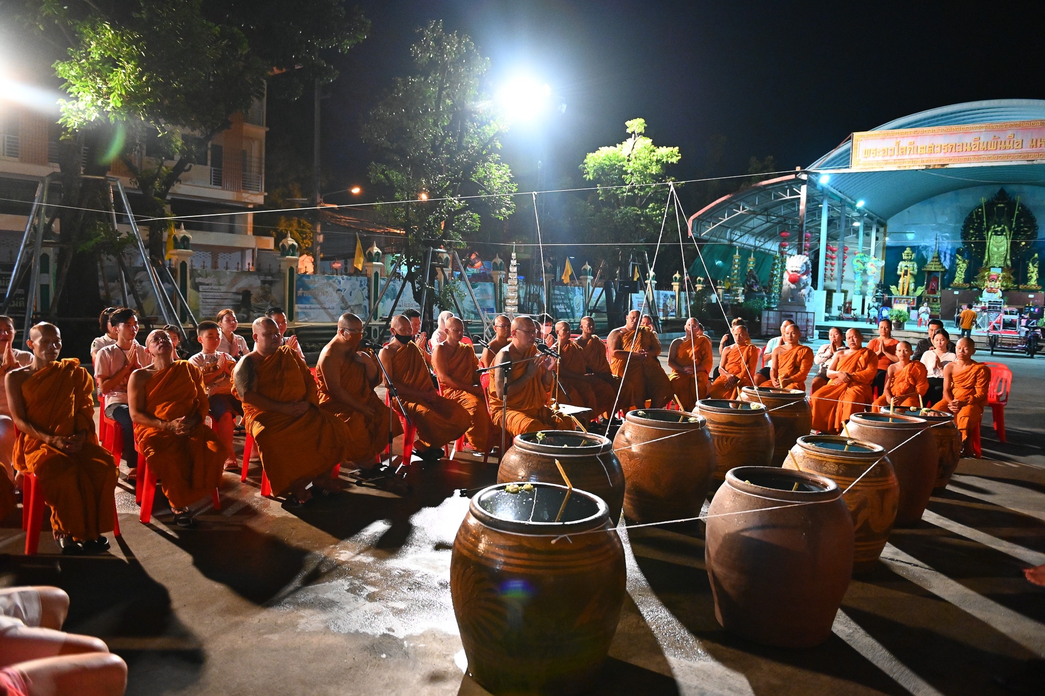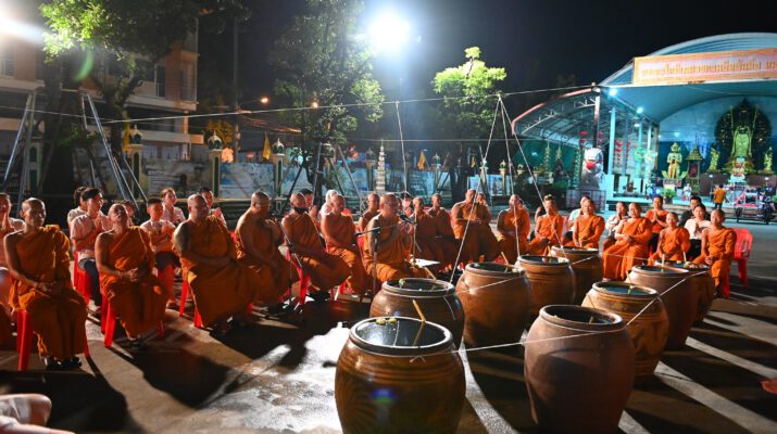 นครปฐม วัดไผ่ล้อมจัดพิธีเจริญพระพุทธมนต์และอาบน้ำมนต์คืนวันเพ็ญ ตำรับหลวงพ่อพูล