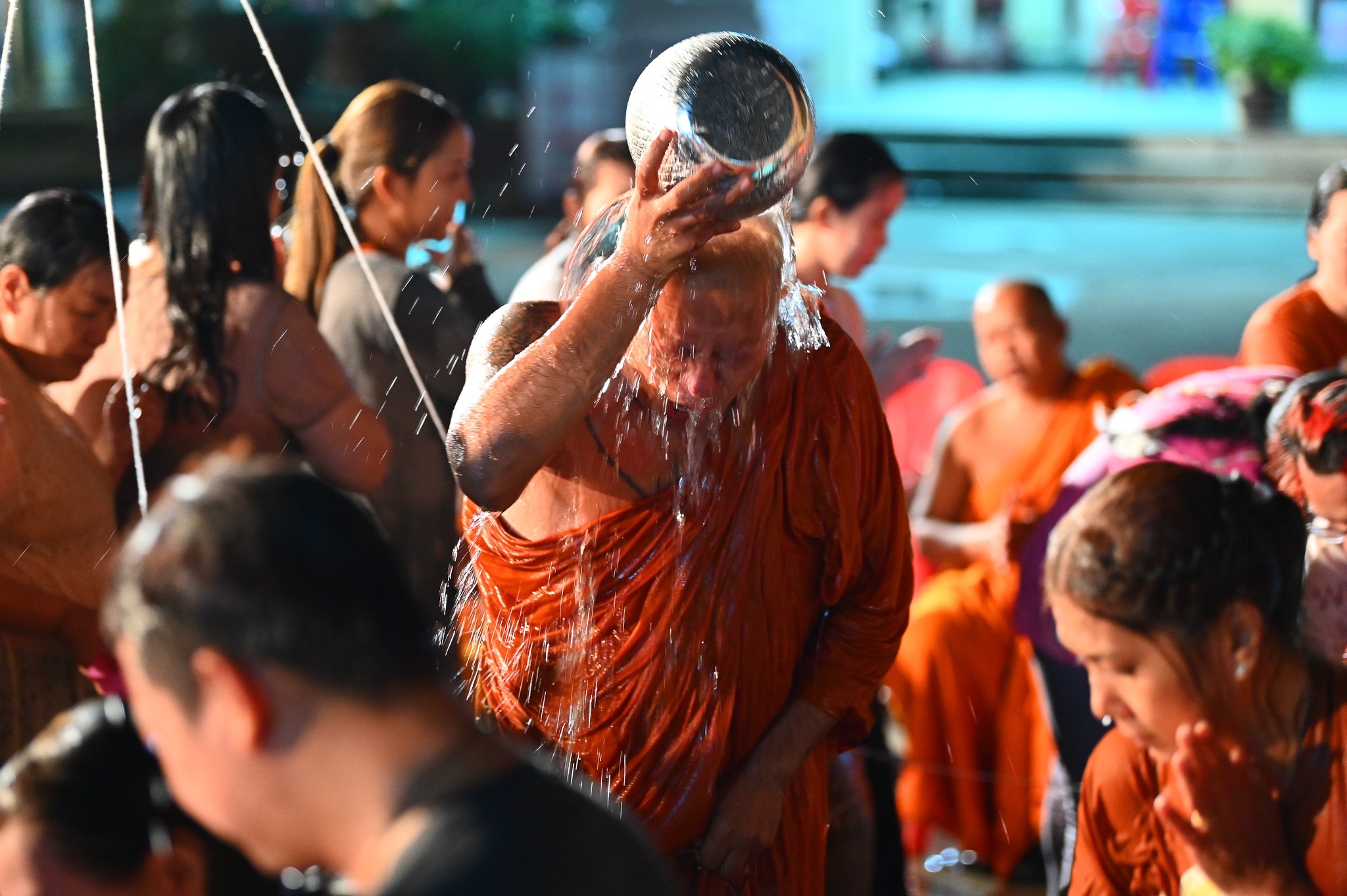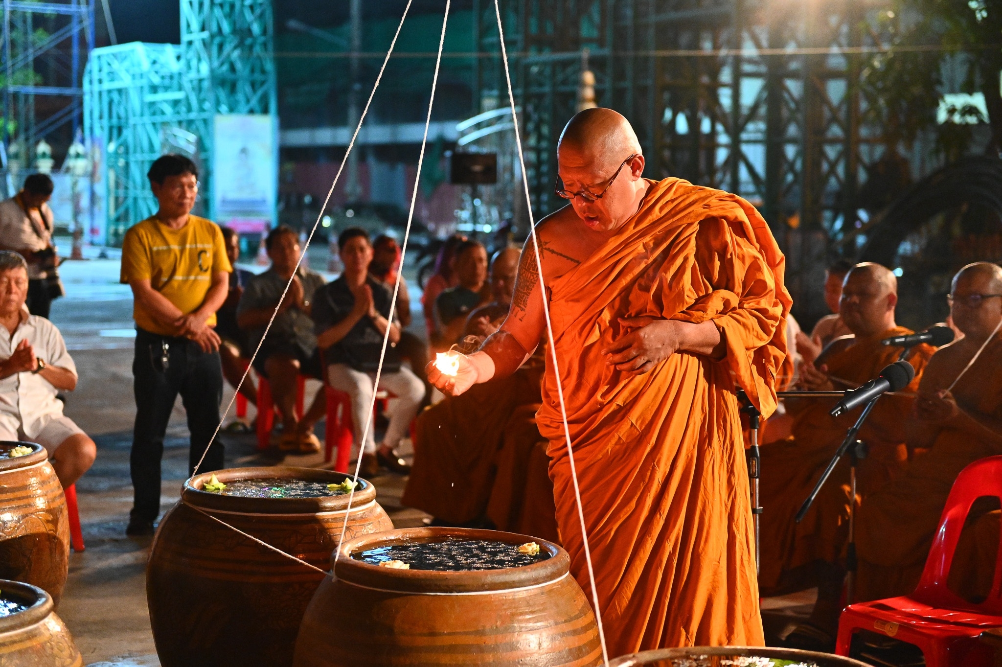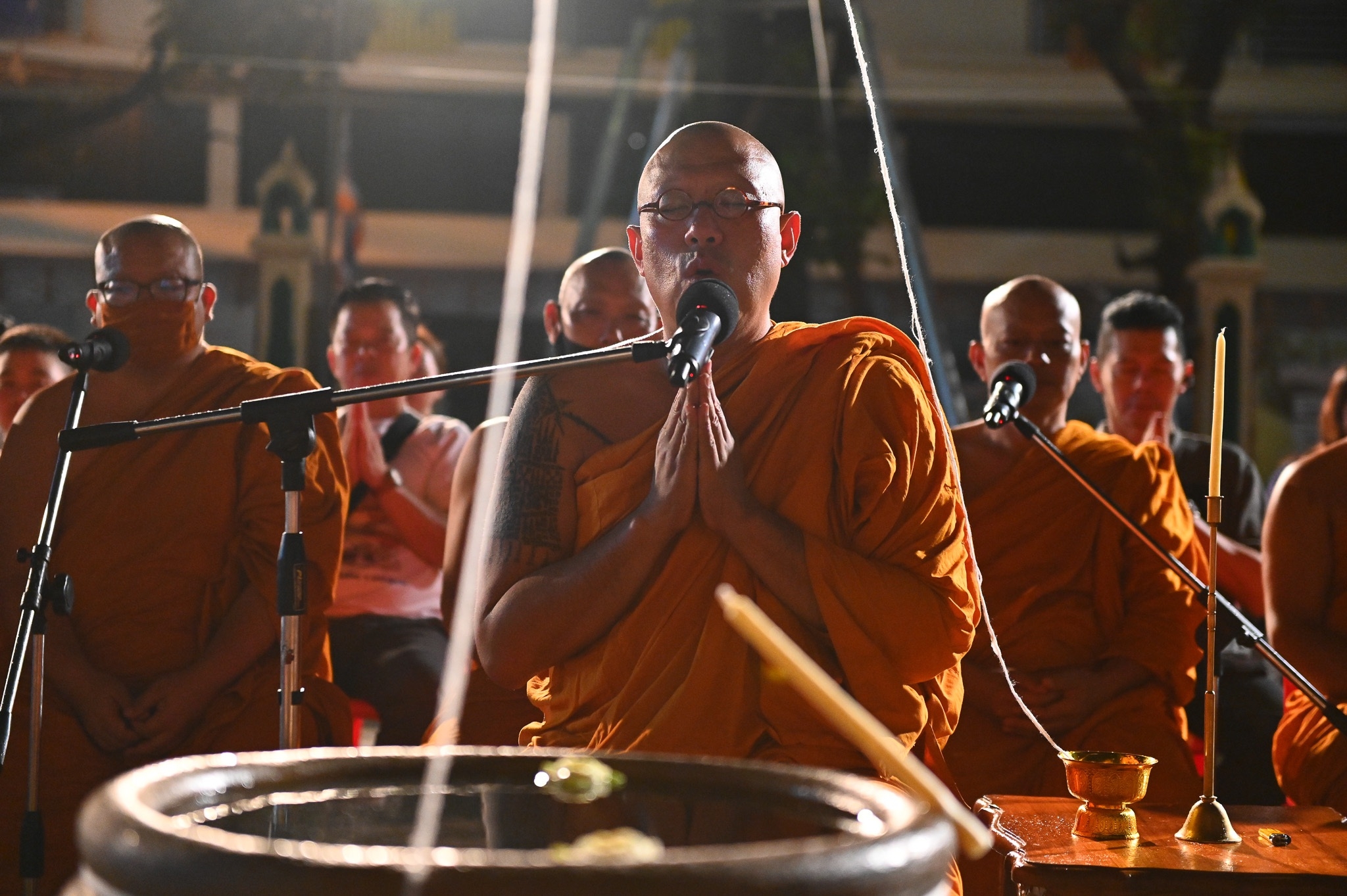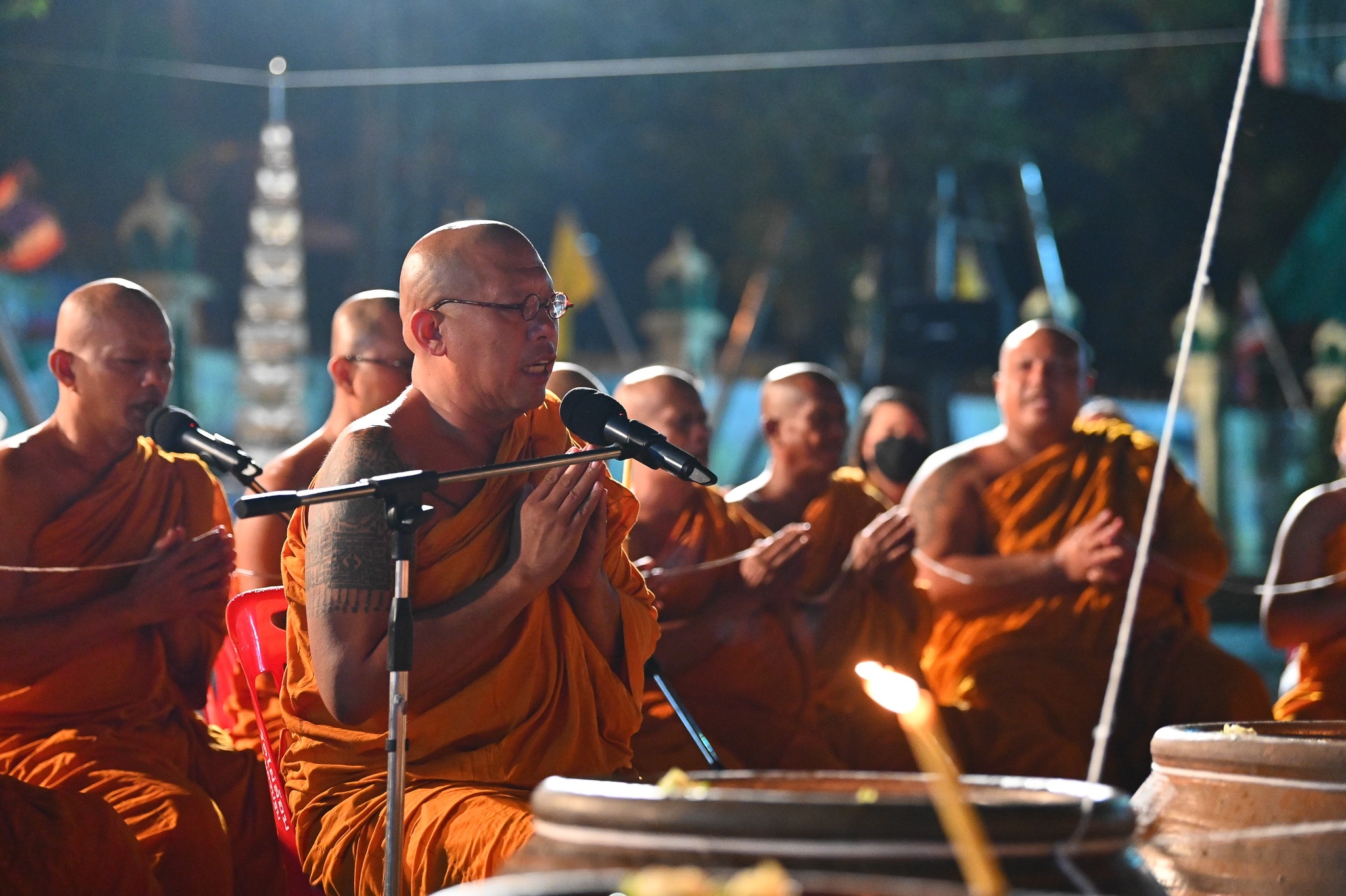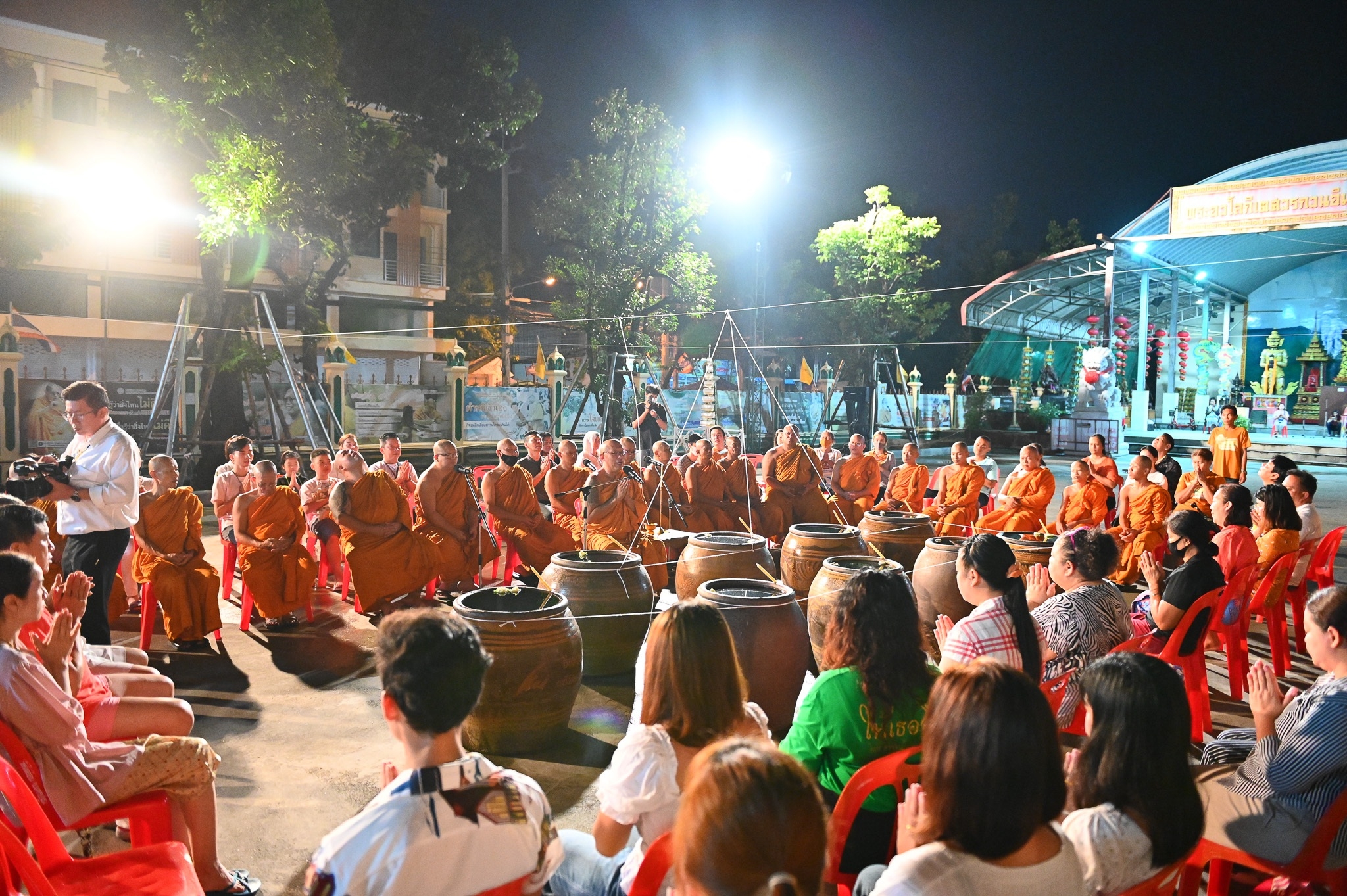 นครปฐม วัดไผ่ล้อมจัดพิธีเจริญพระพุทธมนต์และอาบน้ำมนต์คืนวันเพ็ญ ตำรับหลวงพ่อพูล