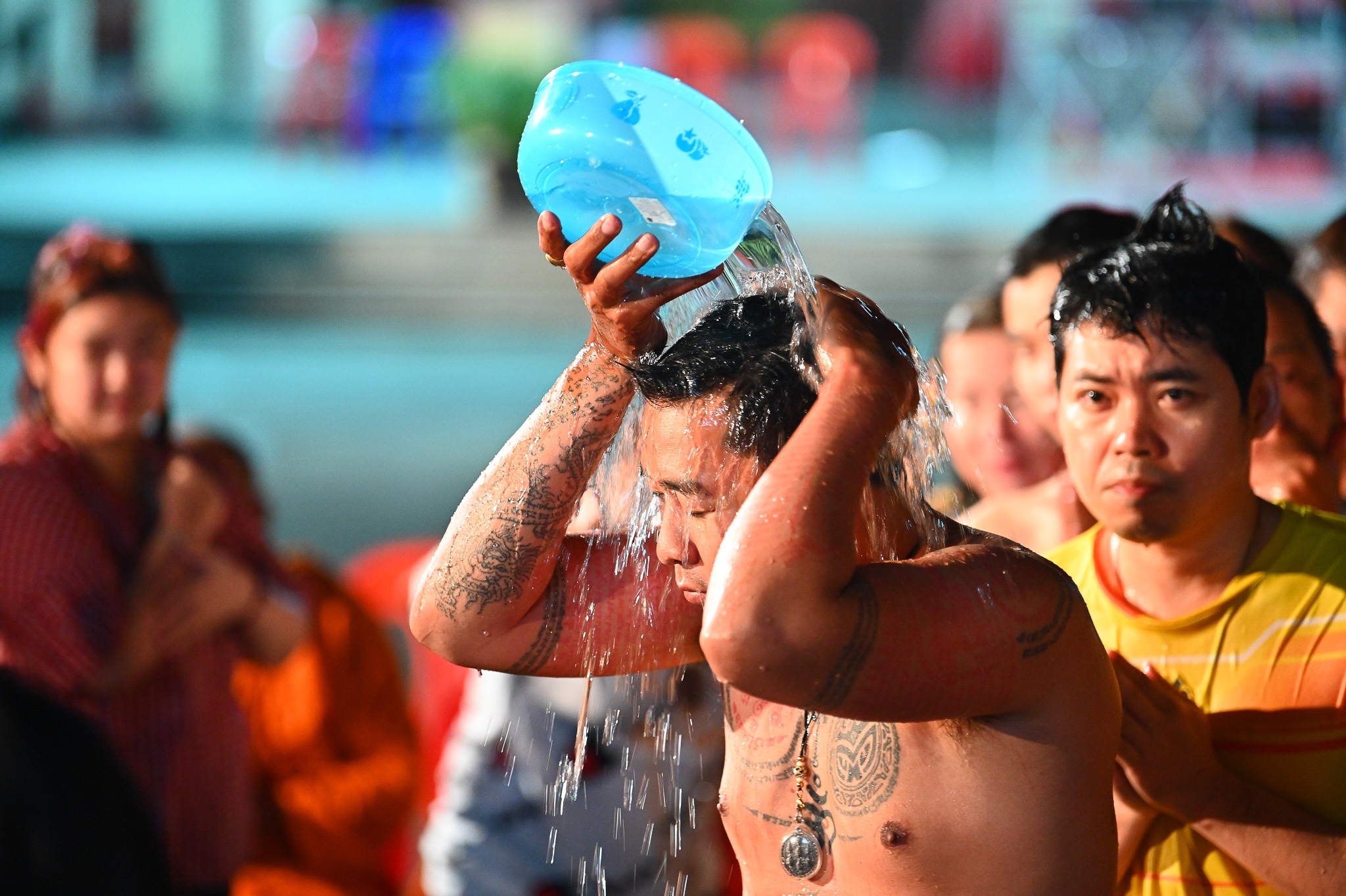 พระครูปลัดสิทธิวัฒน์ หลวงพี่น้ำฝน เจ้าอาวาสวัดไผ่ล้อม เป็นองค์ประธานฝ่ายสงฆ์ นำคณะพระสงฆ์วัดไผ่ล้อมสวดเจริญพระพุทธมนต์ เพื่อน้อมสักการะ พระพุทธคุณ พระธรรมคุณ พระสังฆคุณ ในการสืบสานพิธีโบราณ อาบน้ำมนต์คืนวันเพ็ญ ตำรับหลวงพ่อพูล วัดไผ่ล้อมโดยมีนายสมชาติ สาลีพัฒนา (เฮียเงี๊ยบ) เจ้าของร้านก๋วยเตี๋ยวลูกชิ้นปลานายเงี๊ยบ เป็นประธานฝ่ายฆราวาส จุดธูปเทียนบูชาพระรัตนตรัยและสิ่งศักดิ์สิทธิ์. และในวันนี้ตรงกับวันขึ้น 15 ค่ำ เดือน 12 เป็นวันลอยกระทง เป็นวันที่สายน้ำทุกแห่ง จะมีประชาชนพากันไปวัดที่ตั้งอยู่ริมแม่น้ำ ลำคลองและตามที่มีท่าน้ำ หรือไปตามริมแม่น้ำ เพื่อลอยกระทงบูชา ขอขมาพระแม่คงคา ตามขนบธรรมเนียมประเพณีและวัฒนธรรมที่สืบสานกันมาแต่โบราณ โดยเชื่อว่าวันเพ็ญเดือน 12 นี้เป็นวันที่พระจันทร์จะเต็มดวงสว่างไสว สวยงาม จะขอพรทำการสิ่งใดๆ เพื่อเป็นมงคลแก่ชีวิต