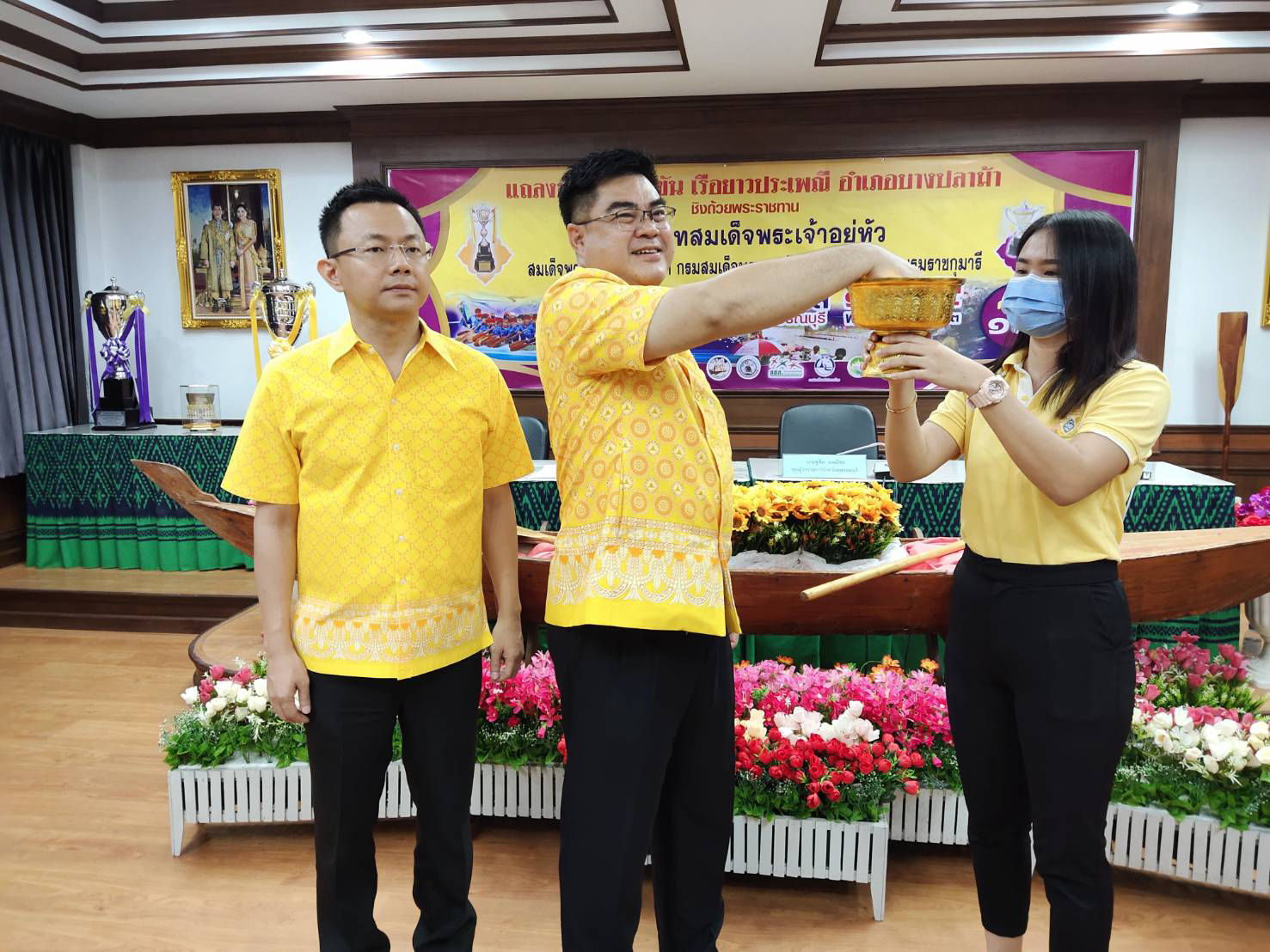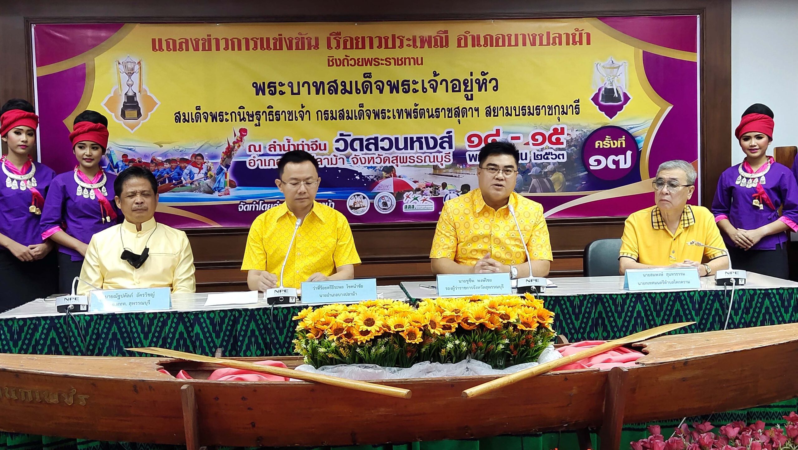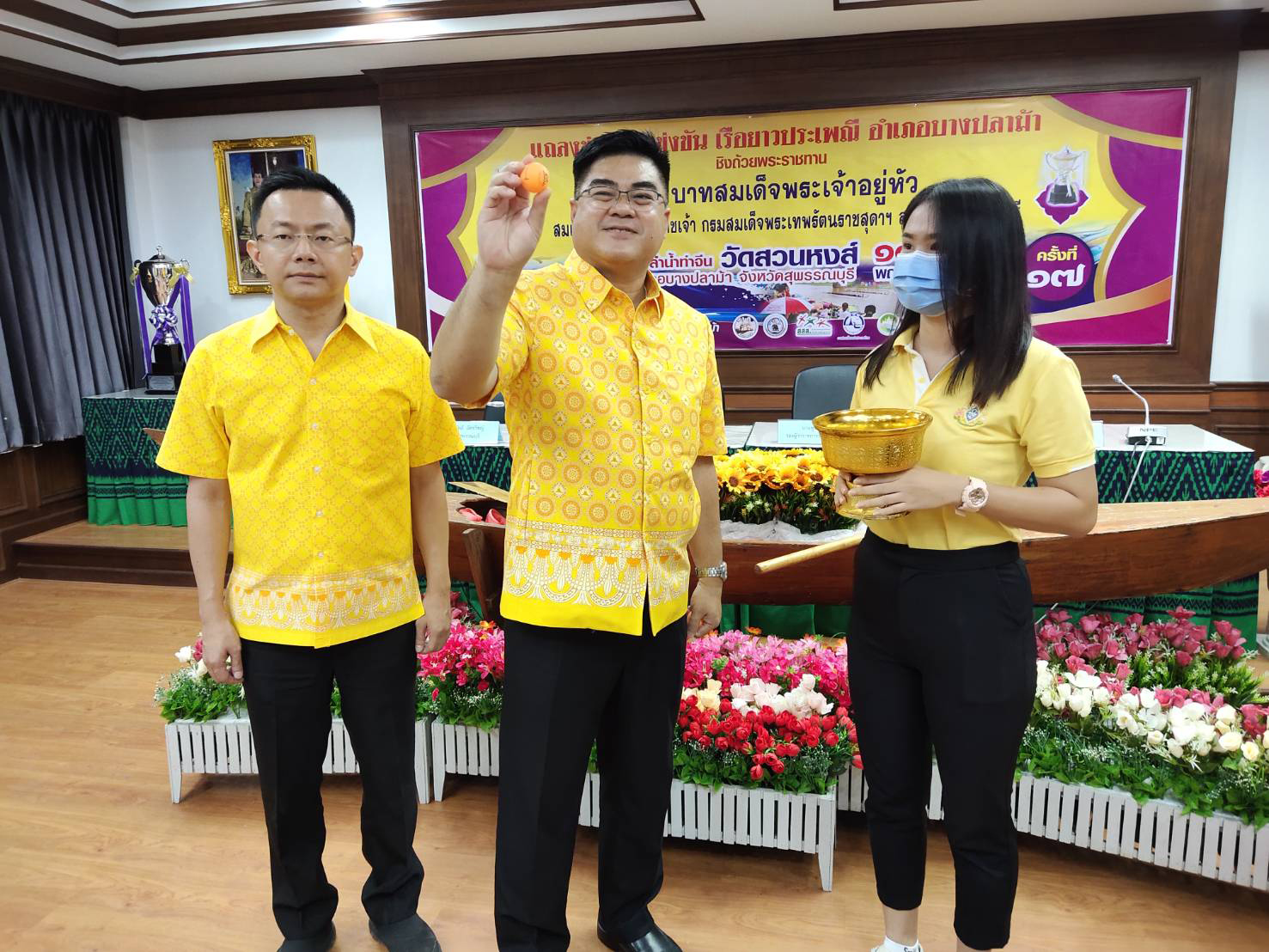 ที่ จ.สุพรรณบุรี นายชูชีพ พงษ์ไชย รอง ผวจ.สุพรรณบุรี ว่าที่ ร.ต.ธีระพล โชคนำชัย นายอำเภอบางปลาม้า นายณัฐปคัลภ์ อัครวิชญ์ ผอ.ททท.สำนักงานสุพรรณบุรี นางสาววิมลฤดี ฟักมณี รอง ผอ.ททท.สำนักงานสุพรรณบุรี ร่วมกันแถลงเตรียมจัดการแข่งขันเรือยาวประเพณี อำเภอบางปลาม้าชิงถ้วยพระราชทานพระบาทสมเด็จพระเจ้าอยู่หัวและสมเด็จพระกนิษฐาธิราชเจ้า กรมสมเด็จพระเทพรัตนราชสุดาฯ สยามบรมราชกุมารี ครั้งที่ 17 ประจำปี พ.ศ. 2563 ในวันเสาร์ที่ 14 และวันอาทิตย์ที่ 15 พฤศจิกายน 2563 ณ บริเวณลำน้ำท่าจีน หน้าวัดสวนหงส์ ตำบลบางปลาม้า อำเภอบางปลาม้า จังหวัดสุพรรณบุรี พร้อมกับได้จับฉลาก เพื่อแบ่งสายในการแข่งขัน