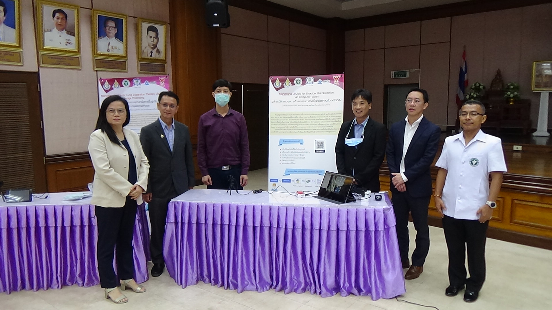 ด้าน รศ.ดร.ธนิต เฉลิมยานนท์ คณบดี คณะวิศวกรรมศาสตร์ มหาวิทยาลัยสงขลานครินทร์ กล่าวเพิ่มเติมว่า คณะวิศวกรรมศาสตร์โดยภาควิชาวิศวกรรมไฟฟ้า ได้ดำเนินการวิจัยโครงการต่อเนื่อง เรื่องการขยายผลระบบติดตามและอุปกรณ์ช่วยเหลือผู้สูงอายุหรือผู้ป่วยในการทำกายภาพบำบัดทางเครือข่ายสื่อสารสำหรับประโยชน์สาธารณะ ซึ่งได้รับทุนวิจัยที่สนับสนุนจาก กทปส. เพื่อนำไปพัฒนาระบบติดตามและอุปกรณ์ช่วยเหลือผู้สูงอายุและผู้ป่วยในการทำกายภาพบำบัดทางเครือข่ายสื่อสารสำหรับประโยชน์สาธารณะ เพื่อสนับสนุนให้เกิดประโยชน์ทั้งในด้านการเรียนการสอนที่ได้รับการรองรับจากสภาวิศวกรในสาขาวิศวกรรมไฟฟ้า และทีมสหวิทยาการที่จะบูรณาการประยุกต์ใช้งานถ่ายทอดเทคโนโลยีให้แก่โรงพยาบาลชุมชน หน่วยงานรัฐ รัฐวิสาหกิจและ ผู้ประกอบการ เพื่อประโยชน์สาธารณะในวงกว้าง โดยทางคณะวิจัยได้ดำเนินการพัฒนาระบบและอุปกรณ์กายภาพบำบัดทั้งหมด 4 ชนิดประกอบด้วย 1.นวัตกรรมบริหารหัวไหล่ ระบบประมวลผลภาพสำหรับการวัดองศาของการเคลื่อนไหวหัวข้อไหล่ เพื่อใช้ในผู้ที่มีปัญหาข้อไหล่ติดหัวไหล่ 2. นวัตกรรมฝึกการขยายปอด ระบบประมวลผลภาพสำหรับติดตามการทำกายภาพบำบัดเพื่อฟื้นฟูปริมาตรปอด 3. นวัตกรรมบริหารกล้ามเนื้อหายใจ ระบบติดตามและอุปกรณ์ช่วยบริหารกล้ามเนื้อหายใจ และ 4. นวัตกรรมบริหารข้อเข่า ระบบติดตามและอุปกรณ์ช่วยบริหารข้อเข่า โดยระบบและอุปกรณ์ทั้งหมดจะทำการเชื่อมต่อเข้าสู่ระบบ Server และ Cloud Server ผ่านเครือข่ายสื่อสารซึ่งเป็นการออกแบบ พัฒนา และผลิตอุปกรณ์ต้นแบบทั้ง 4 ชนิด ให้ได้มาตรฐานสากลตามมาตรฐาน ISO 13485 และ IEC 60601 เป็นประโยชน์ในระดับประเทศต่อไป และยังนำเทคโนโลยีที่ใช้กับการตรวจผู้ป่วยต้องสงสัย โควิด-19 โดยแพทย์สามารถพูดคุยและให้ผู้ป่วยต้องสงสัยใช้อุปกรณ์ทางการแพทย์ ในการตรวจวัดความดัน การเต้นของหัวใจ การสอบถามอาการ เพื่อการวินิจฉัยของแพทย์ได้โดยไม่ต้องเข้าไปตรวจภายในห้องกักตัวอีกด้วย