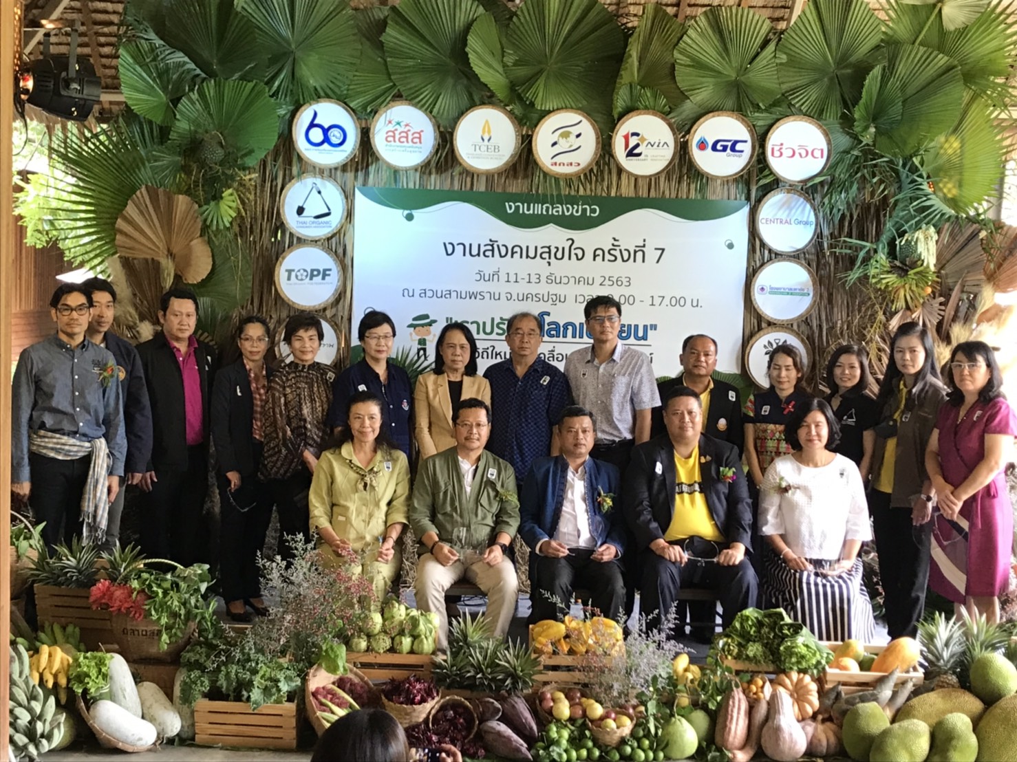 งานสังคมสุขใจครั้งที่ 7 ได้รับความร่วมมือสนับสนุนจากทั้งภาครัฐและเอกชน อาทิ การท่องเที่ยวแห่งประเทศไทย (ททท.) กองทุนสนับสนุนการสร้างเสริมสุขภาพ (สสส.) สำนักงานส่งเสริมการจัดประชุมและนิทรรศการ (สสปน.) สำนักงานคณะกรรมการส่งเสริมวิทยาศาสตร์ วิจัยและนวัตกรรม (สกสว.) สำนักงานนวัตกรรมแห่งชาติ (NIA) บริษัท พีทีที โกลบอล เคมิคอล จำกัด (มหาชน) ชีวจิต บริษัทกลุ่มเซ็นทรัล โรงพยาบาลมหาชัย 2 ส่วนราชการจังหวัดนครปฐม แบรนด์ปฐม และสวนสามพราน