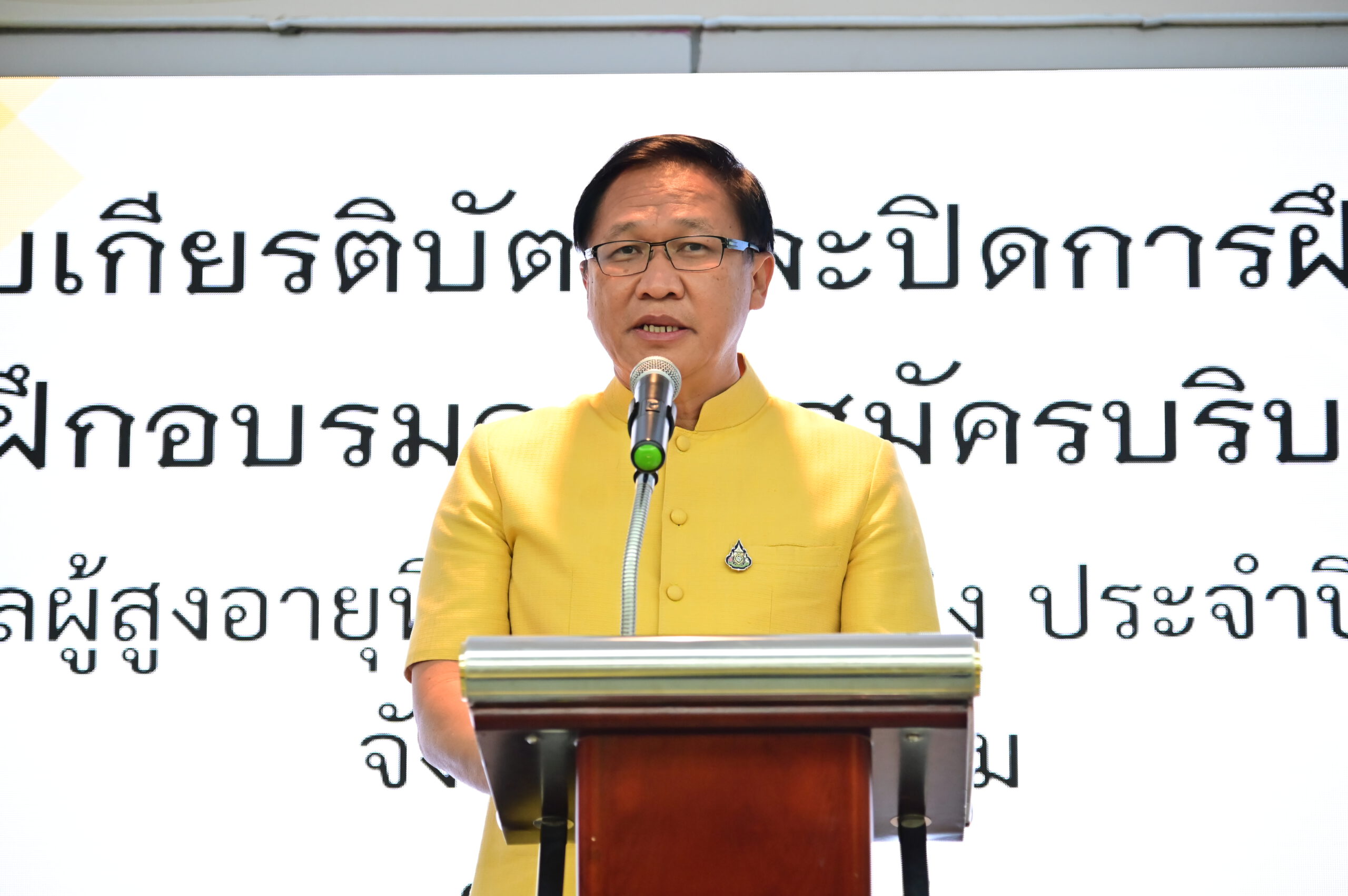 อธิบดีกรมส่งเสริมการปกครองท้องถิ่น ได้กล่าวแสดงความยินดีกับผู้ผ่านการฝึกอบรม ฯ ว่า โครงการอาสาสมัครบริบาลท้องถิ่น เป็นความห่วงใยของรัฐบาล พลเอก ประยุทธ์ จันทรโอชา นายกรัฐมนตรี และพลเอก อนุพงษ์ เผ่าจินดา รัฐมนตรีว่าการกระทรวงมหาดไทย ที่ประสงค์ให้องค์กรปกครองส่วนท้องถิ่นทั่วประเทศ เตรียมพร้อมรับมือกับสังคมสูงวัยอย่างเป็นรูปธรรม พร้อมไปกับเพิ่มรายได้ให้กับพี่น้องประชาชนที่ได้รับผลกระทบจากสถานการณ์ระบาดของโรคโควิด – 19