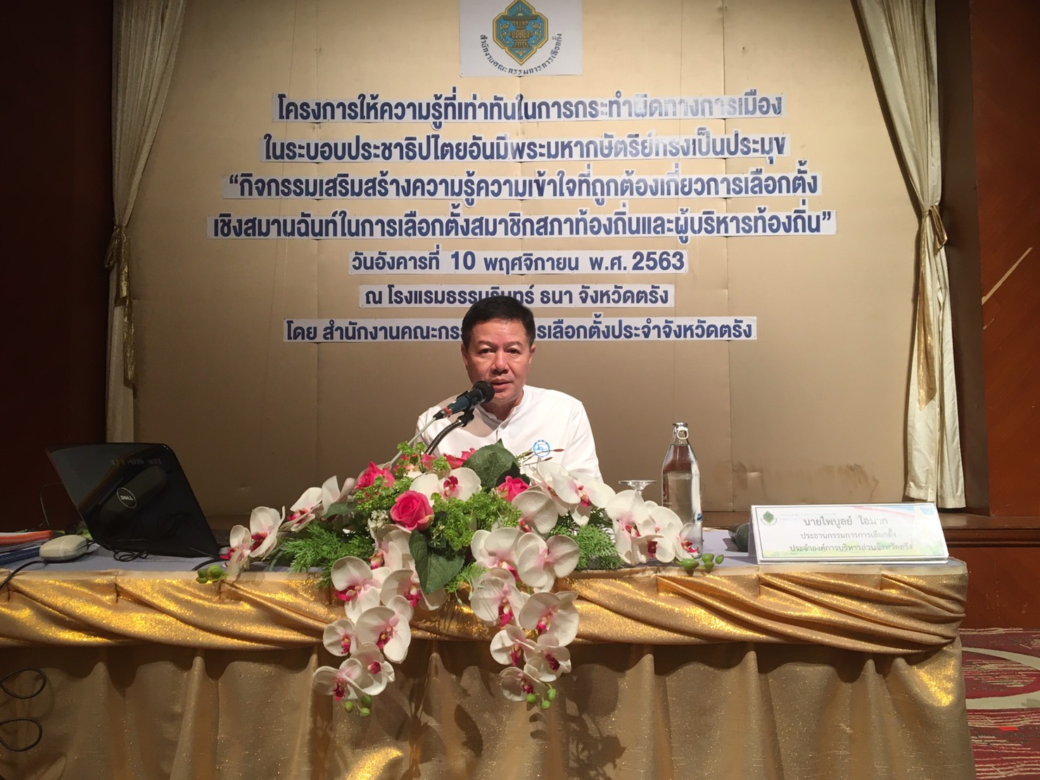 กกต.ตรัง จัดกิจกรรมเสริมสร้างความรู้ ความเข้าใจที่ถูกต้องเกี่ยวกับการเลือกตั้งเชิงสมานฉันท์ในการเลือกตั้งสมาชิกสภาท้องถิ่นและผู้บริหารท้องถิ่น