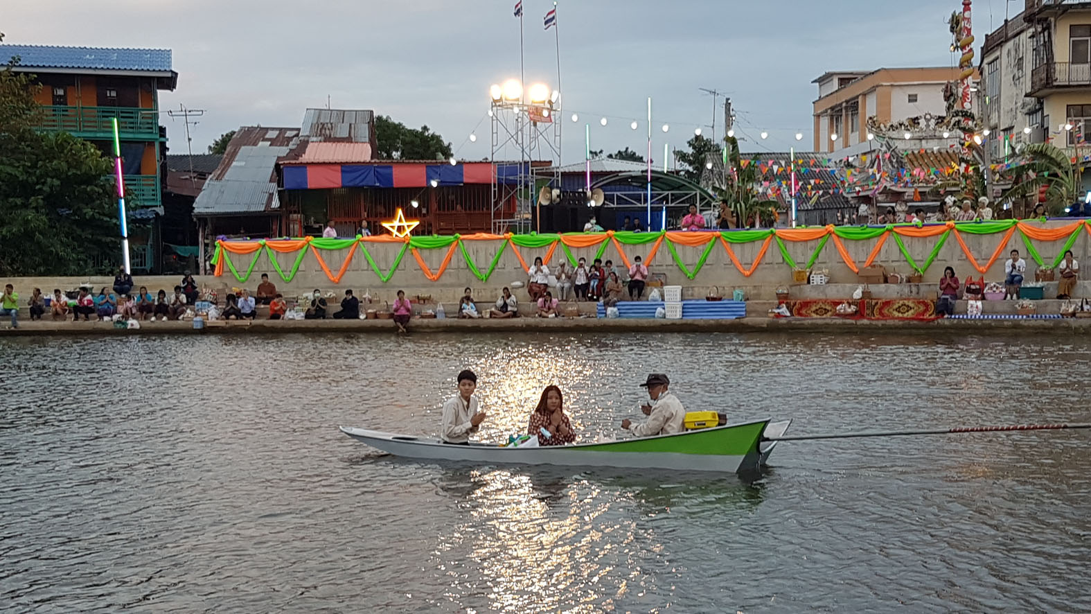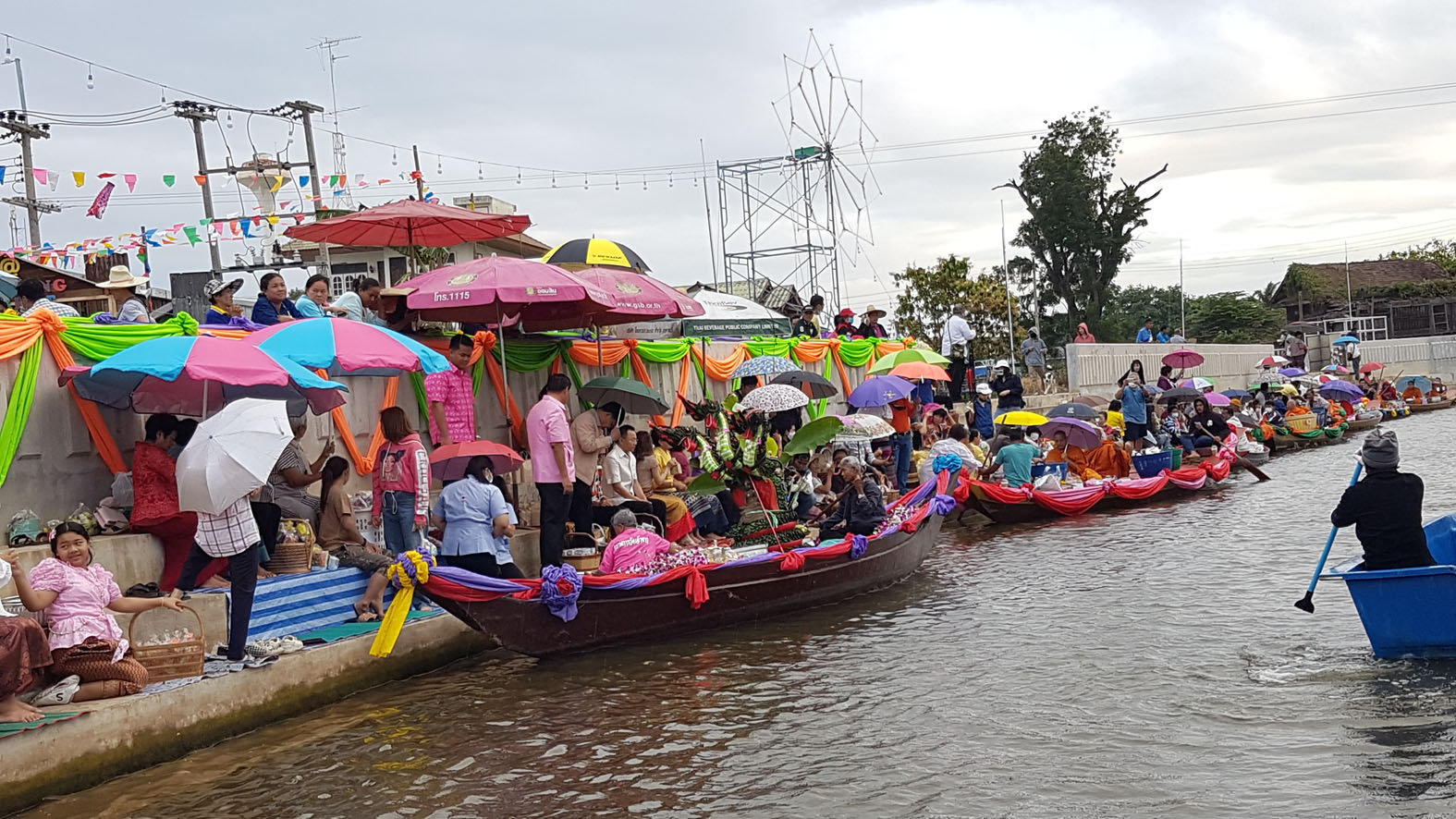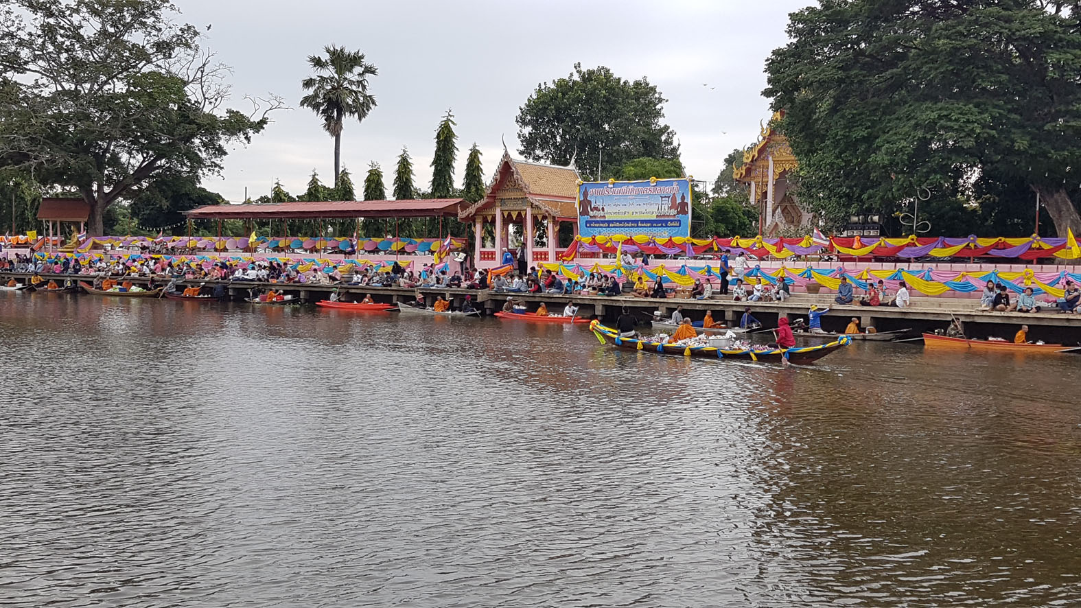 ซึ่งพระภิกษุสงฆ์สามเณร จากวัดที่อยู่ริมสองฝั่งแม่น้ำท่าจีน จำนวน 31 วัด กว่า 100 รูป พายเรือออกรับบิณฑบาต ชาวบ้านสองฝั่งแม่น้ำท่าจีนที่นำข้าวสารอาหารแห้งอาหารคาวหวานและน้ำดื่มมาใส่บาตรพระสงฆ์ ในงานได้มีการรณรงค์ให้ประชาชนและนักท่องเที่ยวแต่งกายชุดด้วยไทยย้อนยุค สวมใส่ผ้าไทยโบราณหรือชุดตามประเพณีนิยมสมัยโบราณ โดยมีผู้นำองค์กรปกครองส่วนท้องถิ่น กำนัน ผู้ใหญ่บ้าน ประชาชนและนักท่องเที่ยว ร่วมพิธีตักบาตรกลางน้ำกันอย่างคึกคัก
