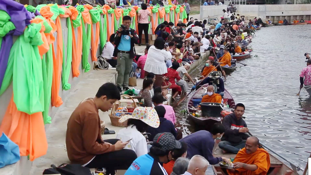 สุพรรณบุรี สืบสานประเพณีตักบาตรกลางน้ำจัดติดต่อกันมากว่า100ปี