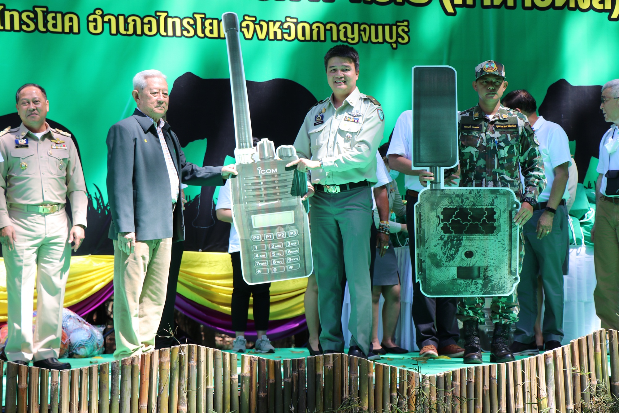 นอกจากนี้ยังได้มอบอุปกรณ์ ได้แก่ กล้อง NCAPS และวิทยุสื่อสาร ให้กับเจ้าหน้าที่เพื่อใช้ในการสื่อสารแจ้งเตือนแก่ประชาชนในระหว่างที่ช้างออกหากินนอกพื้นที่อีกด้วย ทั้งยังมอบทุนการศึกษา จำนวน 10 ทุน อุปกรณ์กีฬาจำนวนให้กับ 5 โรงเรียนในพื้นที่ เนื่องจากมีความห่วงใยต่อสถานการณ์ช้างป่าออกมาหากินนอกเขตพื้นที่อุทยานแห่งชาติไทรโยค และอุทยานแห่งชาติทองผาภูมิ จังหวัดกาญจนบุรี ซึ่งส่งผลกระทบกับประชาชนในพื้นที่เป็นอย่างมาก จากนั้น ประธานองคมนตรี หัวหน้าส่วนราชการ และเยาวชน ได้ร่วมกันปลูกต้นไผ่หนาม เพื่อทำเป็นแนวป้องกันช้างป่า อีกด้วย
