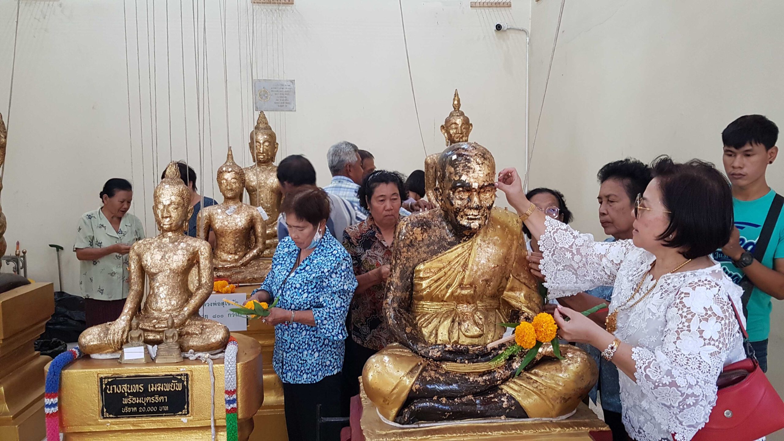ที่ จ.สุพรรณบุรี พระปลัดกิมฮั้ว นิกกิเลโส เจ้าอาวาสวัดคลองชะโด ต.วังหว้า อ.ศรีประจันต์ จ.สุพรรณบุรี ร่วมกับคณะกรรมการวัด ผู้นำชุมชนและชาวบ้าน ร่วมกันจัดงานประจำปีปิดทองหลวงพ่อสุโขทัย พระพุทธรูปศักดิ์สิทธิ์ ปางมารวิชัย นั่งสมาธิ หล่อด้วยทองสัมฤทธิ์ หน้าตักกว้าง 25 นิ้ว เป็นศิลปะสุโขทัย อายุ กว่า 800 ปี ที่ชาวบ้านคลองชะโดและต่างจังหวัดให้ความเคารพนับถือกันมาช้านาน