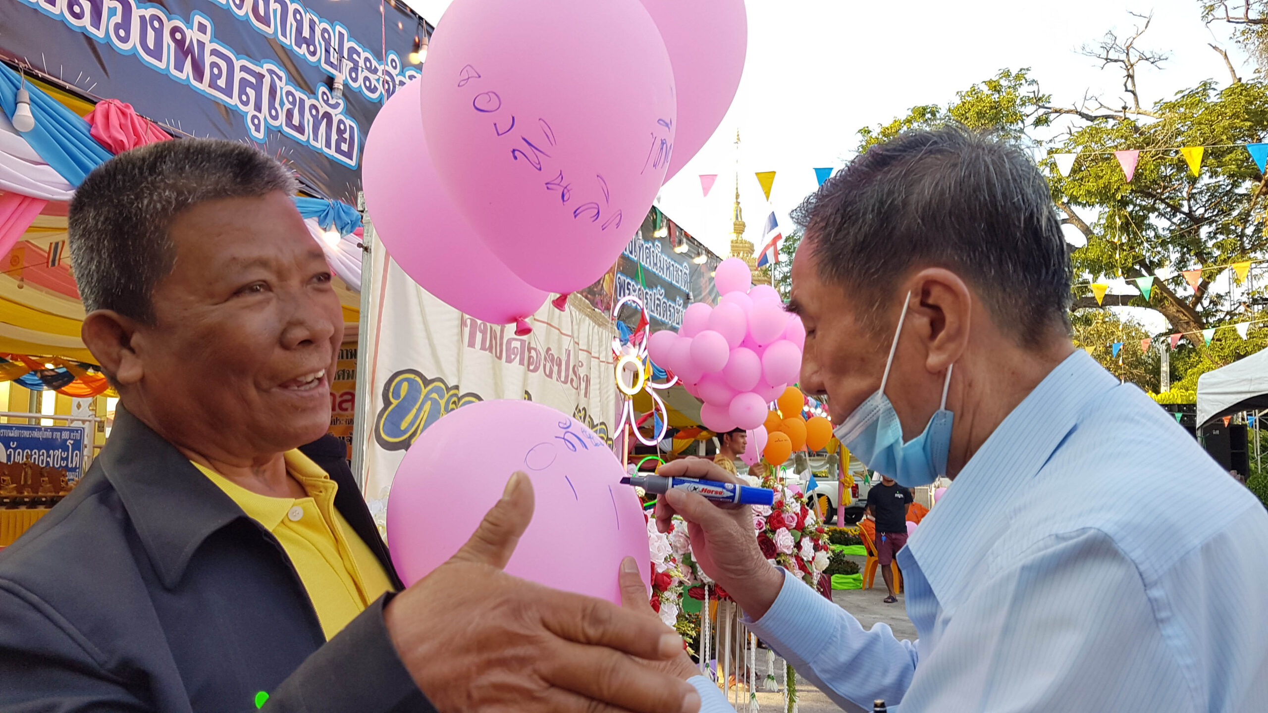 ขณะที่นักท่องเที่ยวและชาวบ้านได้หลั่งไหลกันมากราบไหว้ ขอพร ปิดทอง หลวงพ่อสุโขทัย พระพุทธรูปศักดิ์สิทธิ์ อายุเก่าแก่ กว่า 800 ปี กันอย่างเนืองแน่ เนื่องจากที่ผ่านมาผู้ที่มากราบไหว้ขอพรทั้งเรื่องหน้าที่การงาน การค้าขาย และโชคลาภ แล้วประสบความสำเร็จ ซึ่งก่อนพิธีเปิดประชานและนักท่องเที่ยวต่างเขียนชื่อนามสกุล และข้อความอธิษฐาน ไว้ที่ลูกโป่งสวรรค์ พร้อมกับอธิฐานขอให้การงานก้าวหน้า การค้าเจริญรุ่งเรือง สุขภาพแข็งแรง และขอโชคลาภ ขอให้มีแต่สิ่งดีๆเข้ามาในชีวิตของตนเองและครอบครัว และขอปล่อยทุกข์ปล่อยโศก ปล่อยโรค ปล่อยภัย สิ่งไม่ดี สิ่งอัปมงคล รวมทั้งไวรัสโควิด19 ให้ลอยละลายหายไปกับลูกโป่งสวรรค์