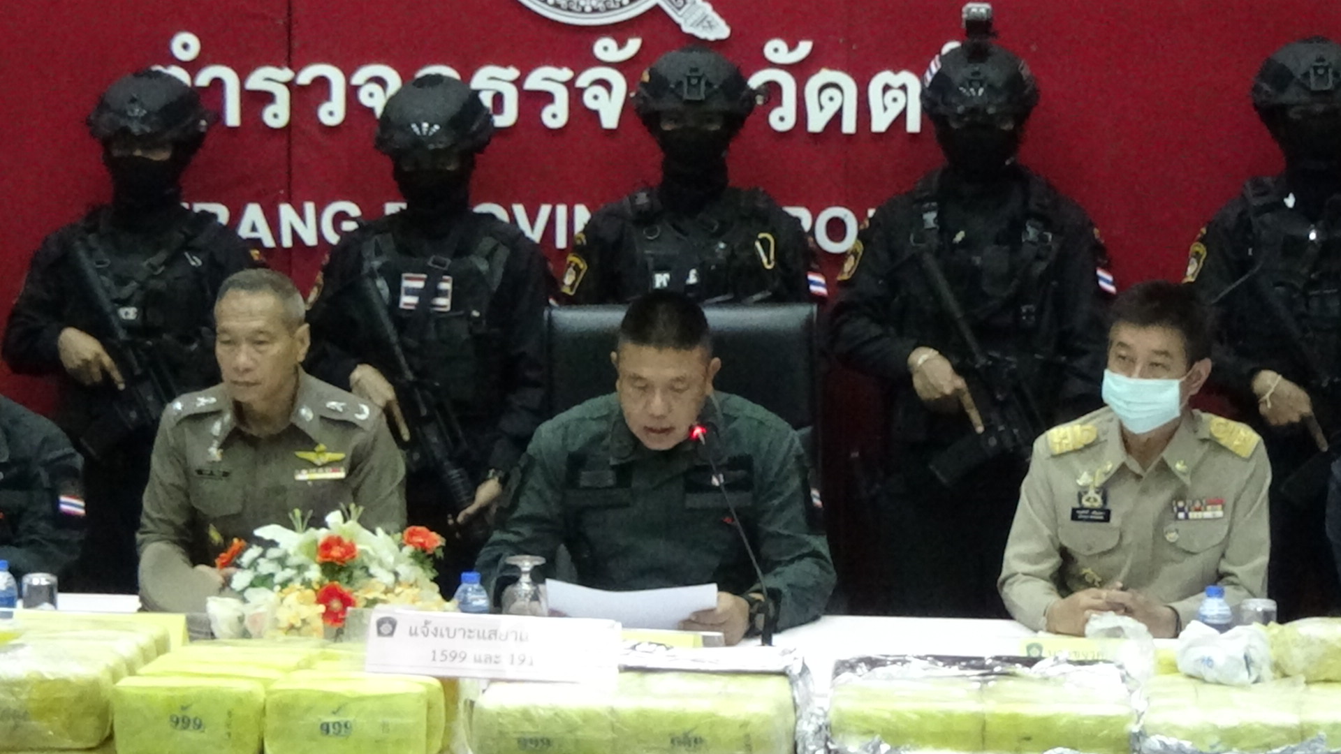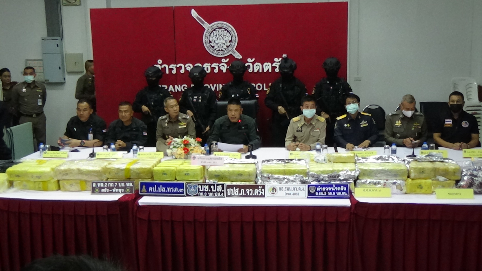 ที่กองบังคับการตำรวจภูธรจังหวัดตรัง พลตำรวจโทรณศิลป์ ภู่สาระ ผู้บัญชาการตำรวจภาค 9 พล.ต.ต.ดำรัส วิริยะกุล รองผู้บัญชาการตำรวจภาค 9 ,พล.ต.ตดุษฎี ชูสังกิจ รองผู้บัญชาการตำรวจภาค 9 ,พล.ต.ต.กฤษฎา แก้วจันดี รองผู้บัญชาการตำรวจภาค 9 ,พล.ต.ต.ปิยะวัฒน์ เฉลิมศรี รองผู้บัญชาการตำรวจภาค 9 นายขจรศักดิ์ เจริญโสภา ผู้ว่าราชการจังหวัดตรัง ,พล.ต.ต.สันทัด วินสน ผู้บังคับการตำรวจภูธรจังหวัดตรัง ,นายพงศธร ธรรมขาติ ผู้อำนวยการป้องกันและปราบปรามยาเสพติดภาค 9 พร้อมด้วย รองผู้บังคับการตำรวจภูธรจังหวัดตรัง ฝ่ายปกครอง ผู้แทนหน่วยงาน กอ.รมน.จ.ตรัง และผู้แทนฝ่ายทหาร ได้ร่วมกันแถลงข่าวในการ ตรวจยึดยาเสพติด ดังนี้เมื่อวันที่ 12 พฤศจิกายน 2563 เจ้าหน้าที่ตำรวจทางหลวงกองกกับการ 2 กองบังคับการ 7 และเจ้าหน้าที่ตำรวจชุดปราบปราบยาเสพติด และชุดขยายผลยาเสพติดตำรวจภูธรจังหวัดตรัง เวลาประมาณ 13.00 น. ได้ร่วมกันตรวจยึดยาบ้า จำนวน 1,000,000 เม็ด