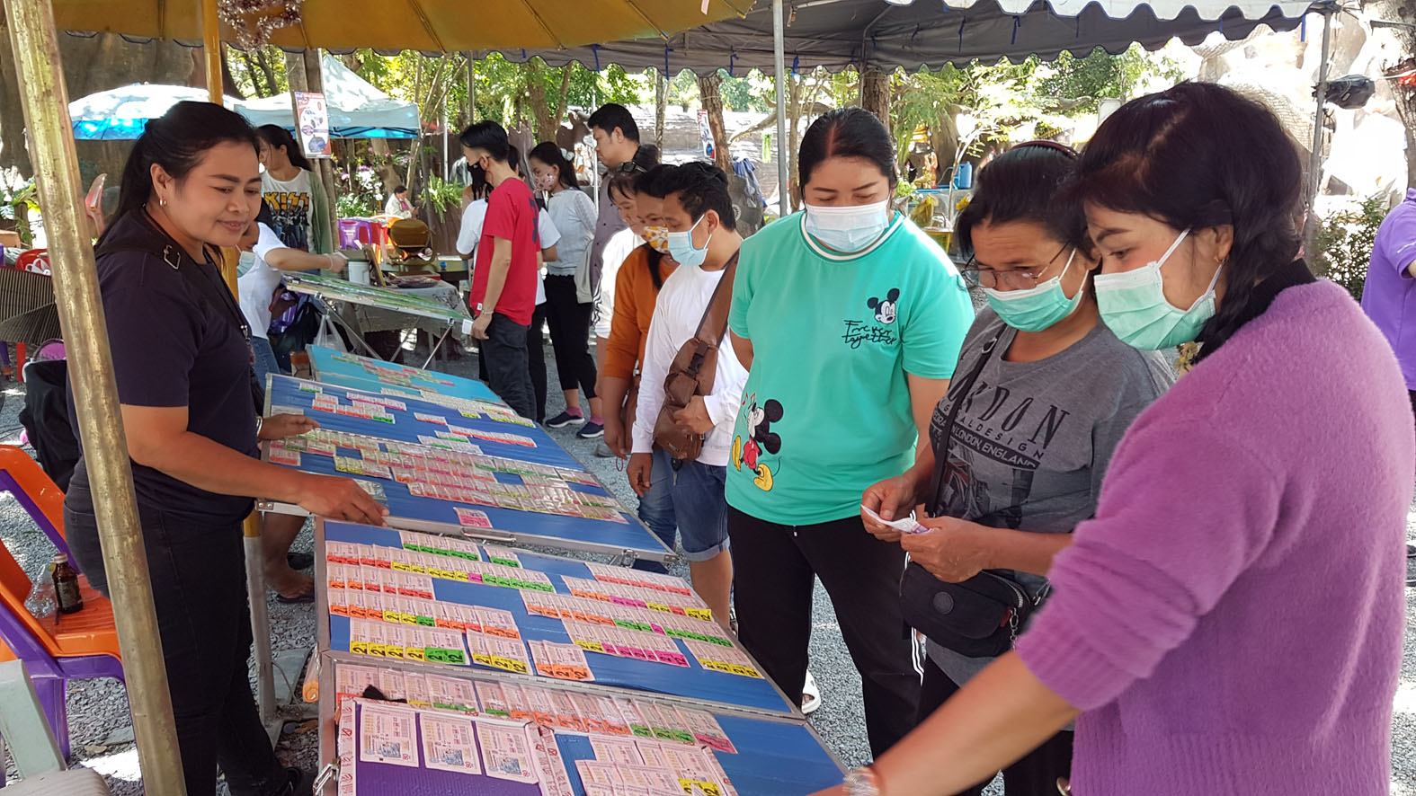 ที่วัดอุทุมพราราม (หรือวัดไผ่แขก) ต.ดอนโพธิ์ทอง อ.เมือง จ.สุพรรณบุรี ช่วงก่อนวันหวยออก นักเสี่ยงโชคจากทั่วสารทิศต่างหลังไหลแห่กันมาขอพร ขอโชค ลาภไอ้ไข่ และขอพร ขอโชคลาภ จากพ่อขุนช้างมหาเศรษฐีเมืองสุพรรณ กันอย่างคึกคักตลอดทั้งวัน เพื่อต้องการหาเลขเด็ดนำไปเสี่ยงโชคงวดนี้ ทั้งเขย่าเซียมซีปกติ เขย่าเซียมซียักษ์ จุดธูปเสี่ยงหาเลขเด็ดที่ธูป จุดประทัดแก้บน หาเลขเด็ดที่หางประทัด และส่องเลขจากอ่างน้ำมนต์ พ่อขุนช้าง เพื่อนำเอาเลขไปเสี่ยงโชค